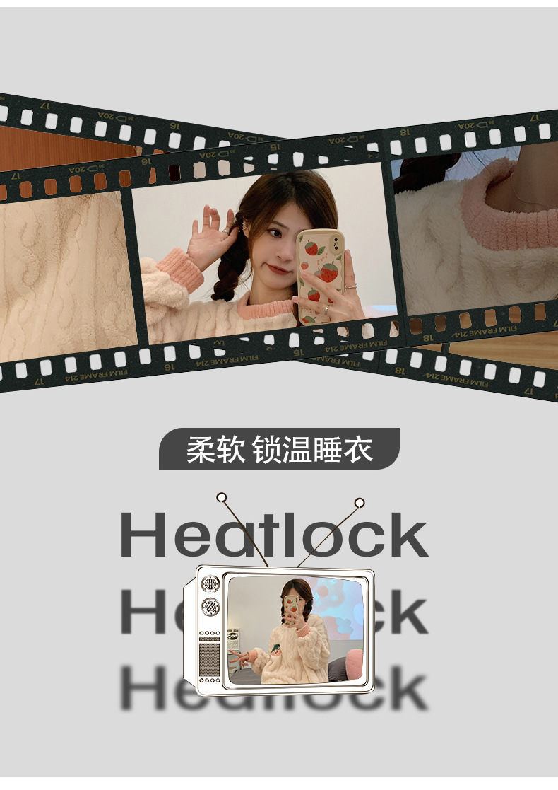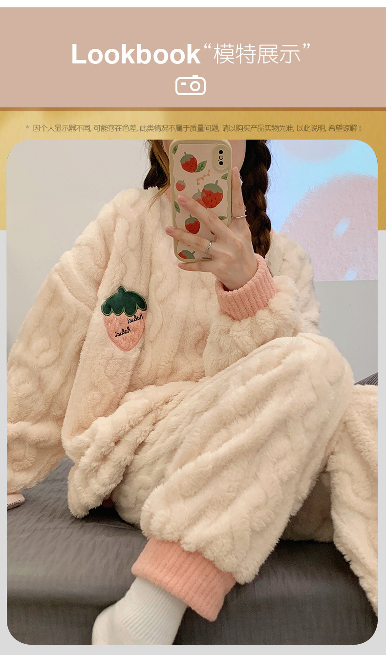 산호 양털 잠옷 여성 가을과 겨울 딸기 그물 레드 스타일 여성 기모 세트 플러스 사이즈 플란넬 홈 옷