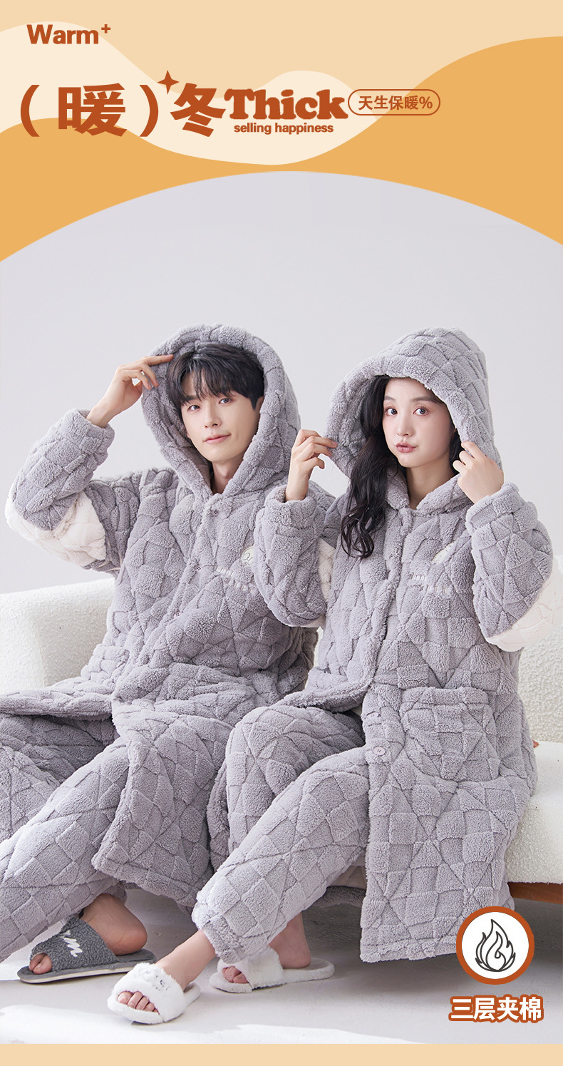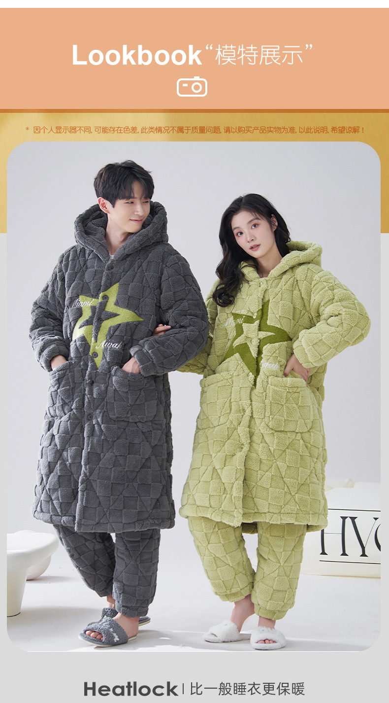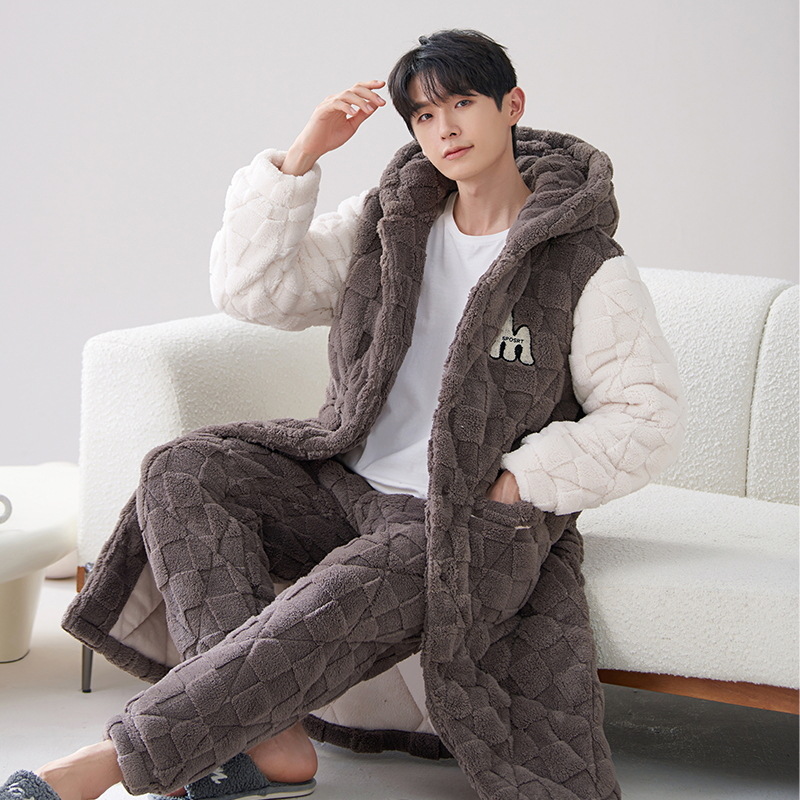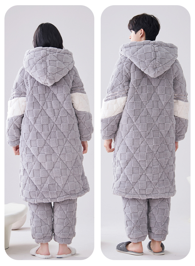 카디건 후드 3 층 두꺼운 퀼트 커플의 나이트웨어 가운 세트 기모 따뜻한 아우터 홈 의류 남성 세트 겨울