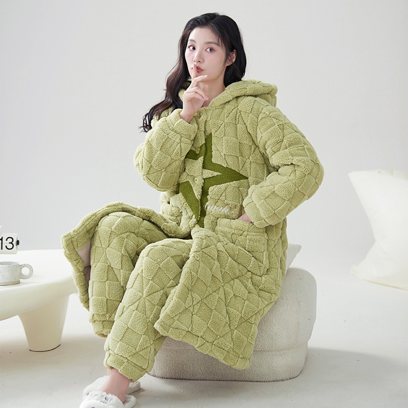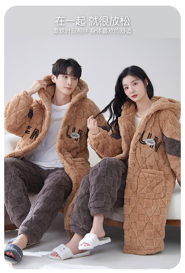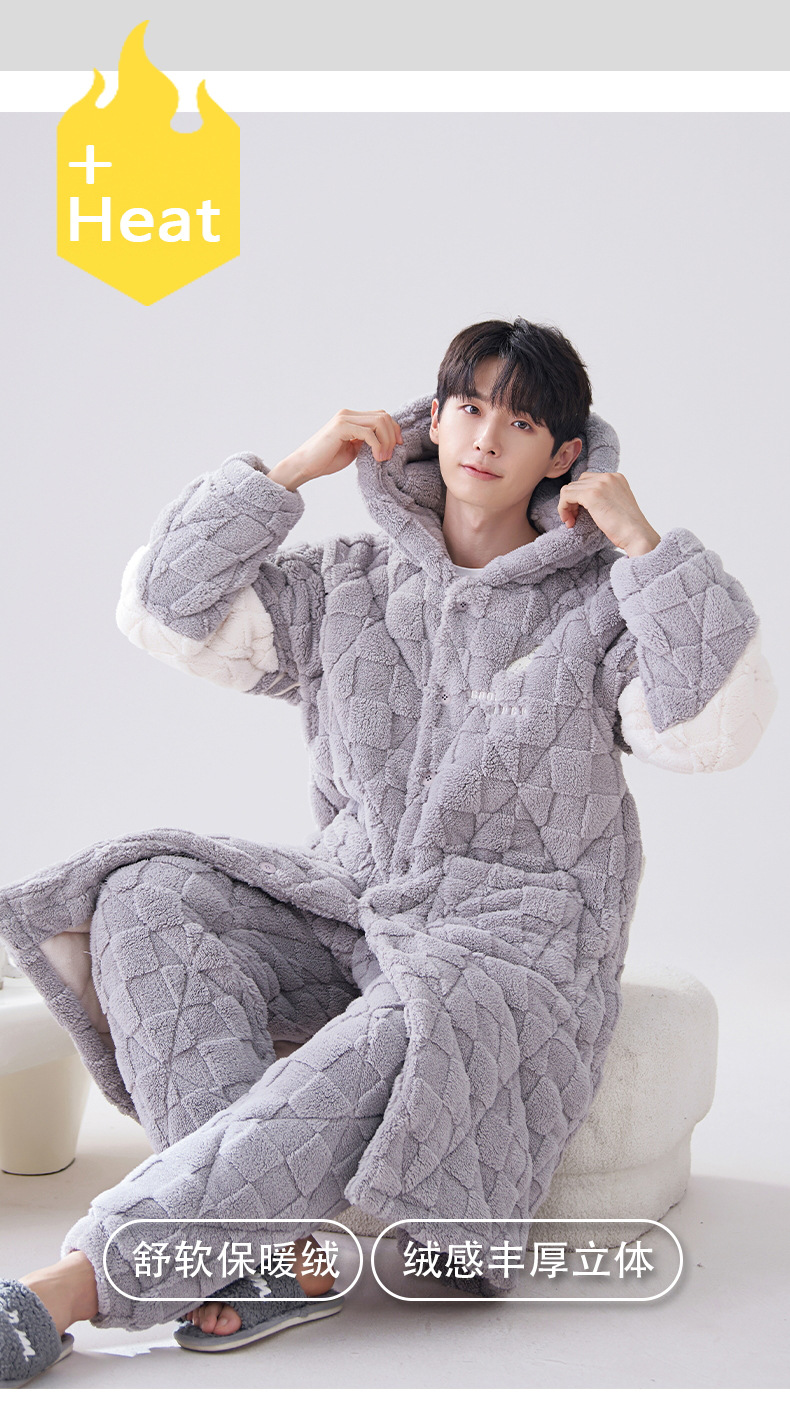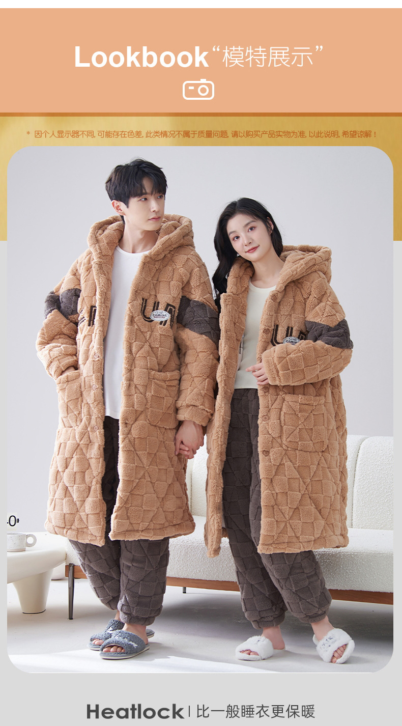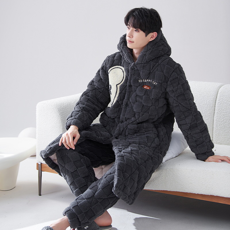 카디건 후드 3 층 두꺼운 퀼트 커플의 나이트웨어 가운 세트 기모 따뜻한 아우터 홈 의류 남성 세트 겨울