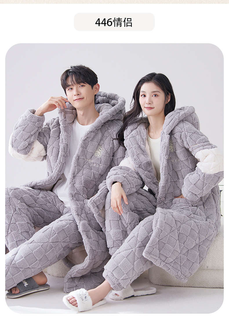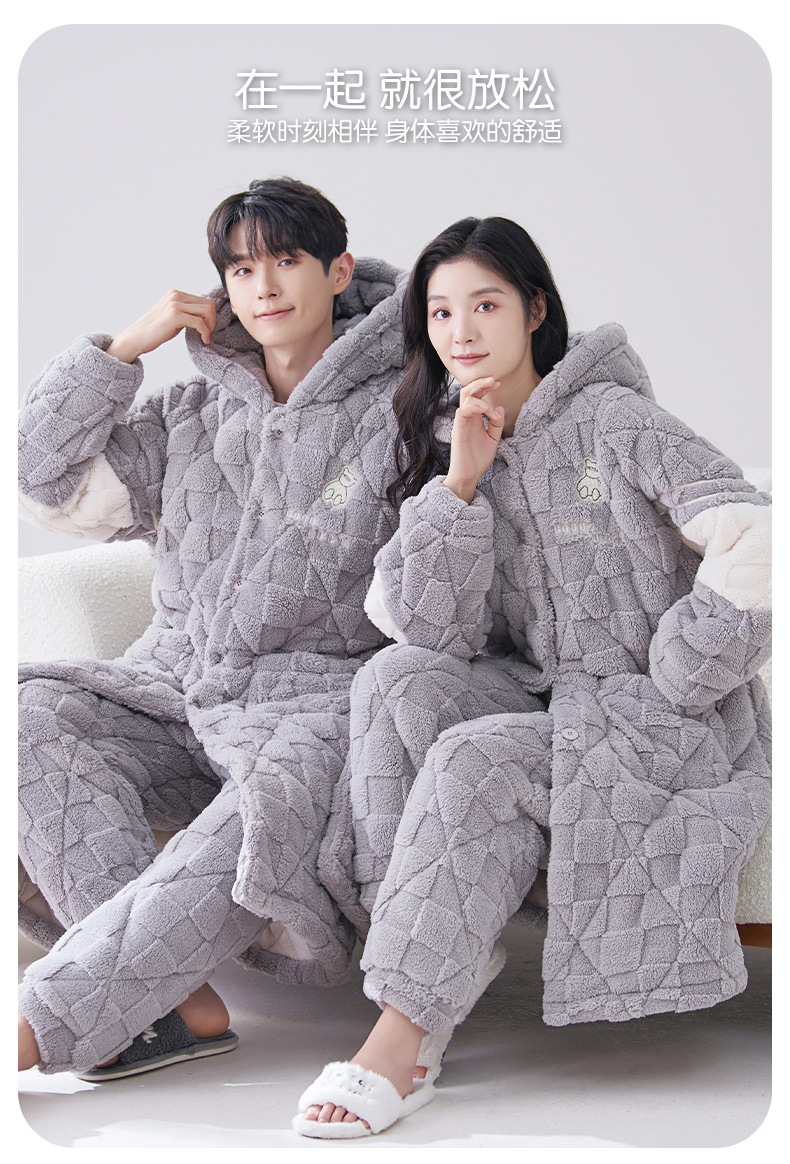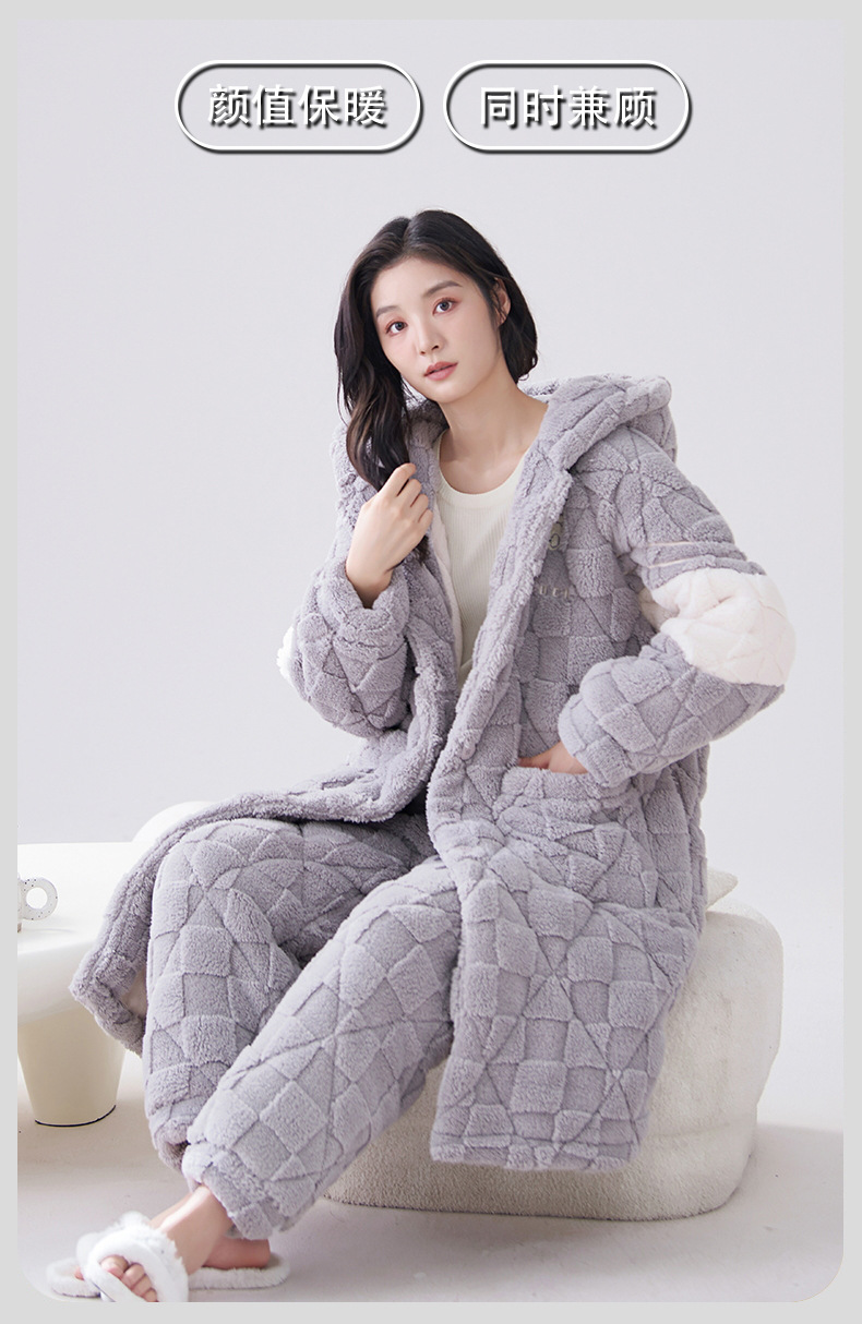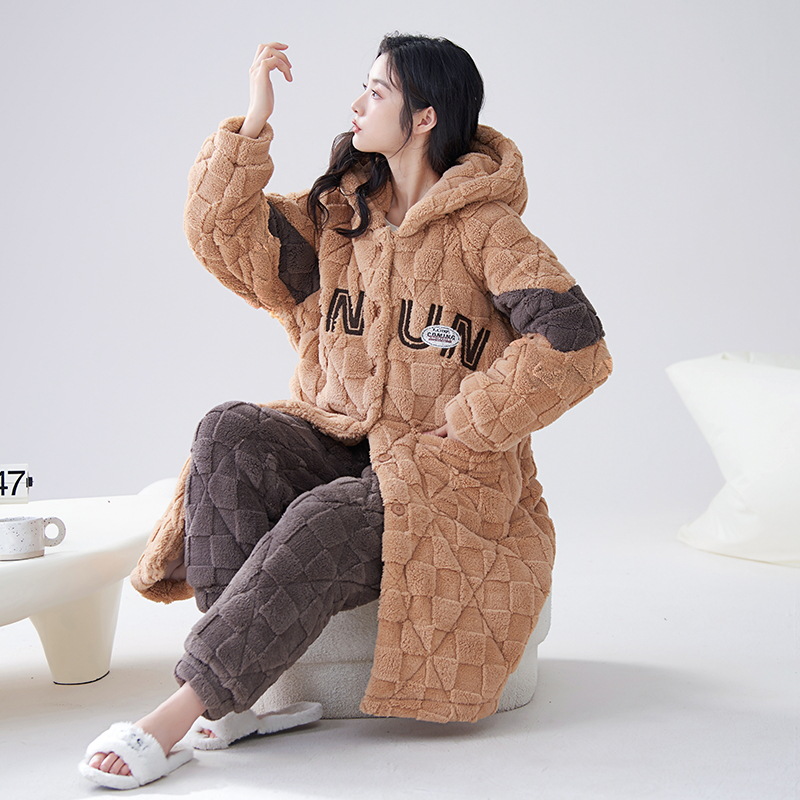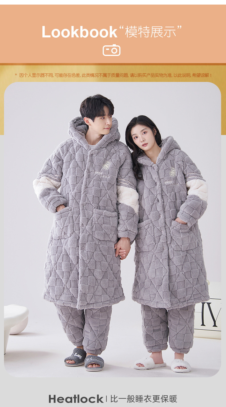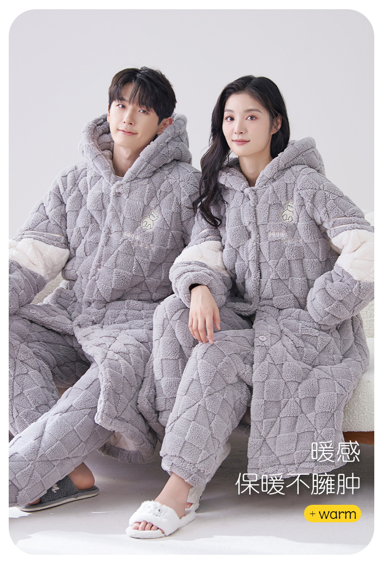 카디건 후드 3 층 두꺼운 퀼트 커플의 나이트웨어 가운 세트 기모 따뜻한 아우터 홈 의류 남성 세트 겨울스토어 가기