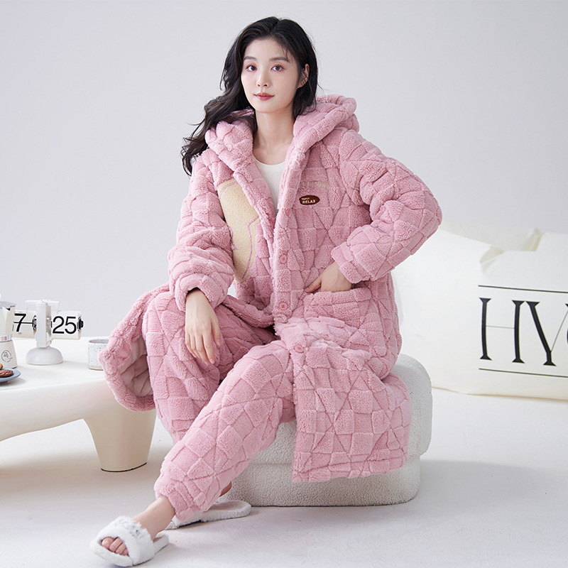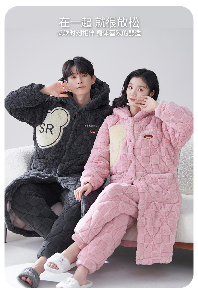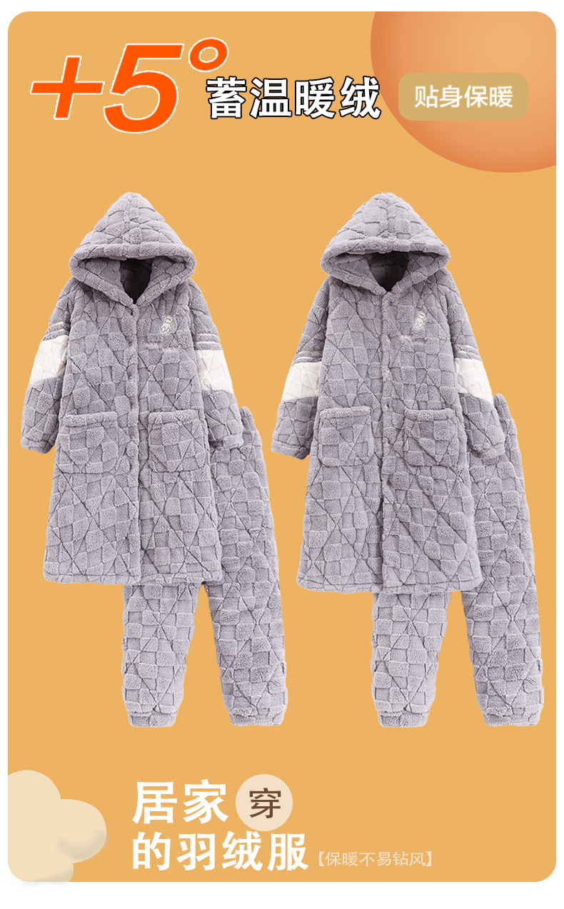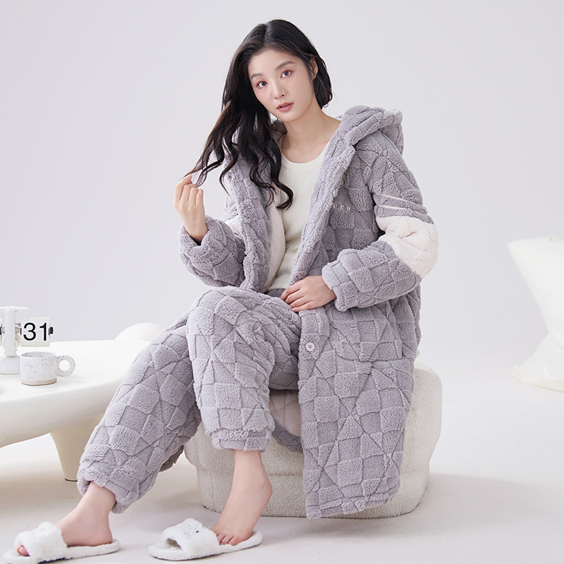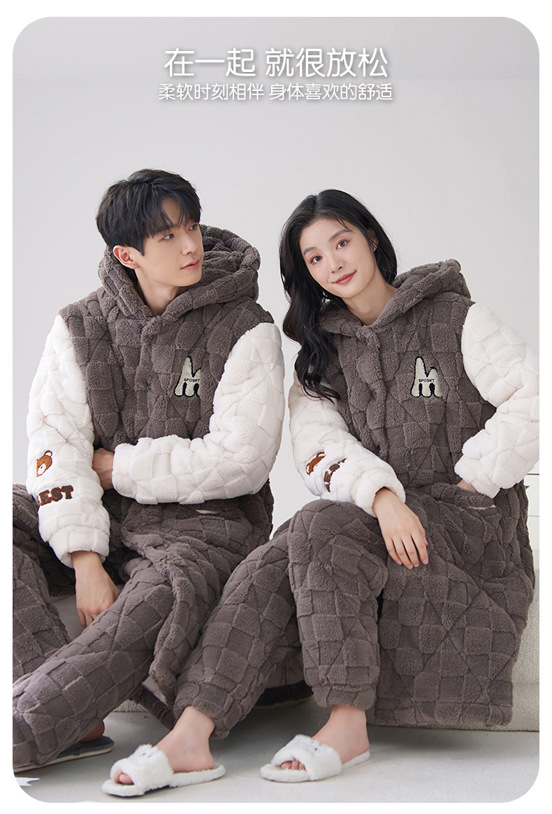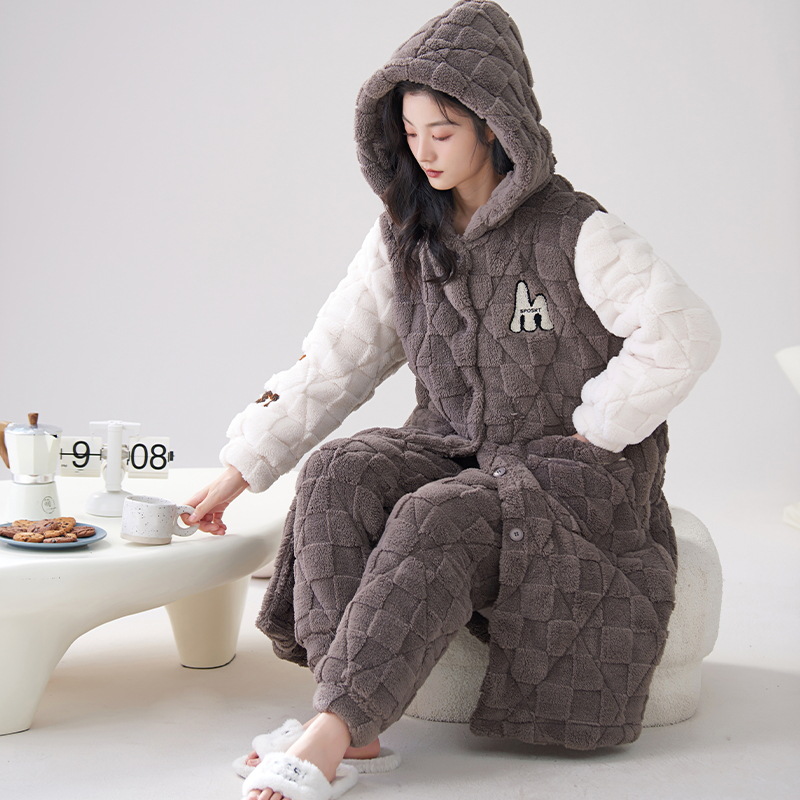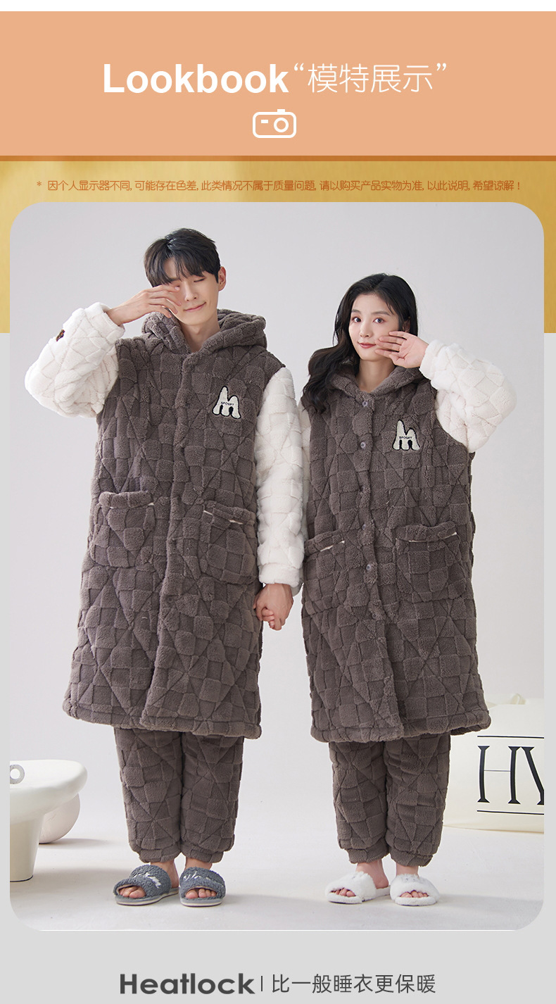 카디건 후드 3 층 두꺼운 퀼트 커플의 나이트웨어 가운 세트 기모 따뜻한 아우터 홈 의류 남성 세트 겨울스토어 가기