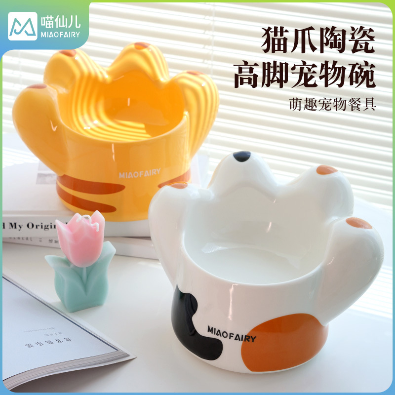 묘선녀 고양이 밥그릇 마카롱 세라믹 고양이 식기 물그릇 고양이 사료 그릇 애완견 밥그릇 넘어짐 방지 해외 무역 도매