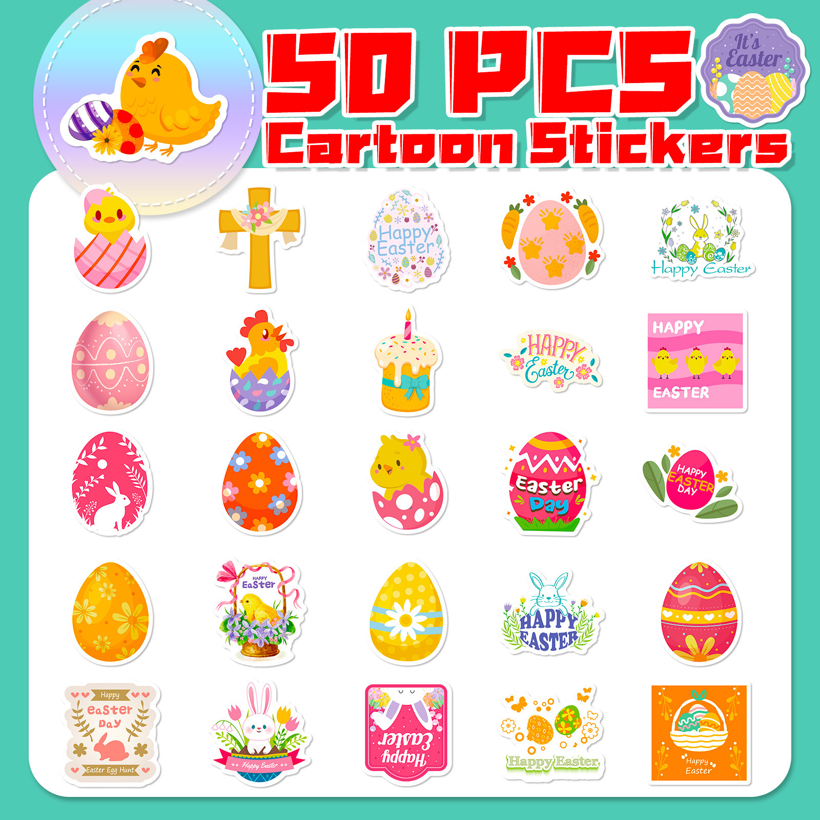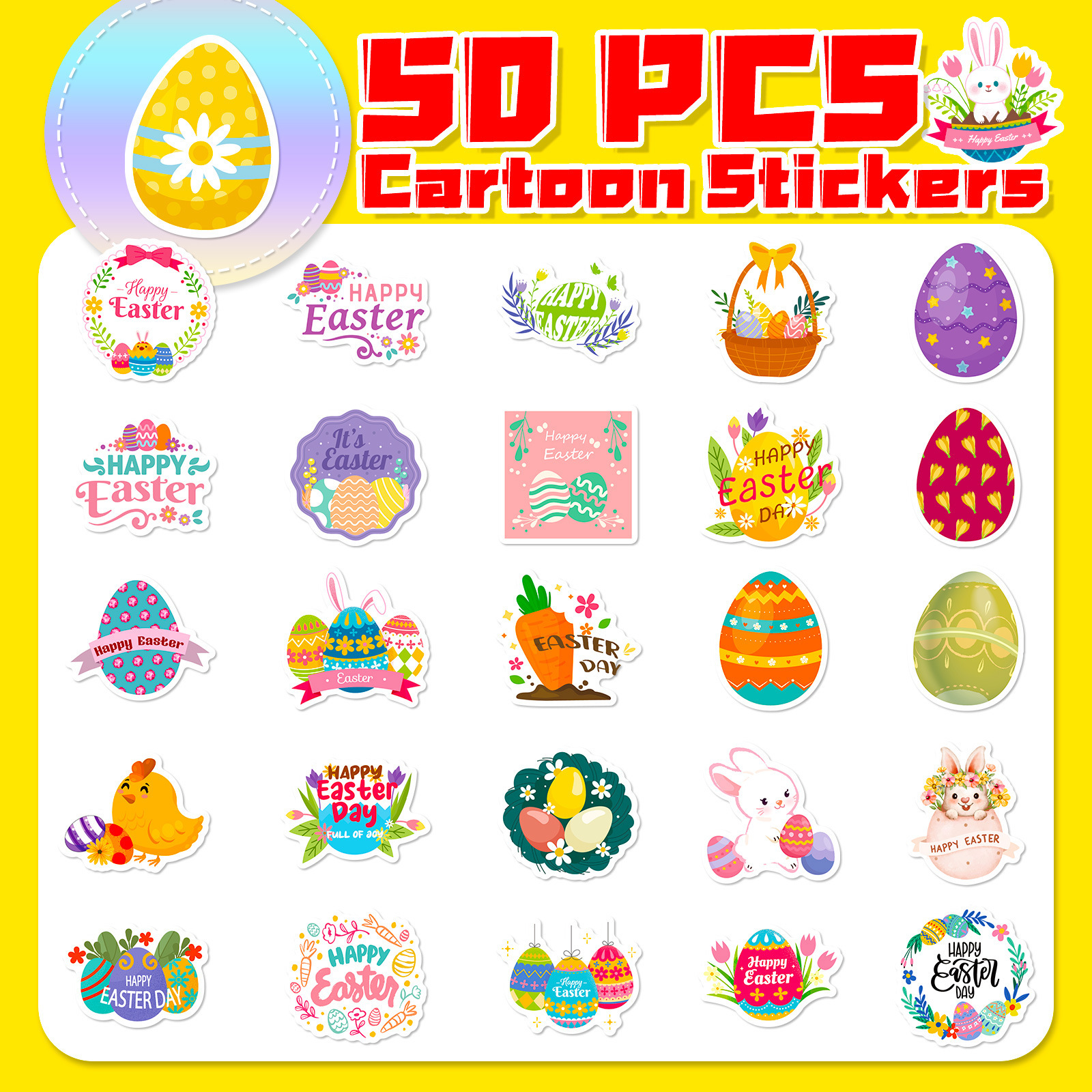 50 스티커 부활절 자동차 휴대 전화 노트북 장식 만화 토끼 계란 스티커 낙서 방수 스티커스토어 가기