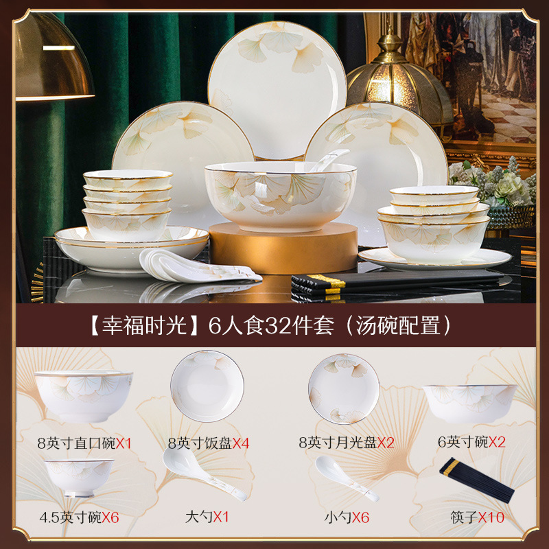 • 해피타임 6인 32개, 대형 국그릇 포함 [식기세척기, 전자레인지 사용 가능]