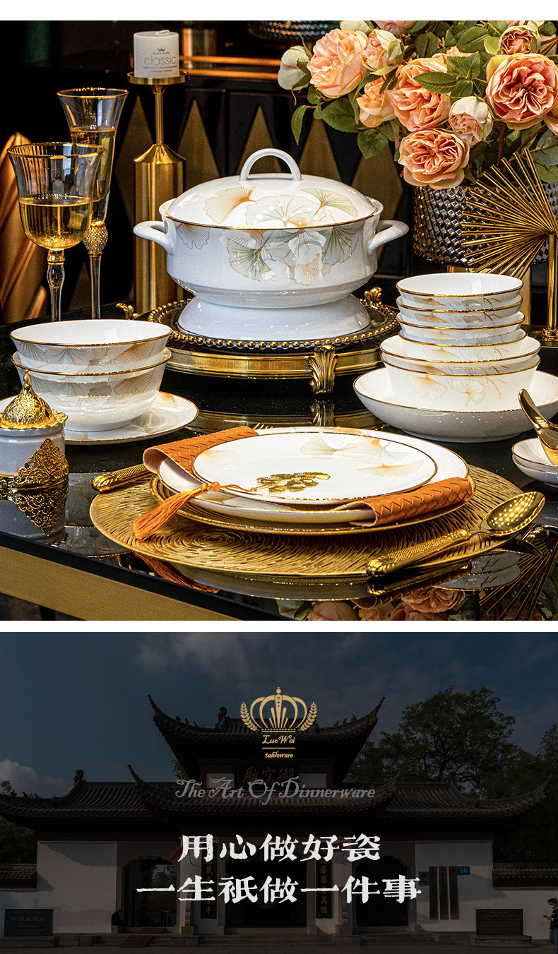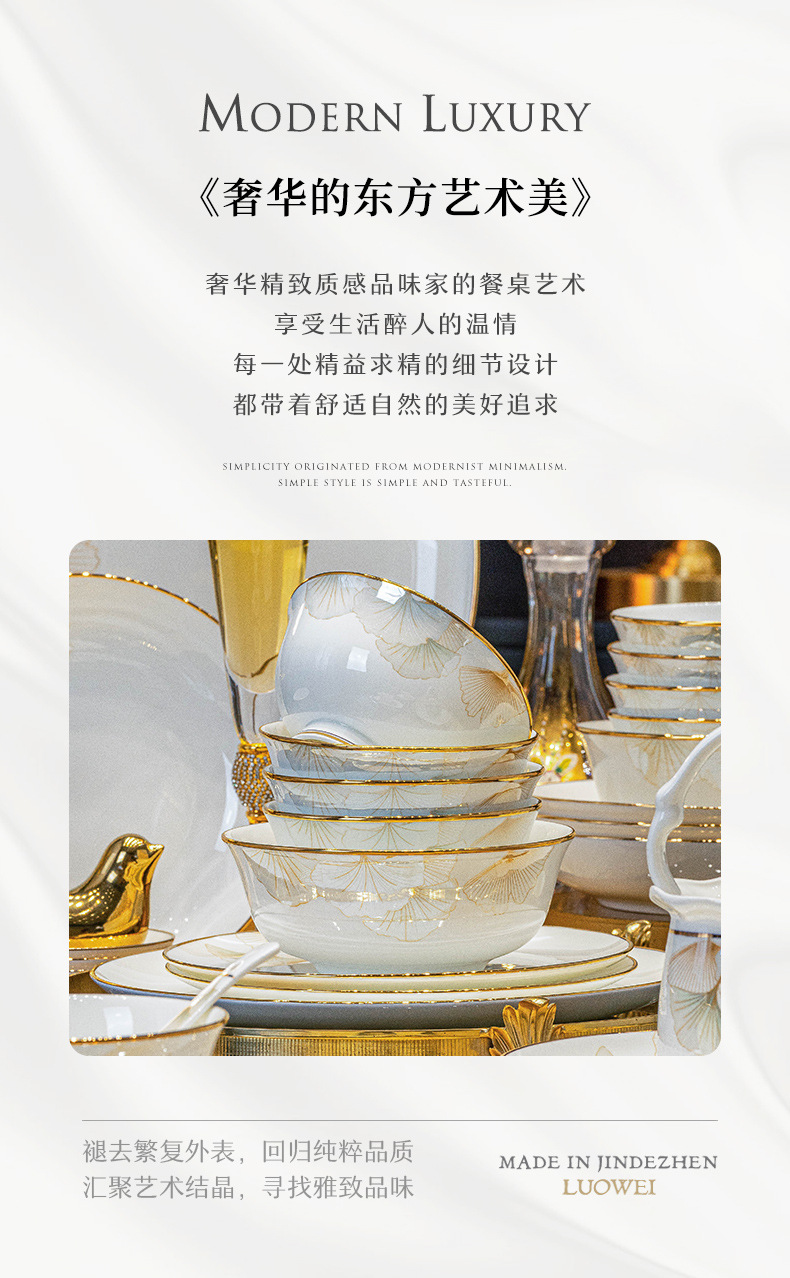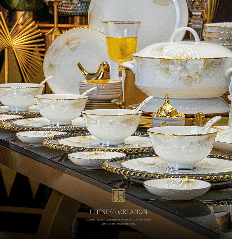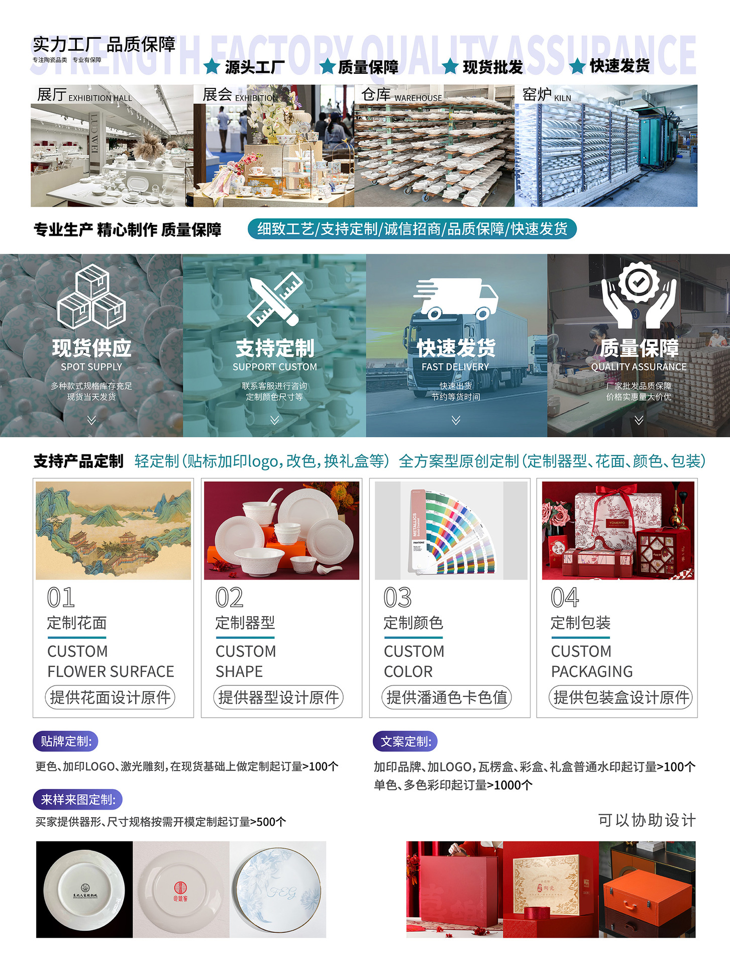Jingdezhen 세라믹 맞춤형 선물 상자 식기 세트 새로운 중국 가정 요리 및 요리 및 젓가락 세트 쌀 그릇 Nink 그릇스토어 가기