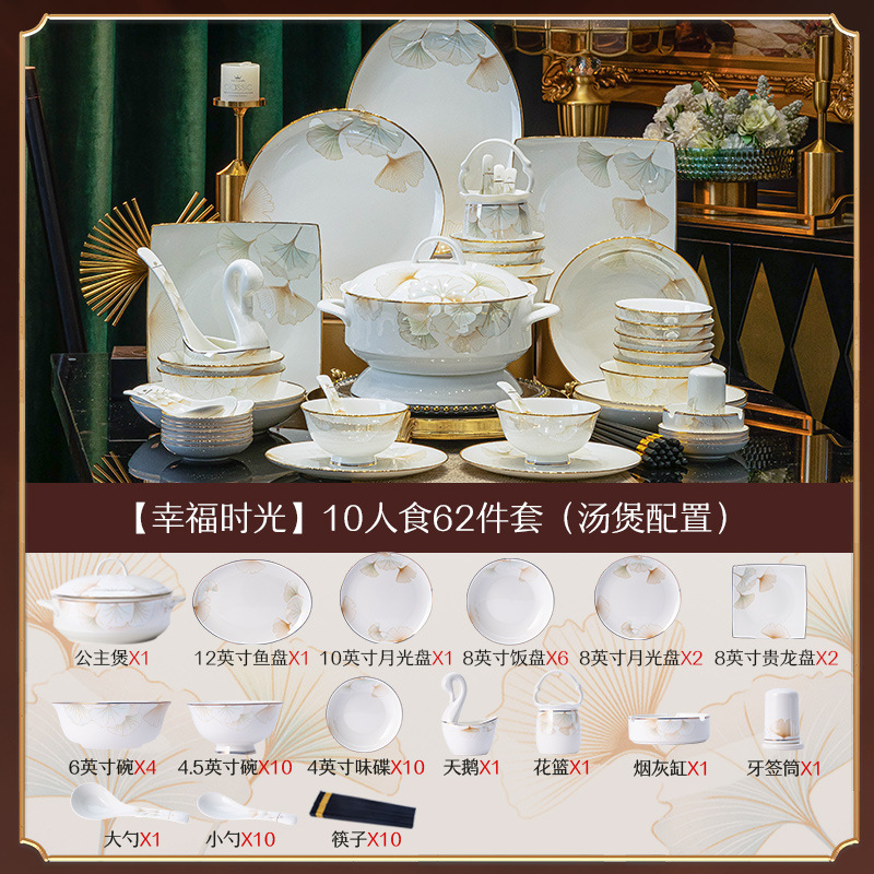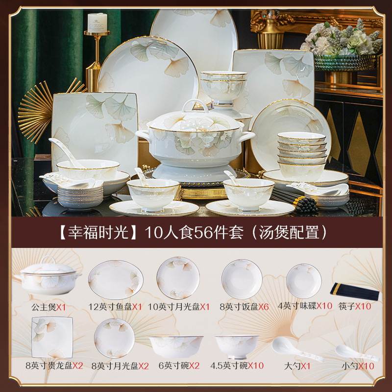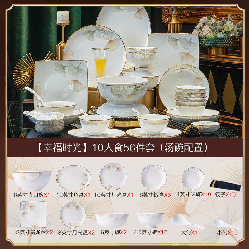 • 행복한 시간 10인 식사 56피스 수프 그릇 구성 식기세척기 및 전자레인지 사용 가능
