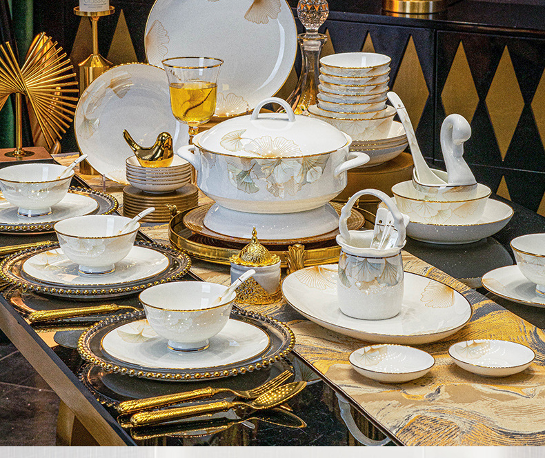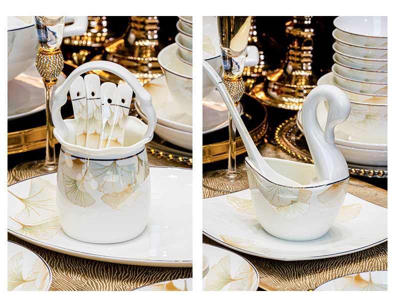 Jingdezhen 세라믹 맞춤형 선물 상자 식기 세트 새로운 중국 가정 요리 및 요리 및 젓가락 세트 쌀 그릇 Nink 그릇