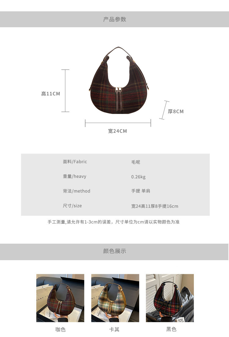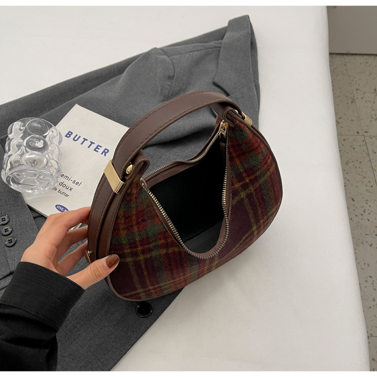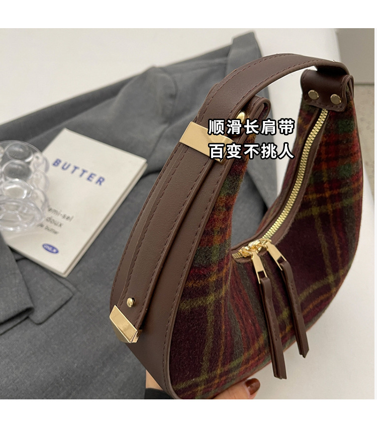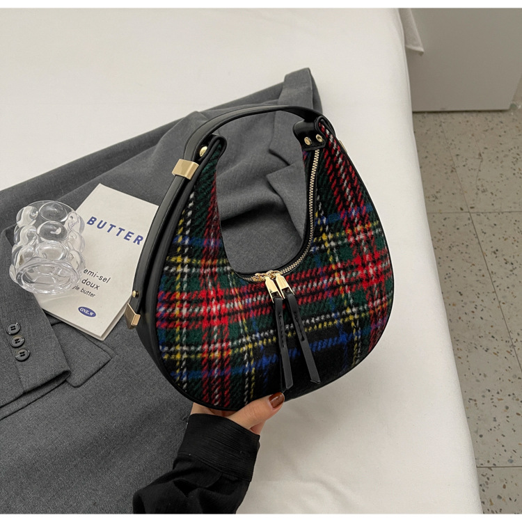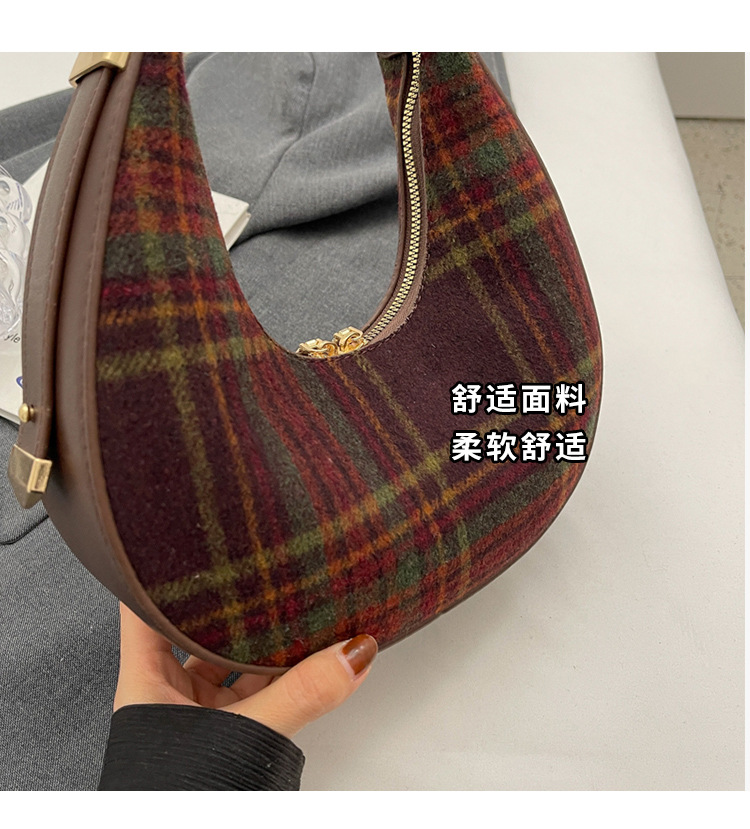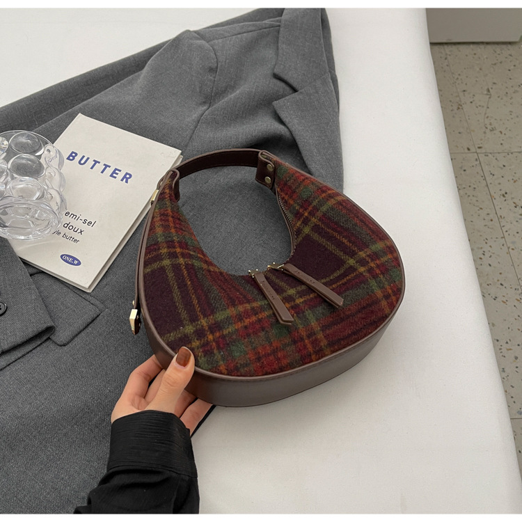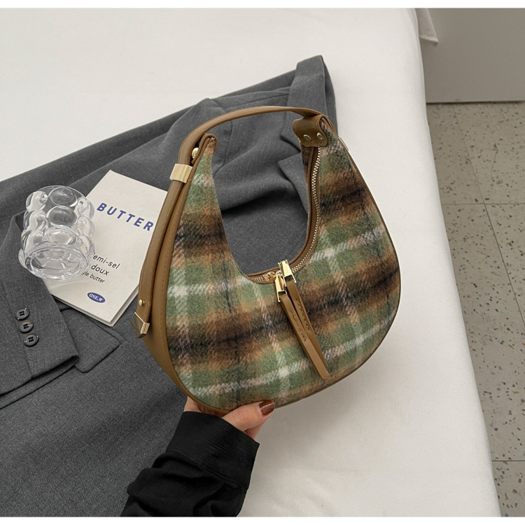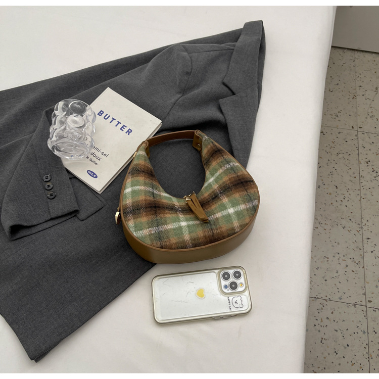 틈새 디자인 가방 여성 가방 가을과 겨울 2024 새로운 패션 격자 무늬 휴대용 어깨 가방 하이 엔드 모직 초승달 가방스토어 가기