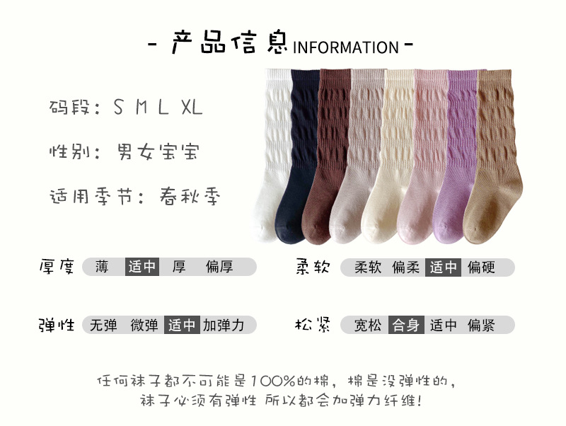 뼈없는 어린이 양말 봄과 가을 안티 필링 코튼 양말 더미 한국 외국 스타일 아기 단색 튜브 양말 제조 업체 도매스토어 가기