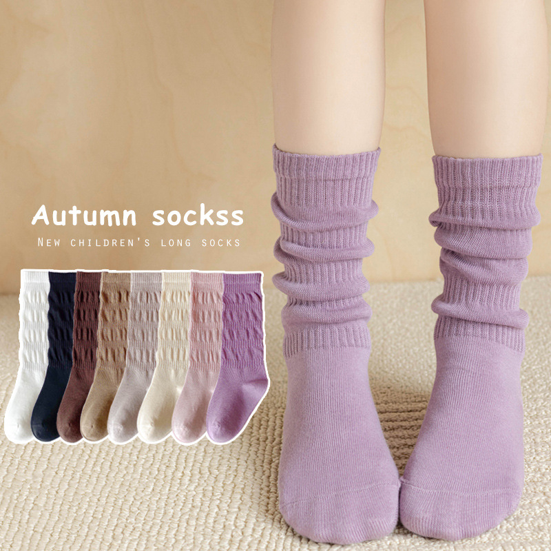 뼈없는 어린이 양말 봄과 가을 안티 필링 코튼 양말 더미 한국 외국 스타일 아기 단색 튜브 양말 제조 업체 도매