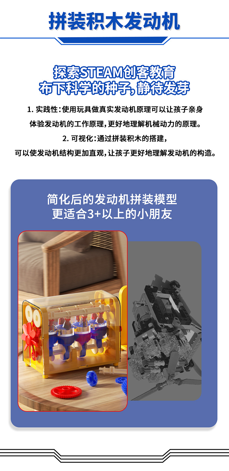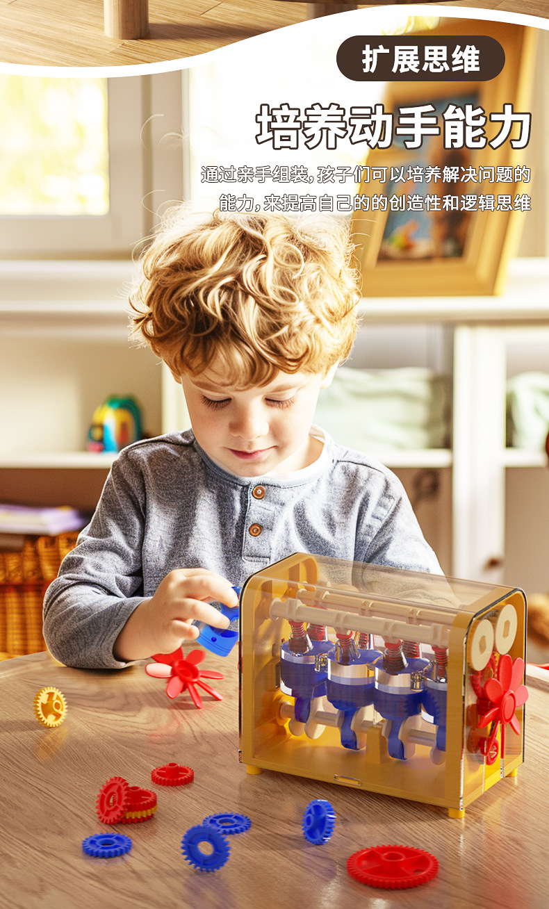 국경 간 엔진 모델 장난감 조립 과학 실험 어린이 기계 계몽 기술 수동 발명 STEM