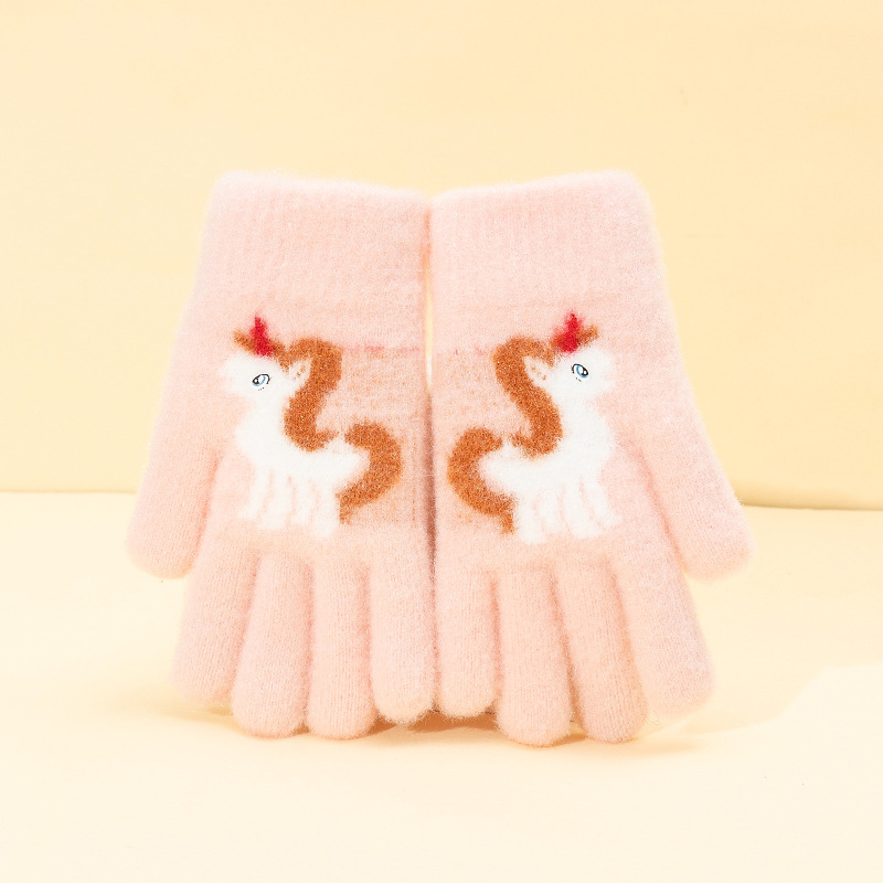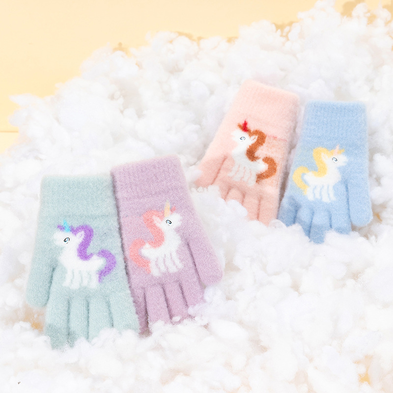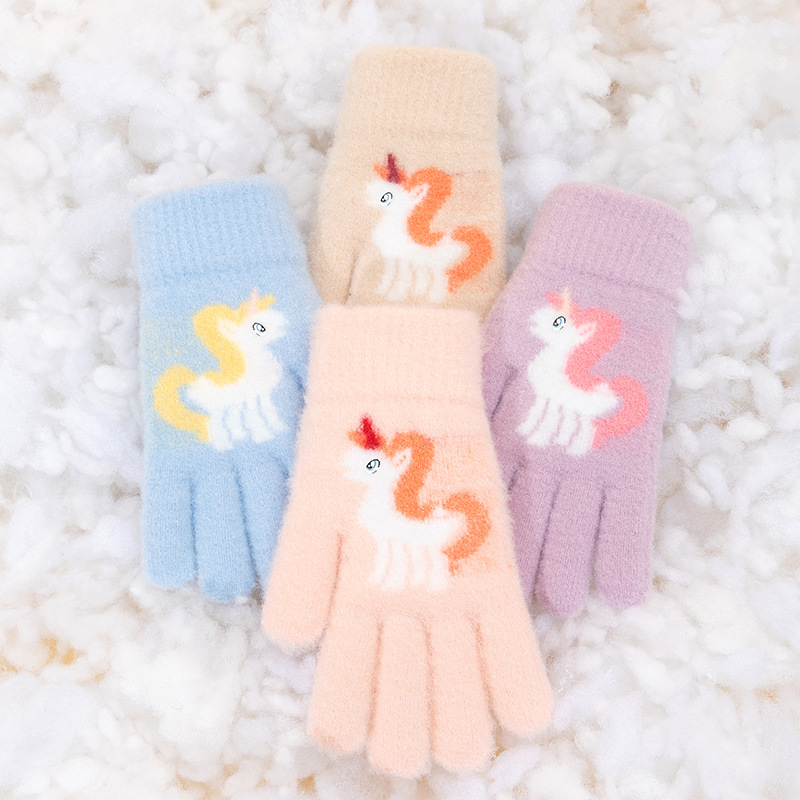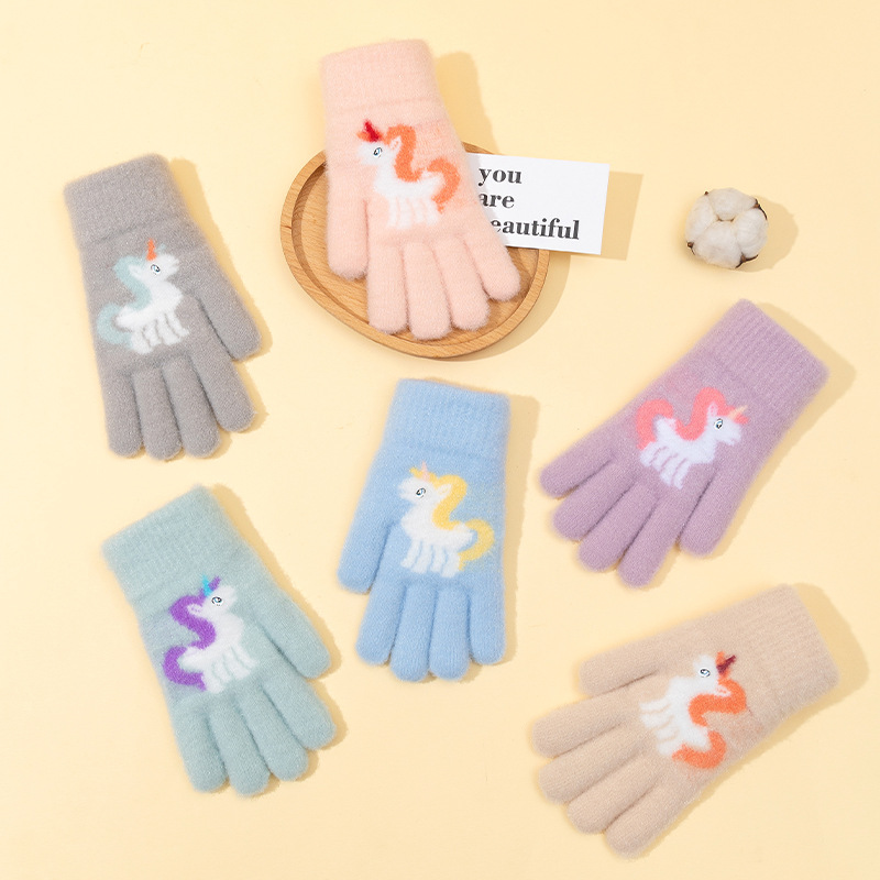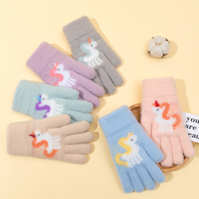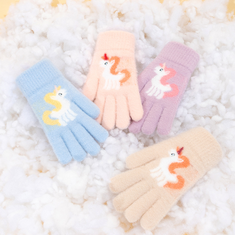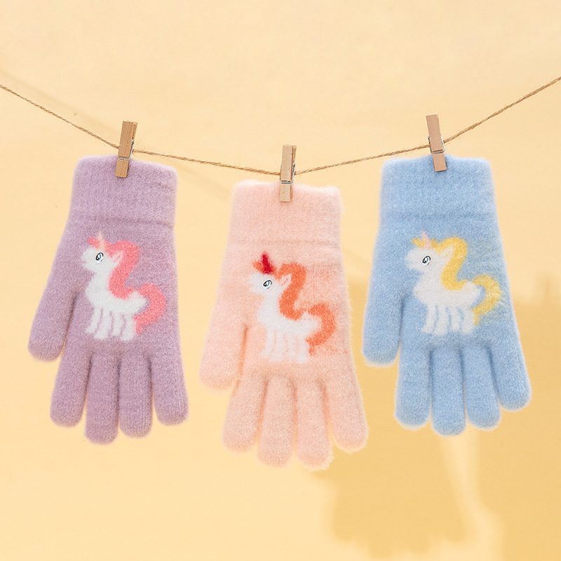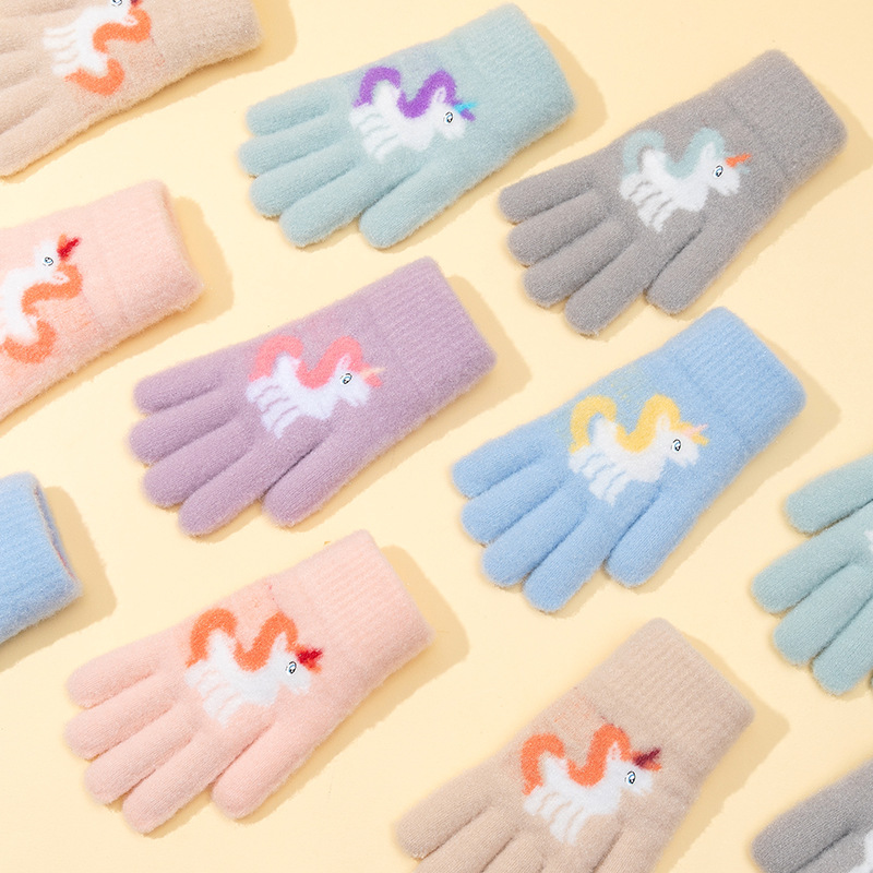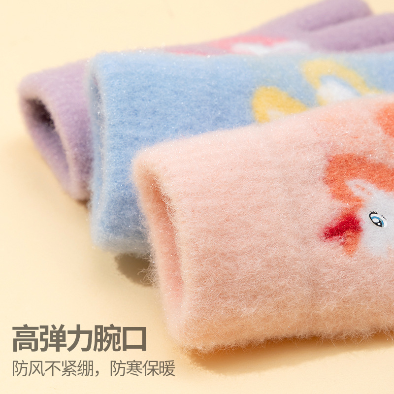 어린이 장갑 겨울 귀여운 중년 소녀 다섯 손가락 야외 아기 양모 따뜻한 두꺼운 초등학교 소녀