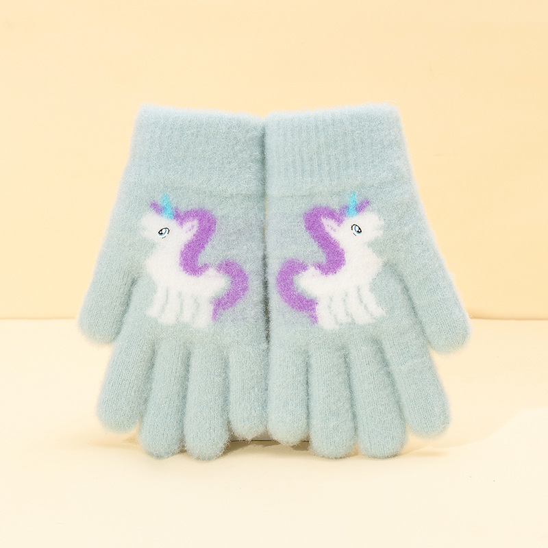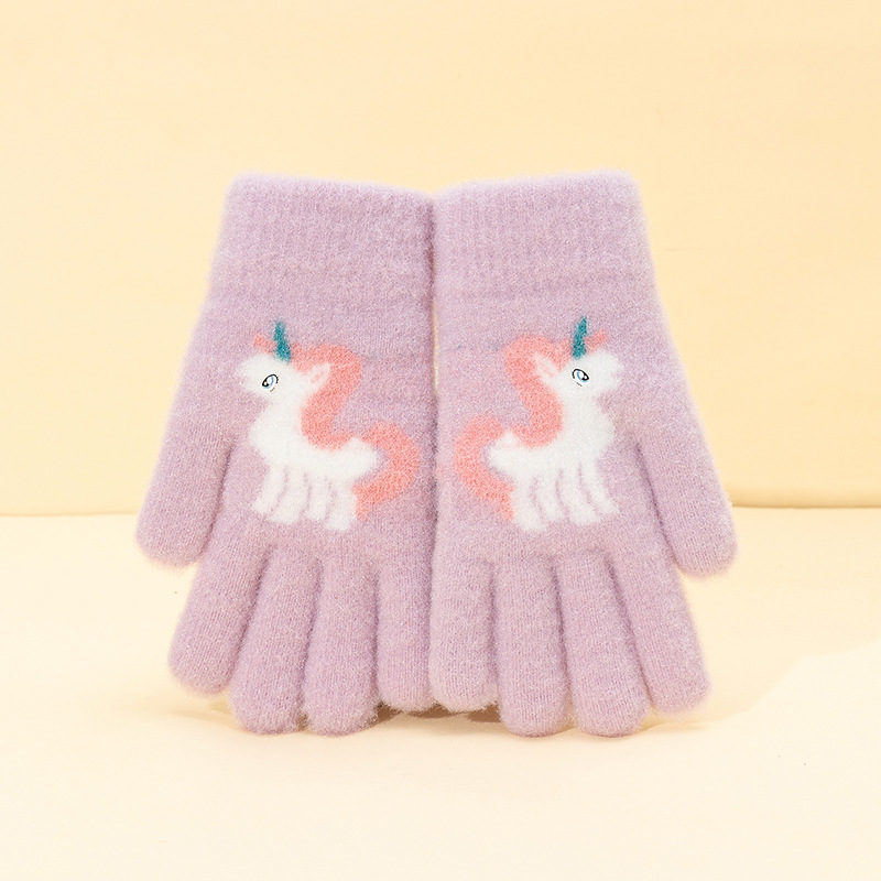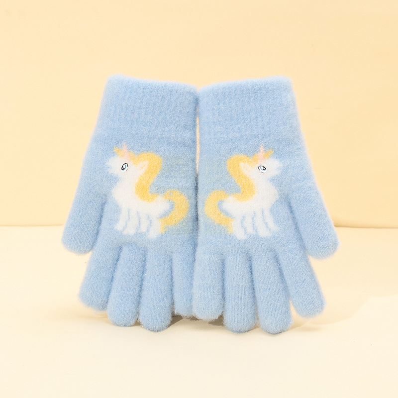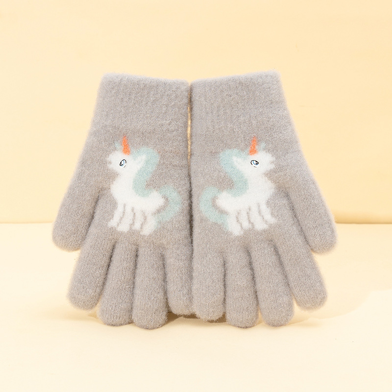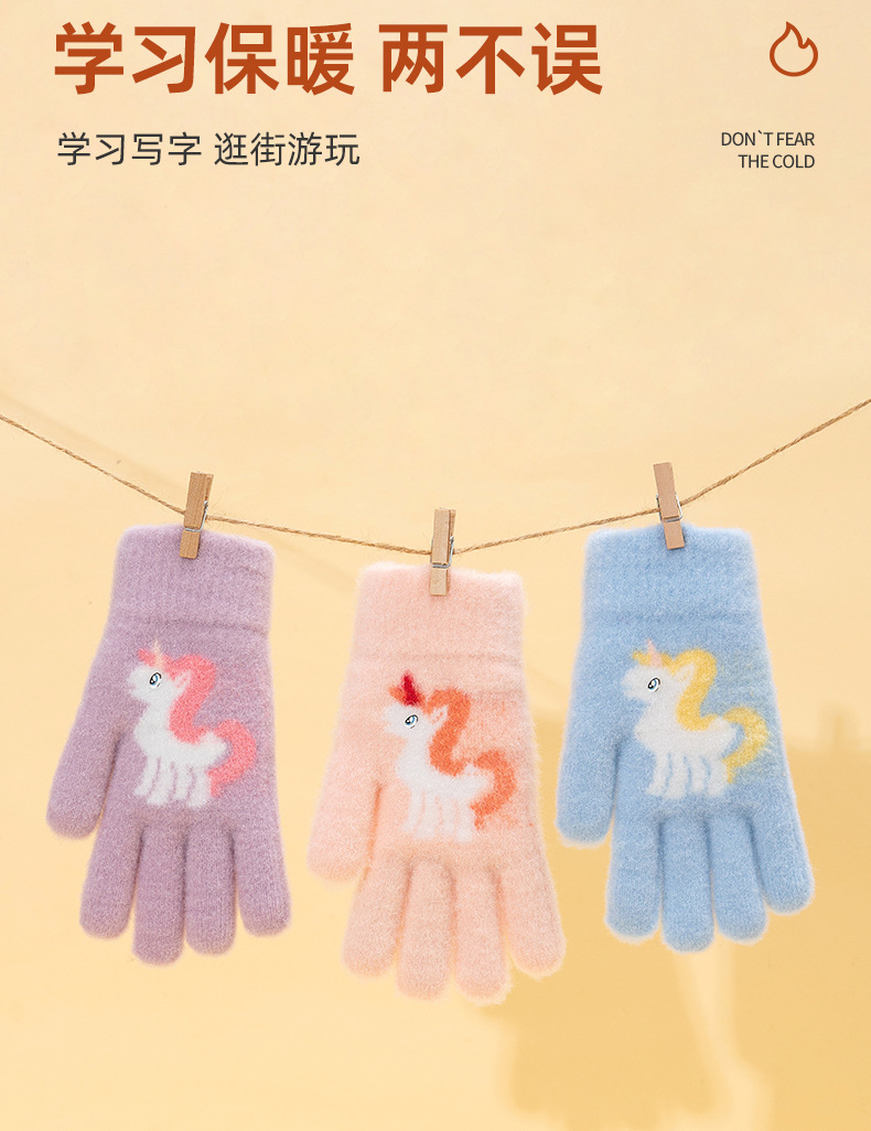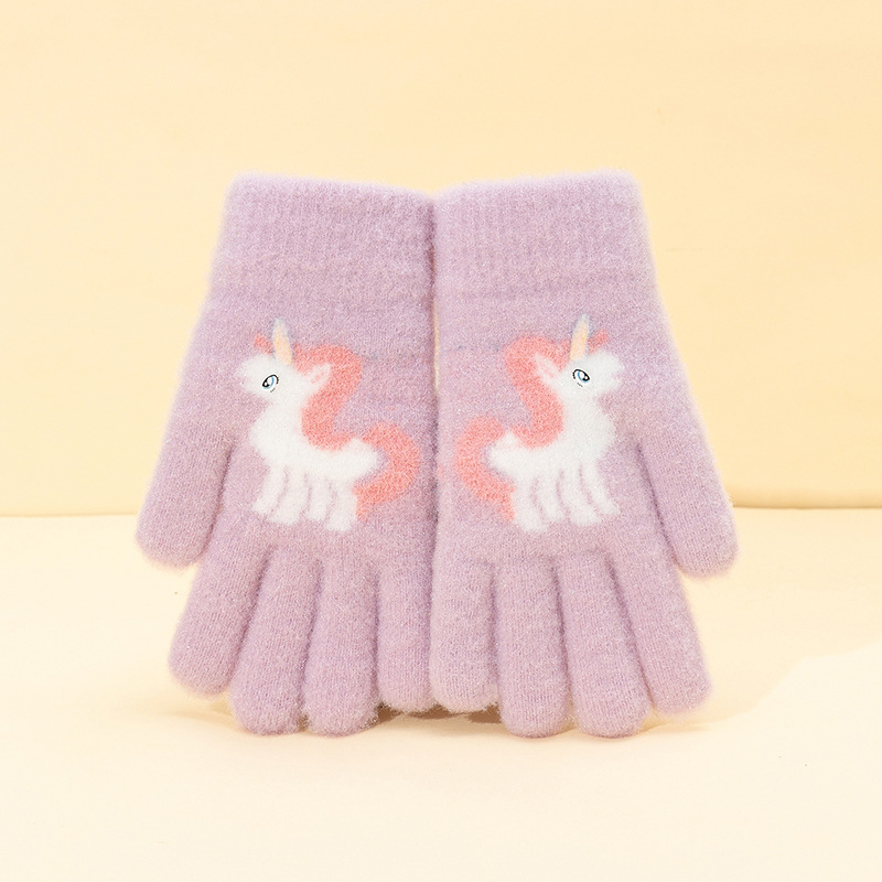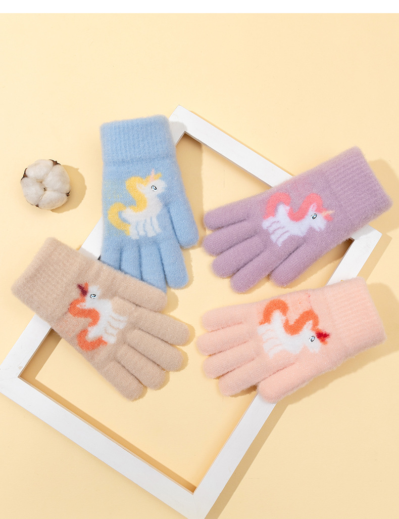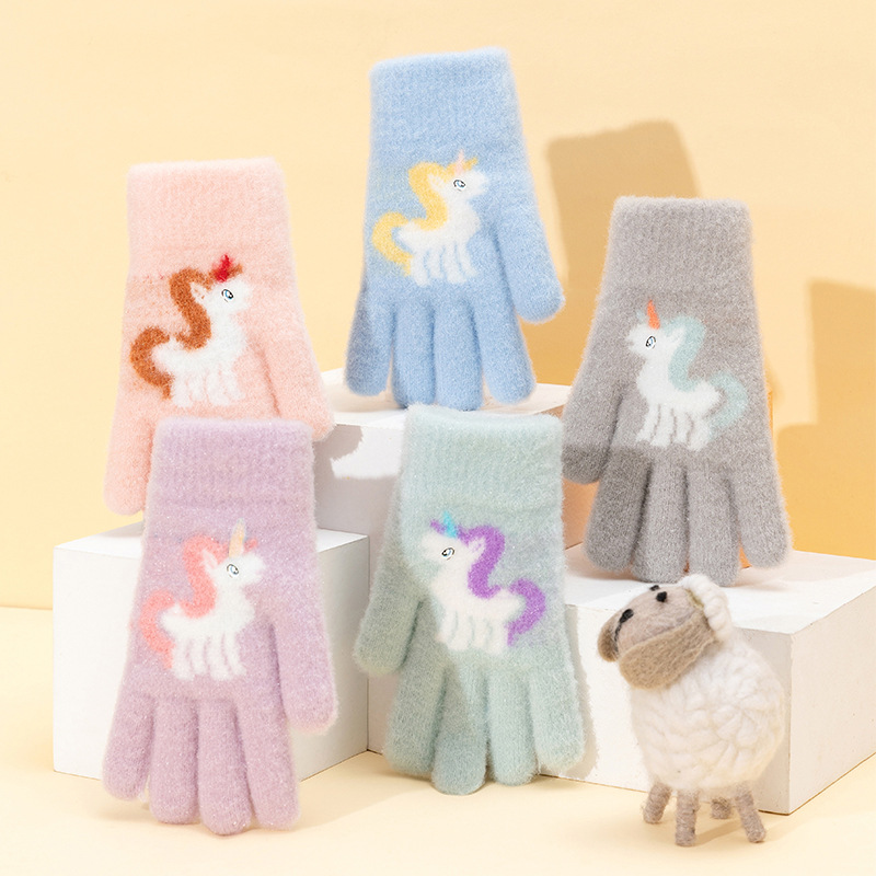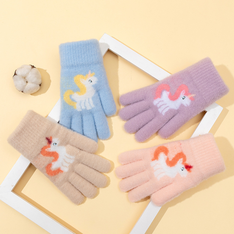 어린이 장갑 겨울 귀여운 중년 소녀 다섯 손가락 야외 아기 양모 따뜻한 두꺼운 초등학교 소녀