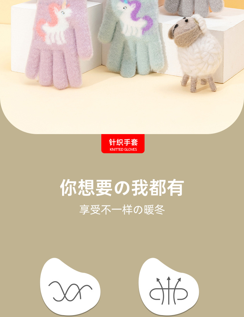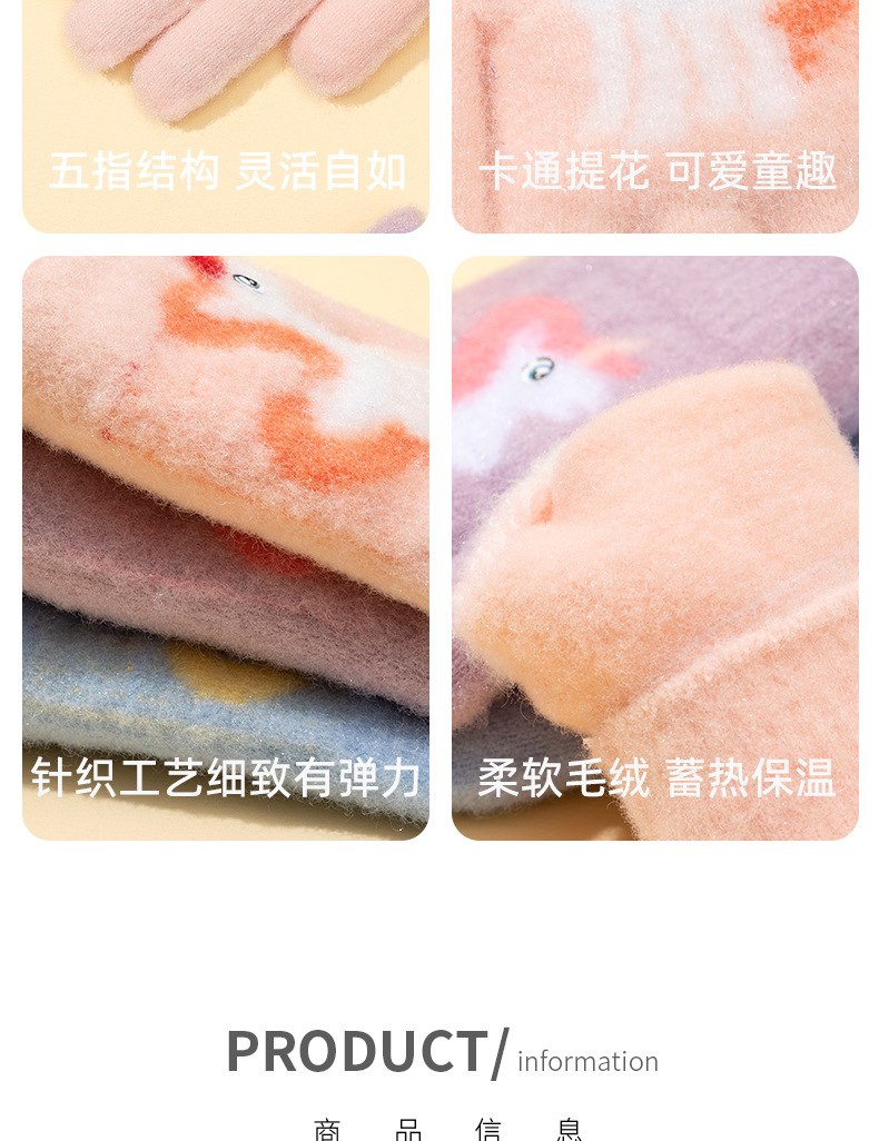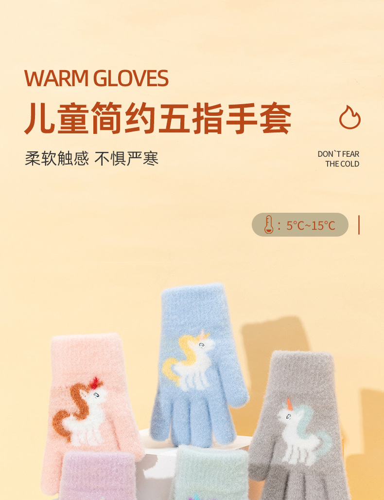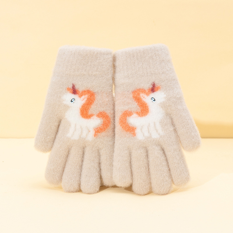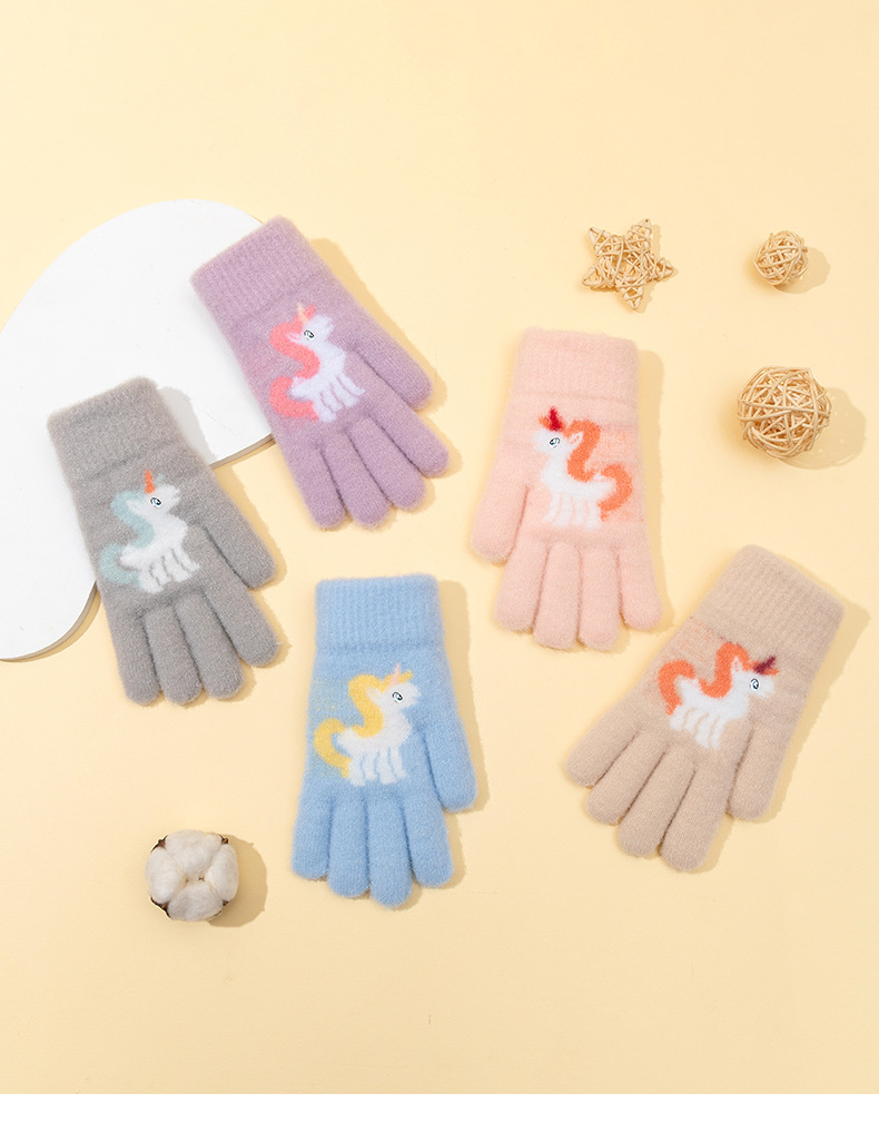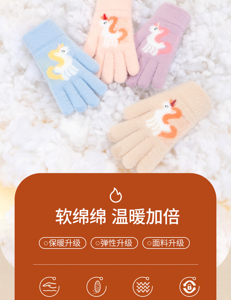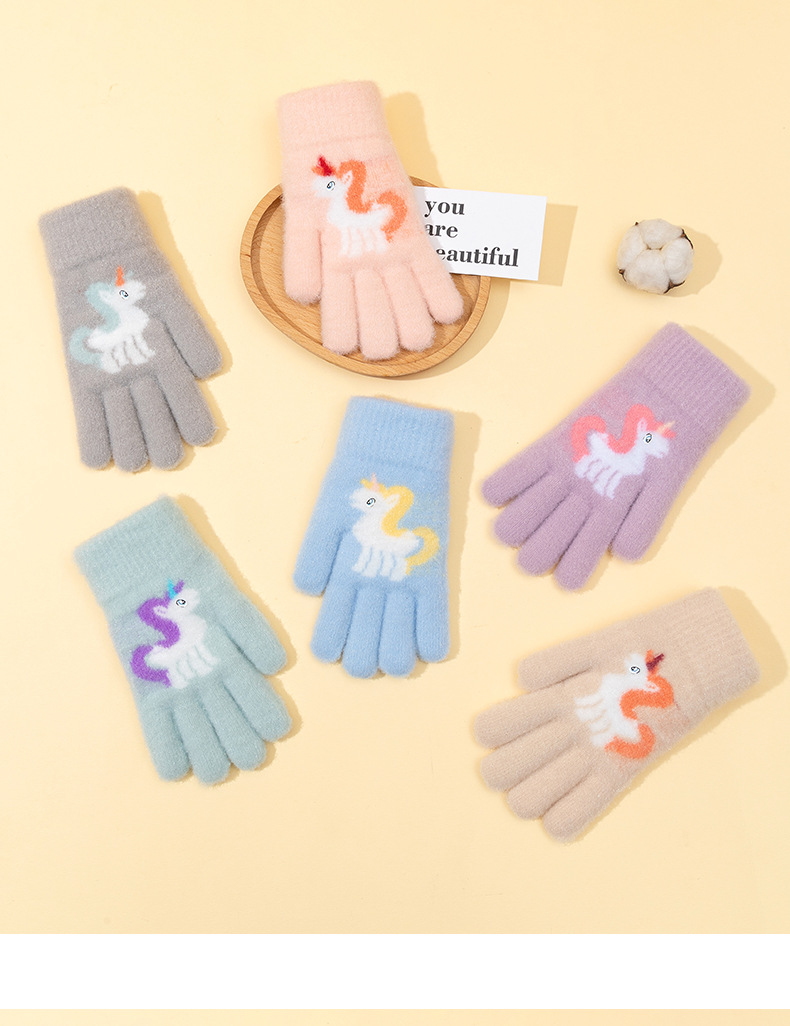 어린이 장갑 겨울 귀여운 중년 소녀 다섯 손가락 야외 아기 양모 따뜻한 두꺼운 초등학교 소녀