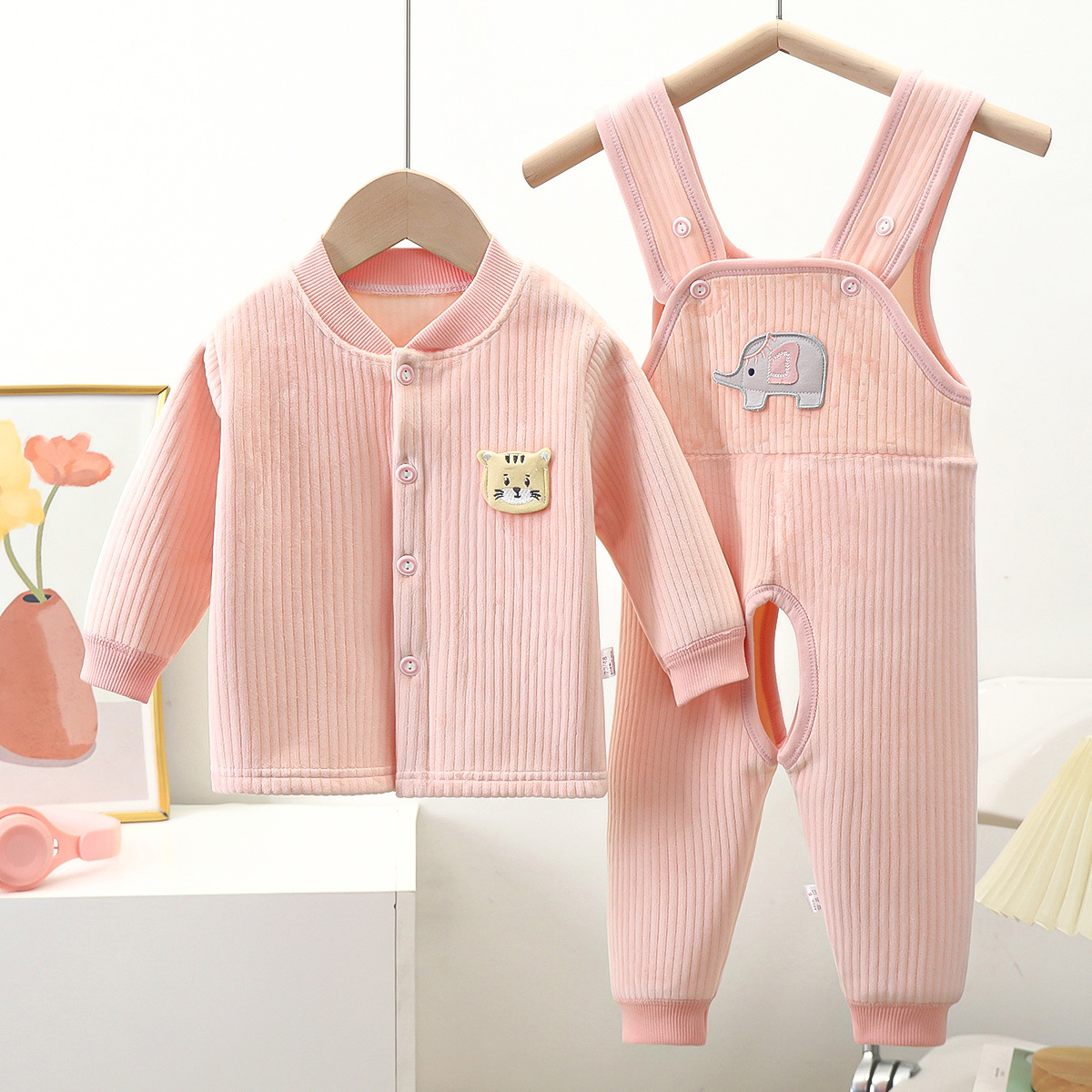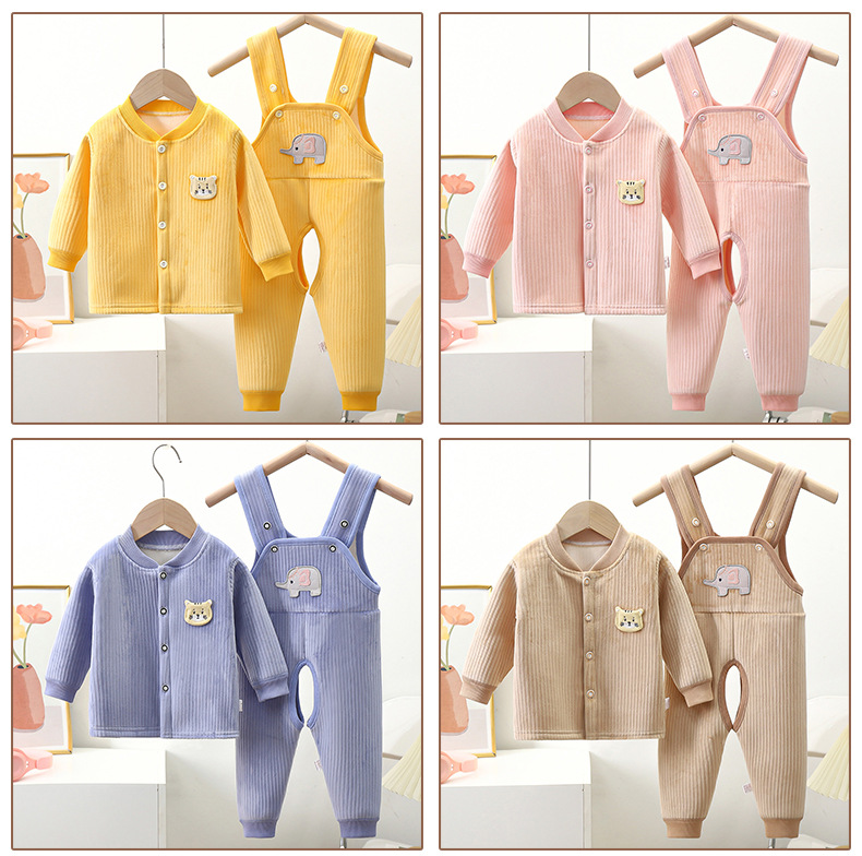 새로운 아기 스트랩 2 피스 3 층 따뜻한 봄과 가을 두꺼운 오픈 스타일 아기 속옷 세트