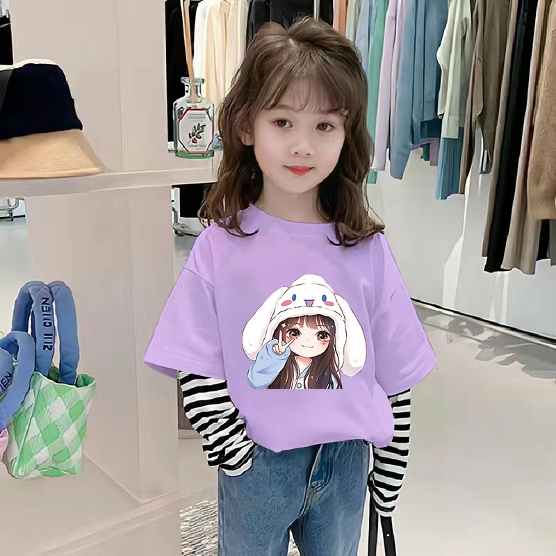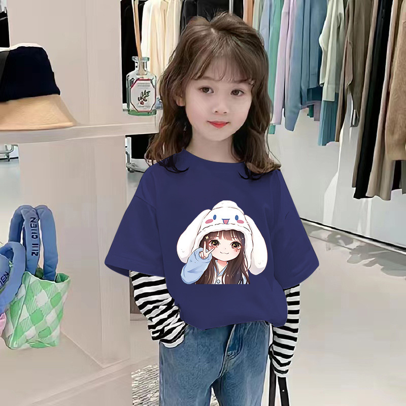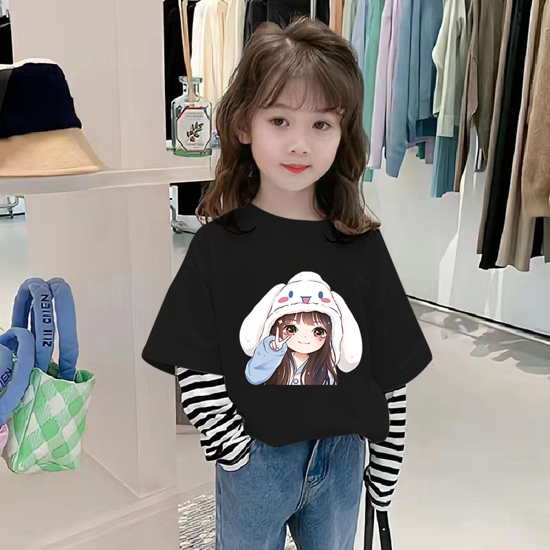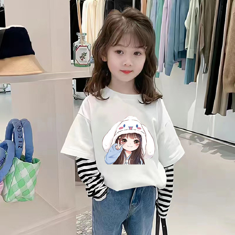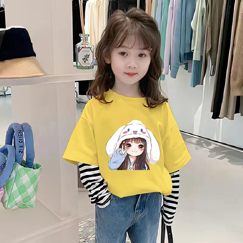G2368 # 소녀 긴 소매 캐주얼 탑 어린이 봄과 가을 조수 티셔츠 새로운 100% 면 서양 스타일 가짜 투피스 T스토어 가기