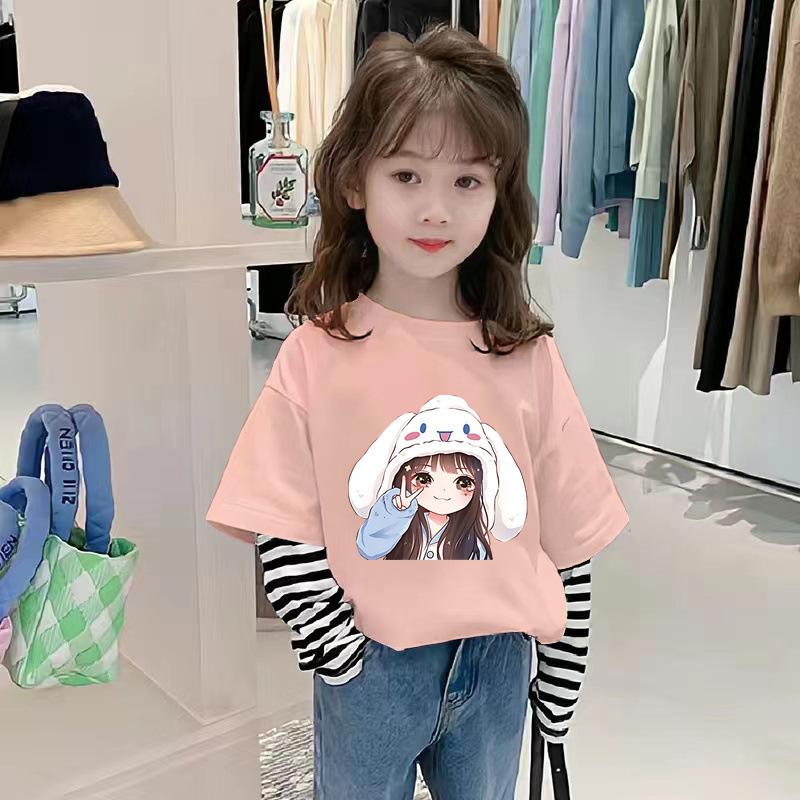 G2368 # 소녀 긴 소매 캐주얼 탑 어린이 봄과 가을 조수 티셔츠 새로운 100% 면 서양 스타일 가짜 투피스 T