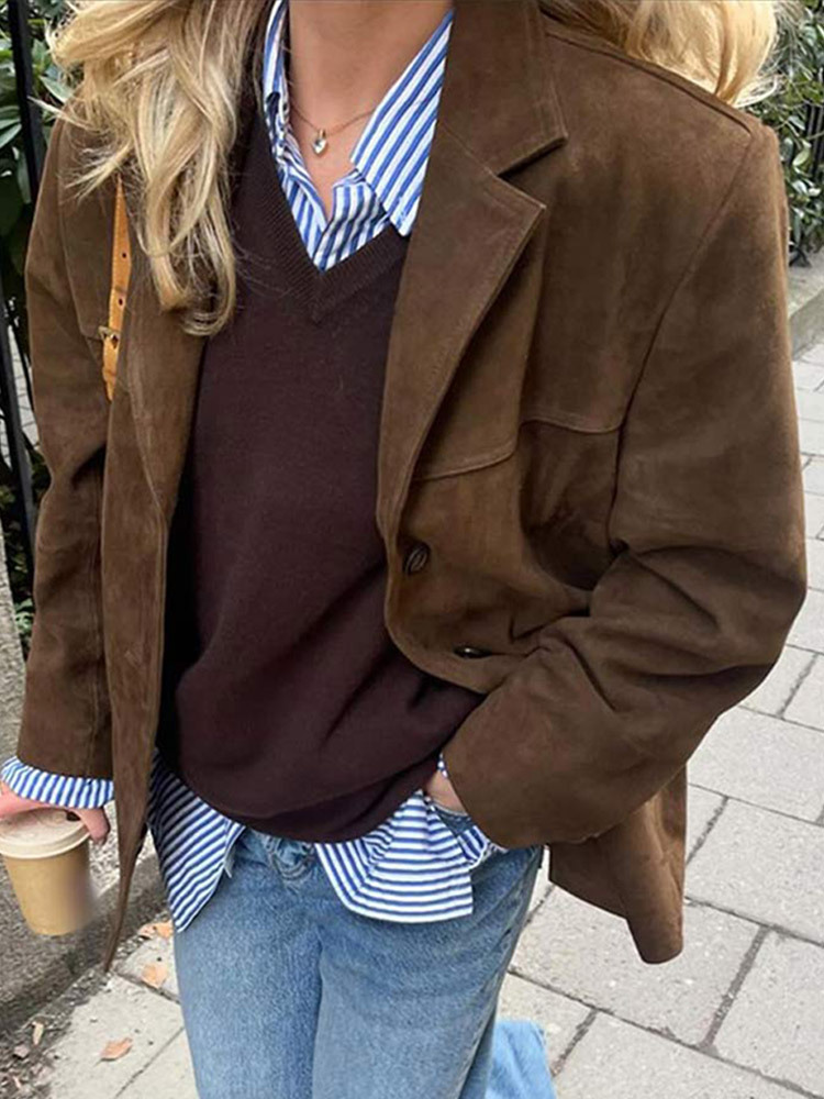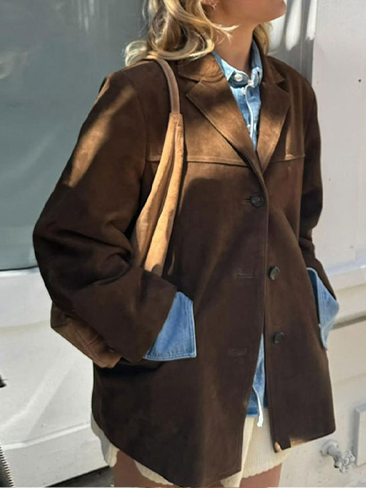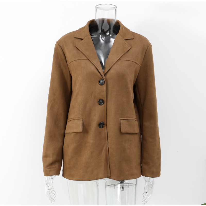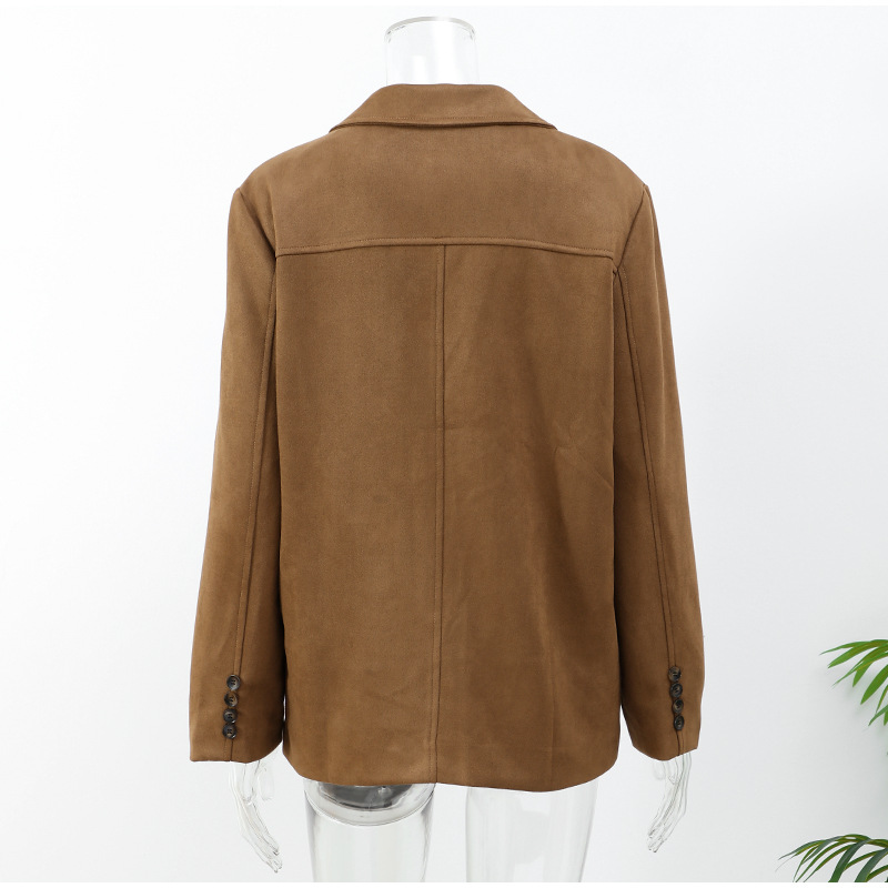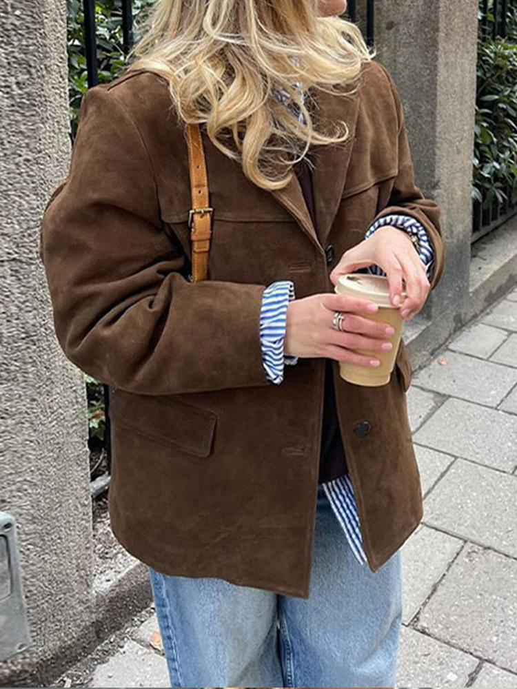 레이스 업 허리 라인 다크 브라운 스웨이드 재킷 유럽과 미국 국경 캐주얼 따뜻한 패션 코트