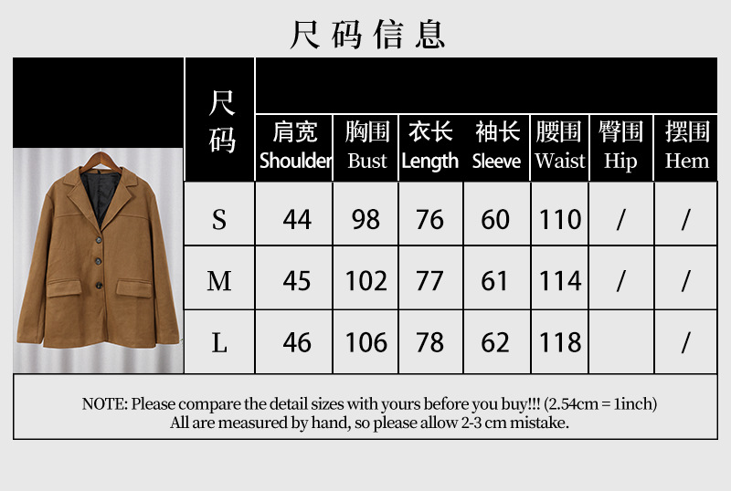 • 갈색 짧은 재킷의 최대 포장 무게는 630g입니다.