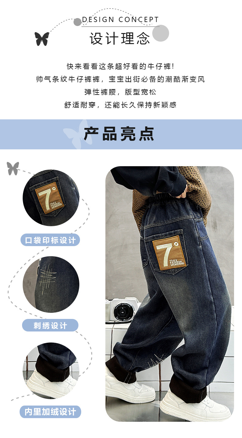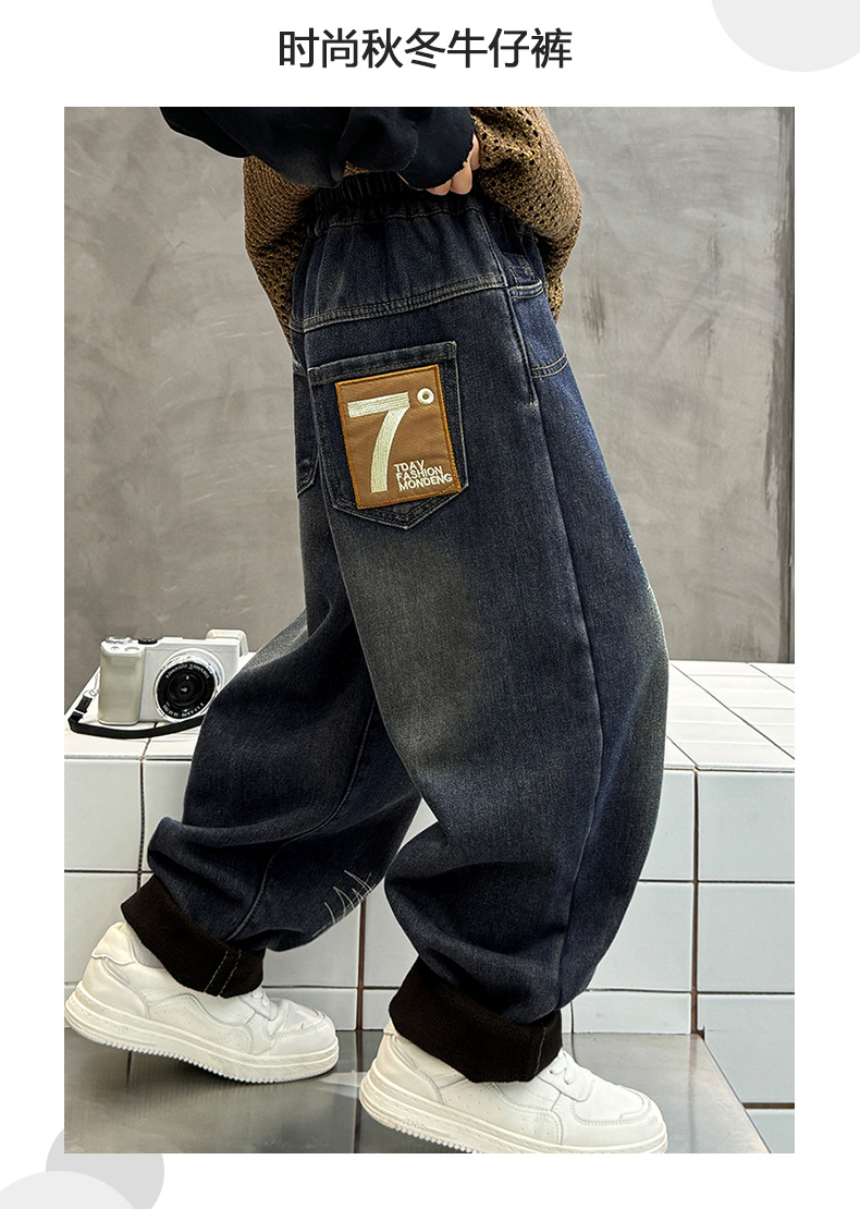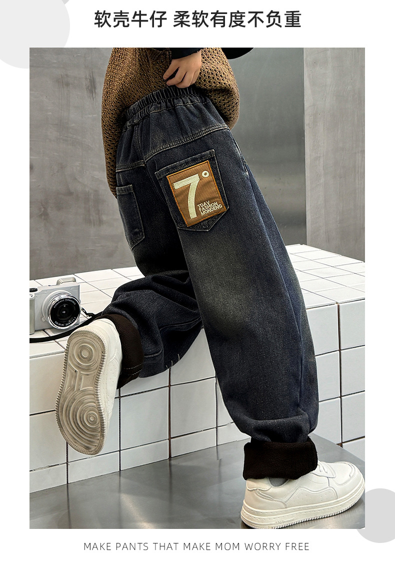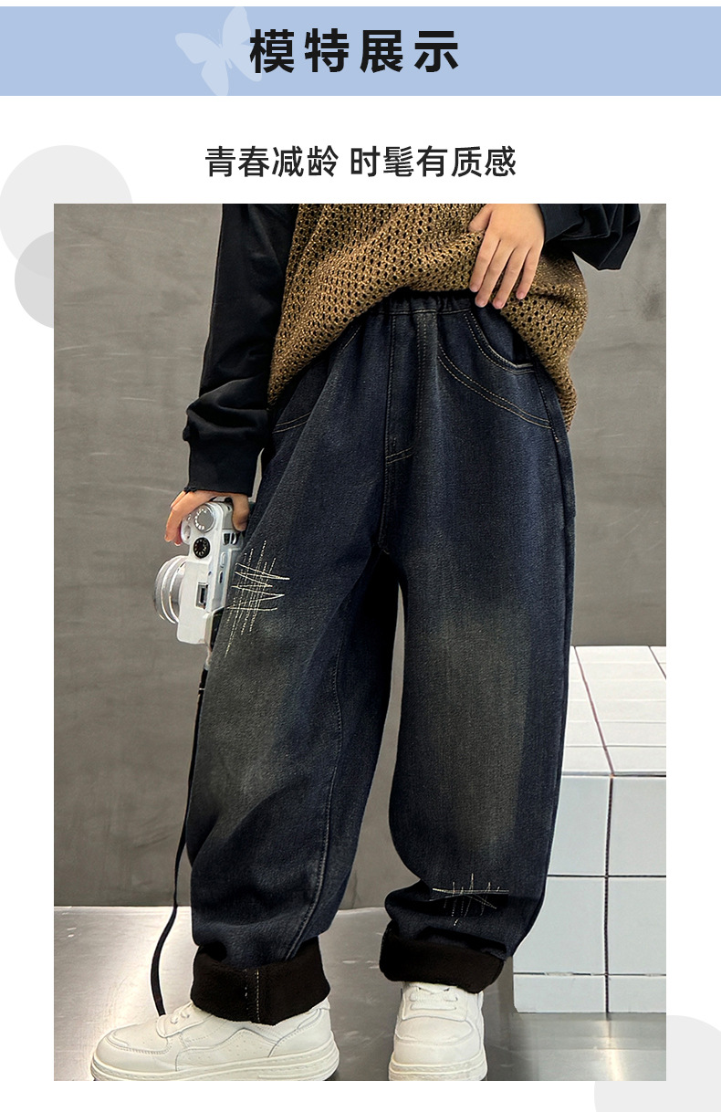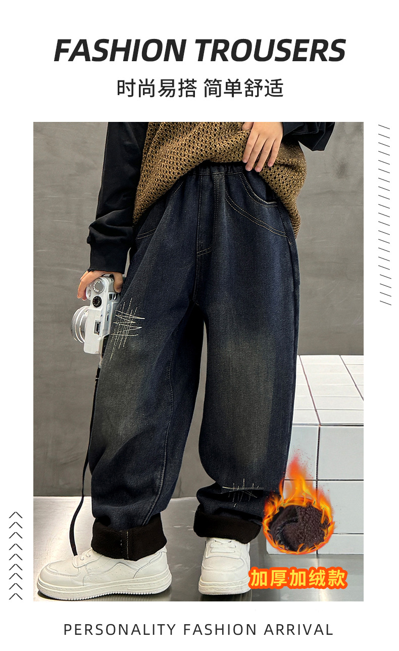 아동 남성복 2025 신형 남아 청바지 원피스 벨벳 플러스 벨벳 따뜻한 바지 학생 면바지 두꺼운 벨벳 신축성스토어 가기