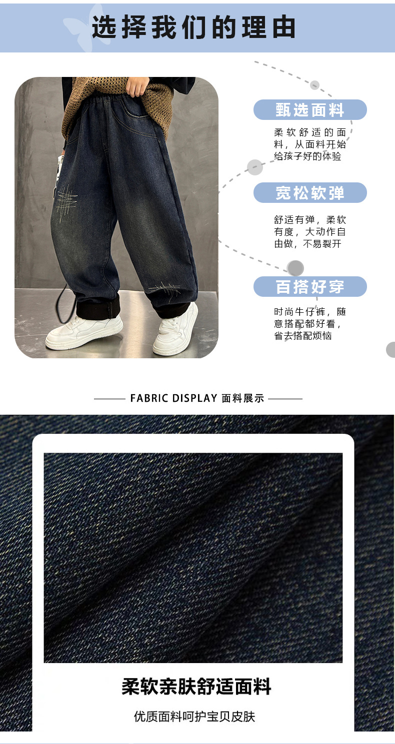 아동 남성복 2025 신형 남아 청바지 원피스 벨벳 플러스 벨벳 따뜻한 바지 학생 면바지 두꺼운 벨벳 신축성
