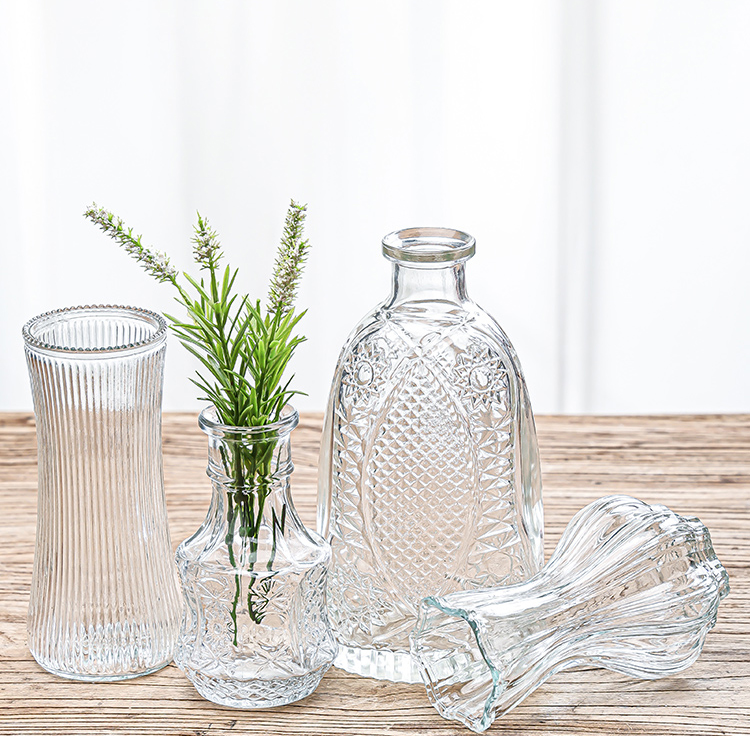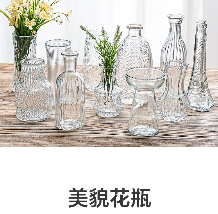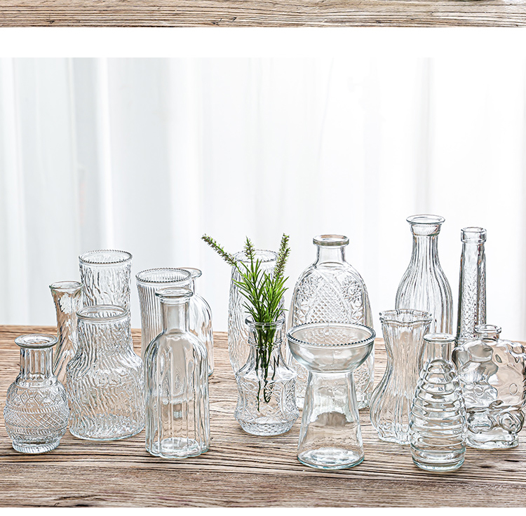 Ins 스타일 프랑스 스타일 빈티지 양각 유리 미니 작은 꽃병 투명 수경 꽃 꽃병 데스크탑 장식 장식품스토어 가기