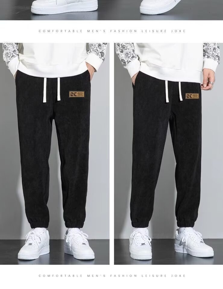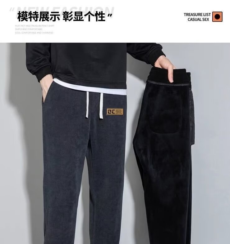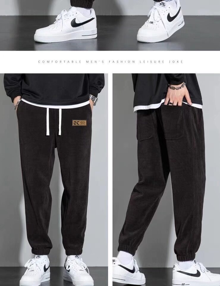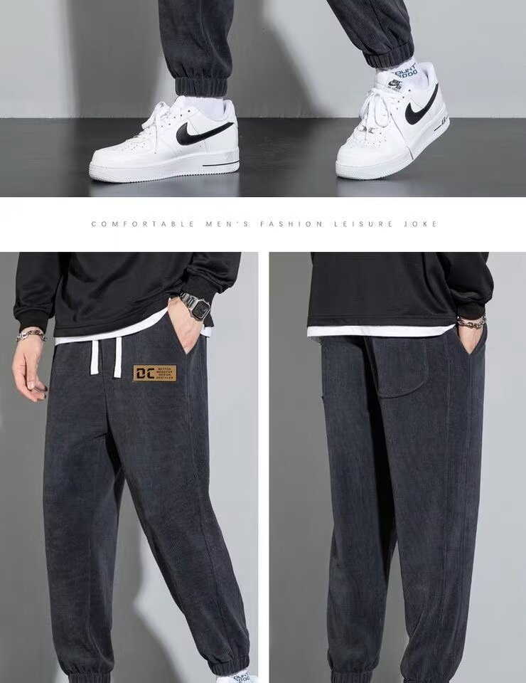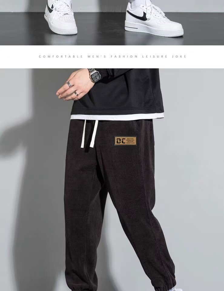남성용 캐주얼 팬츠 봄 가을 루즈핏 트렌디 브랜드 인스 스타일 코듀로이 겨울용 회색 스포츠 기모 팬츠스토어 가기