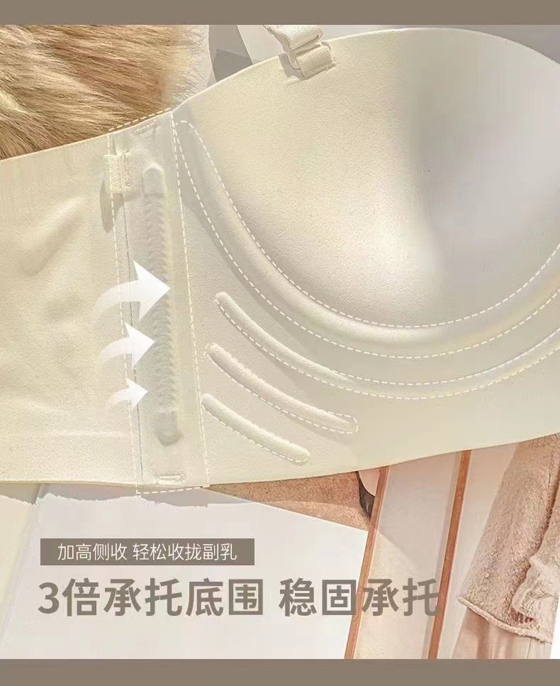 하프 컵 여름 속옷 여성의 작은 가슴 모임 대형 스틸 링 스트랩리스 튜브 탑 두꺼운 통기성 원활한 브래지어