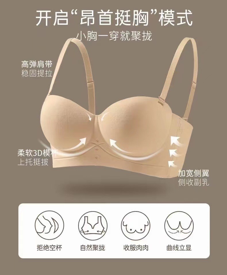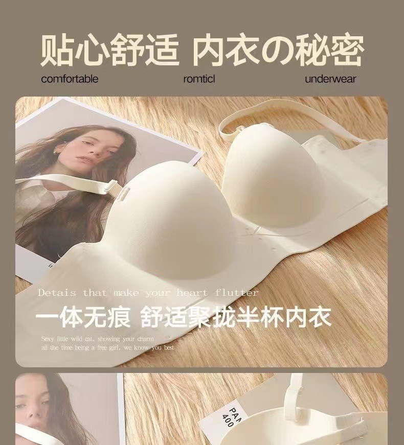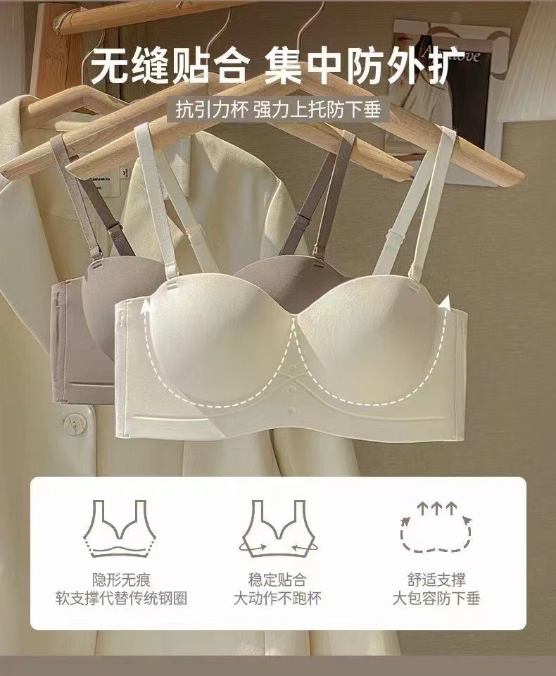 하프 컵 여름 속옷 여성의 작은 가슴 모임 대형 스틸 링 스트랩리스 튜브 탑 두꺼운 통기성 원활한 브래지어스토어 가기