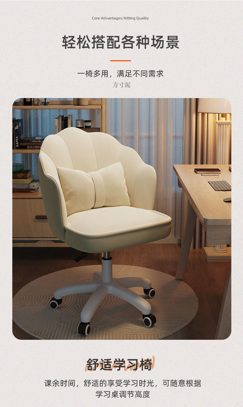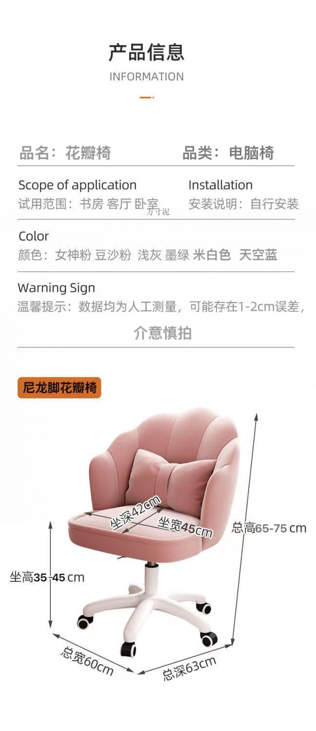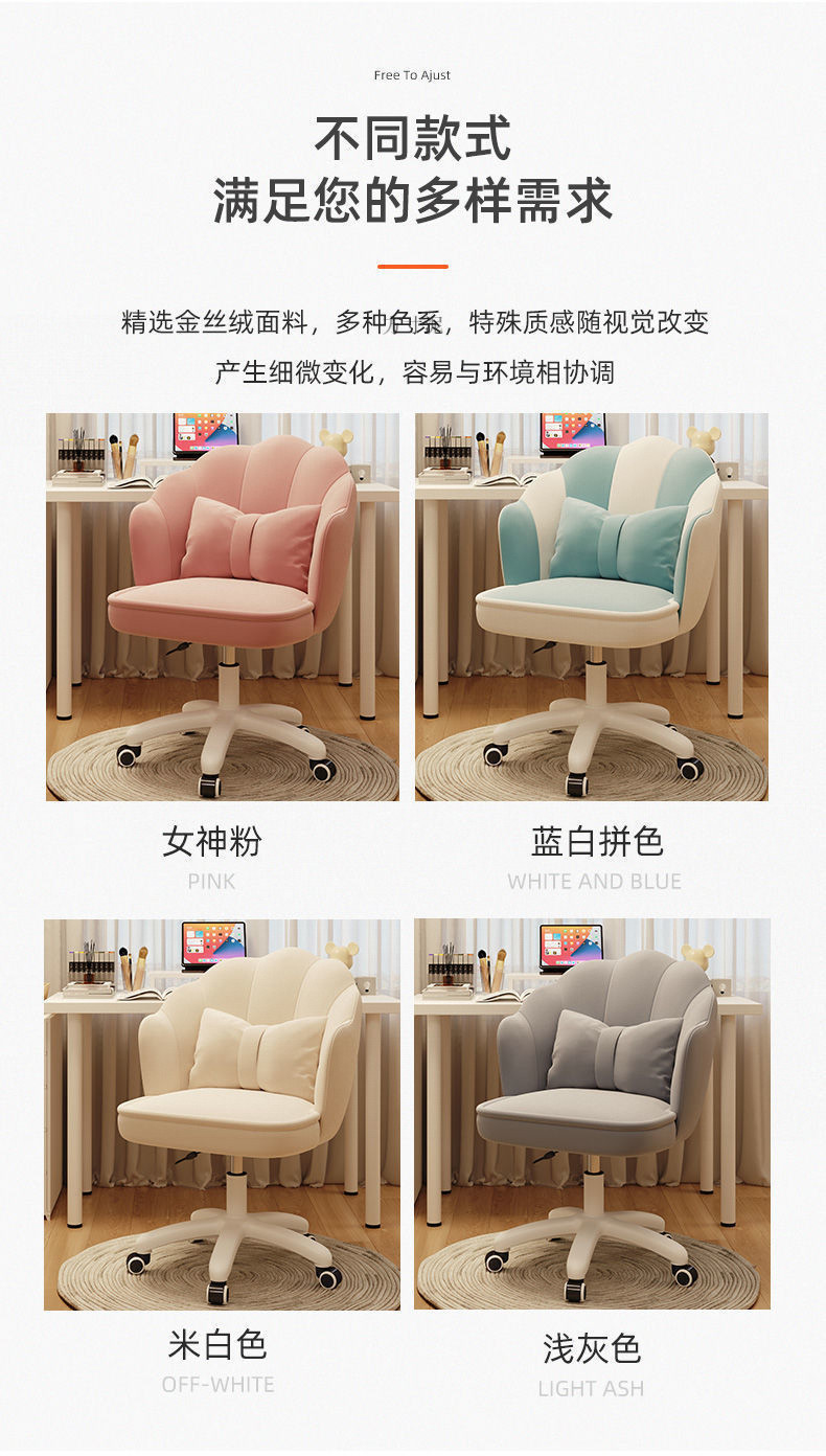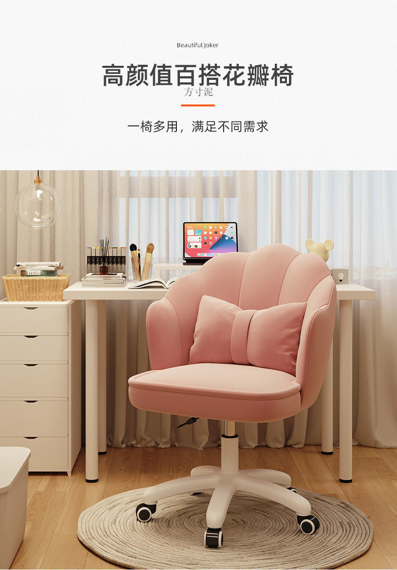 가정용 컴퓨터 의자 등받이 침실 회전 의자 좌식 여성 메이크업 의자 기숙사 꽃잎 리프트 회전 의자 도매스토어 가기