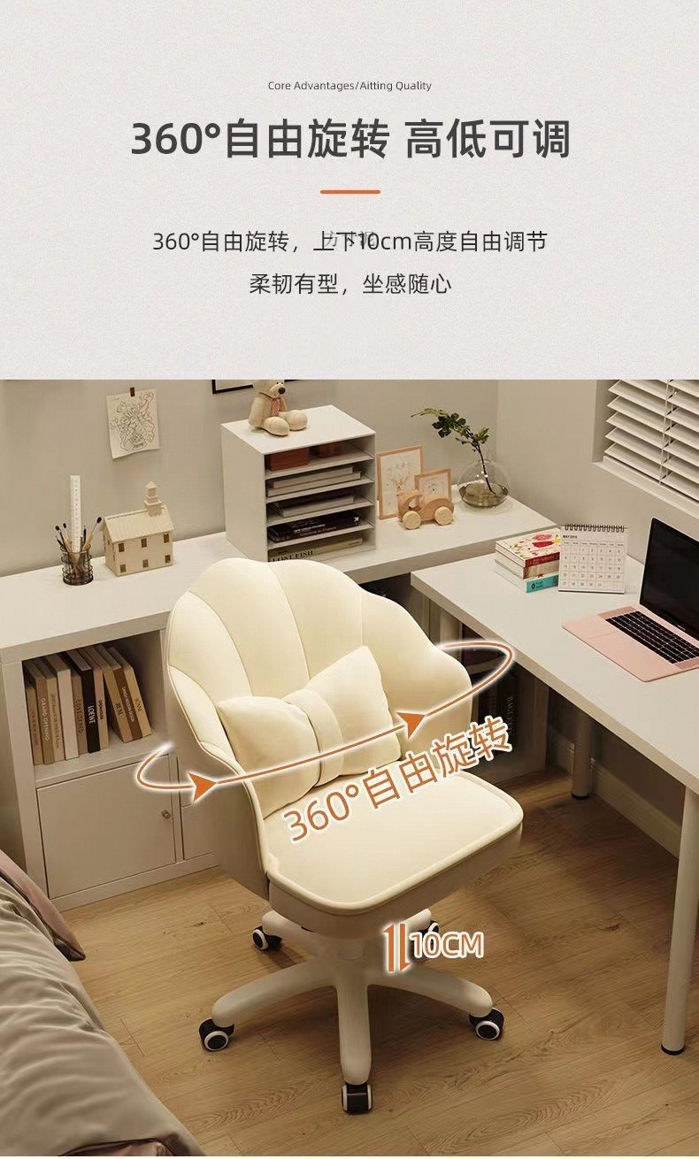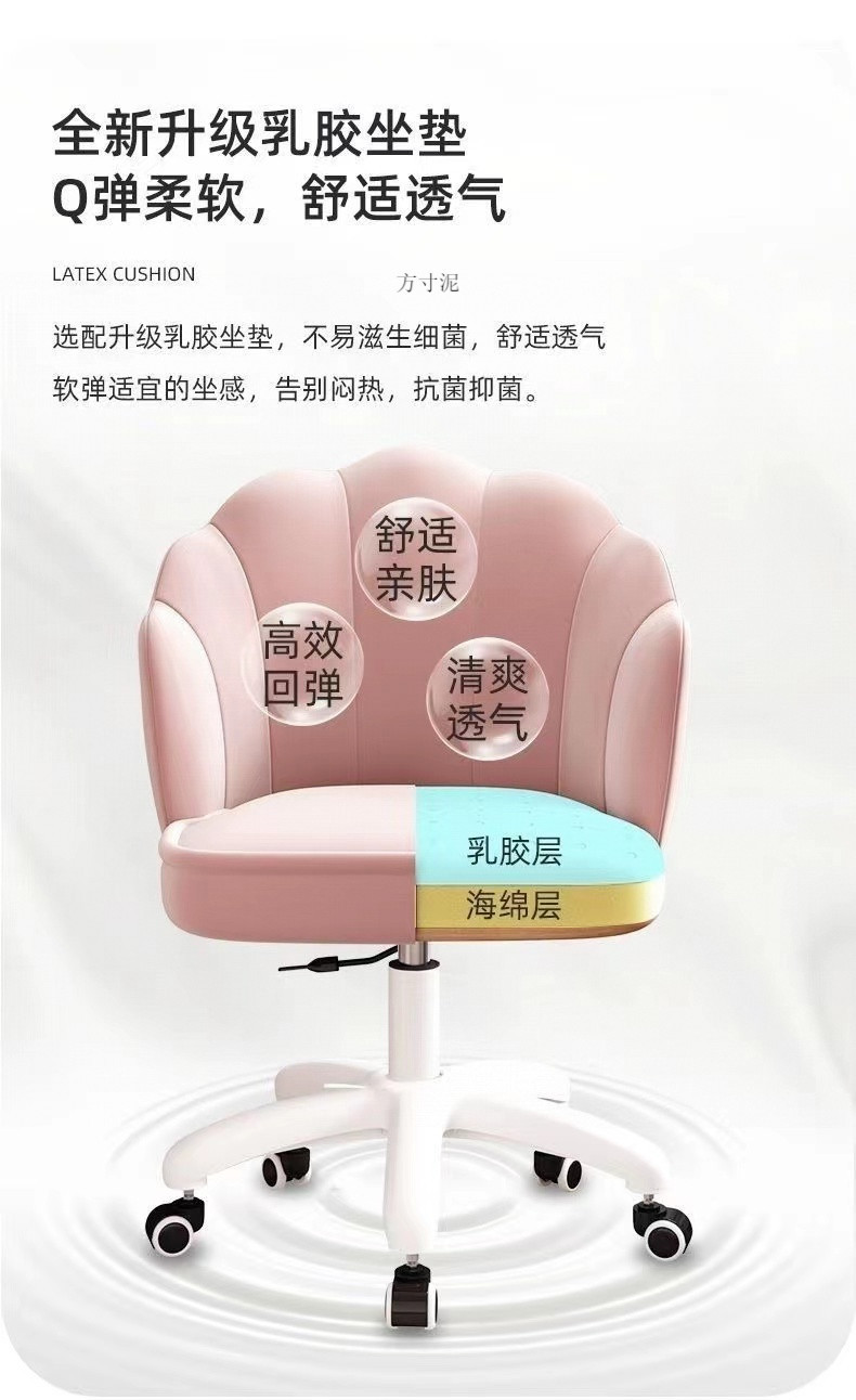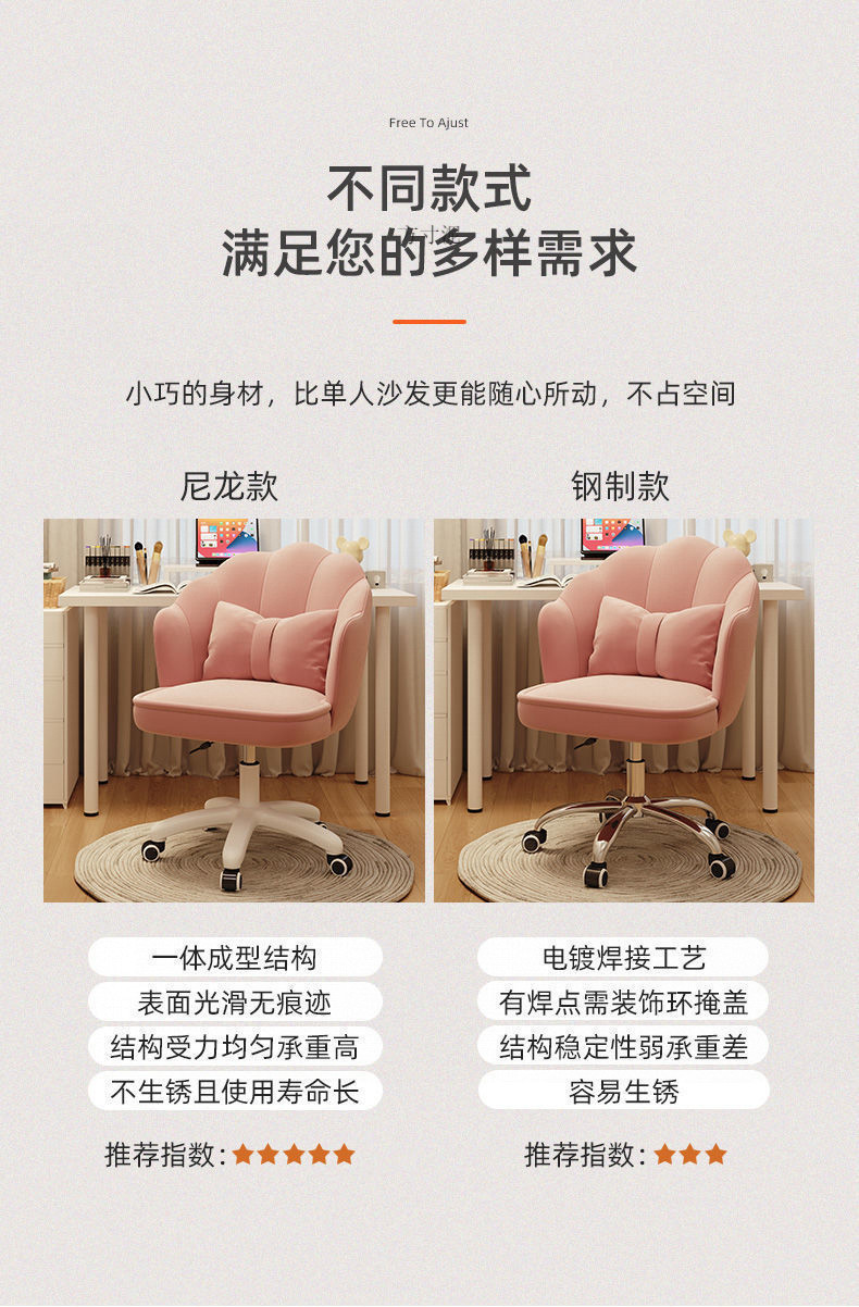 가정용 컴퓨터 의자 등받이 침실 회전 의자 좌식 여성 메이크업 의자 기숙사 꽃잎 리프트 회전 의자 도매스토어 가기