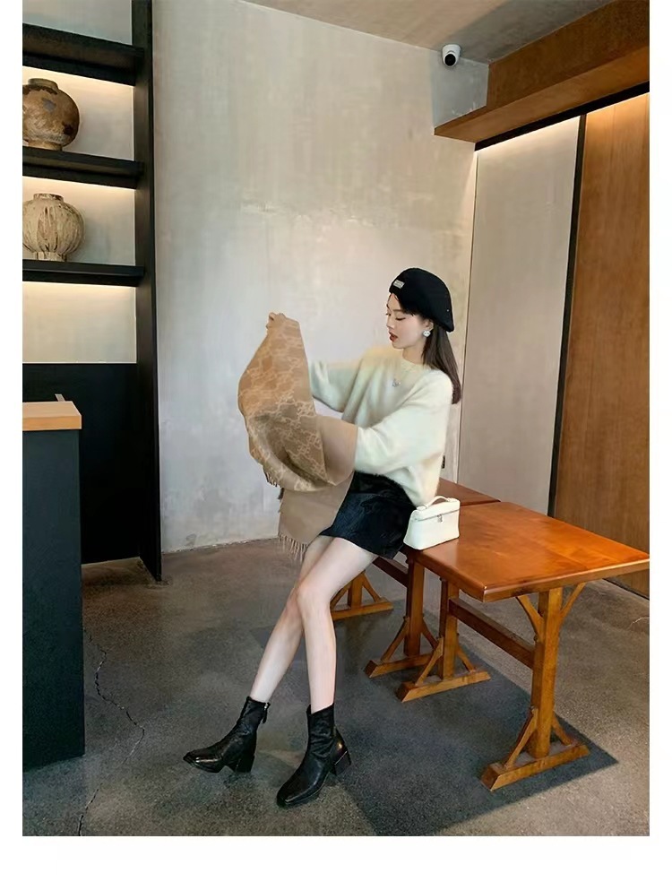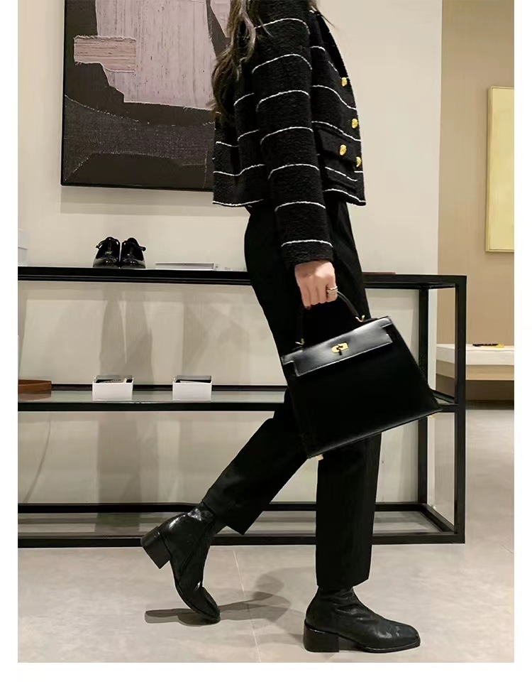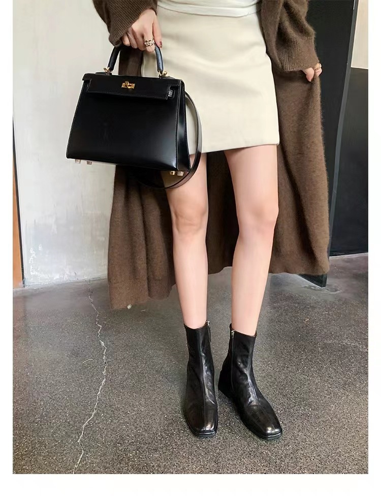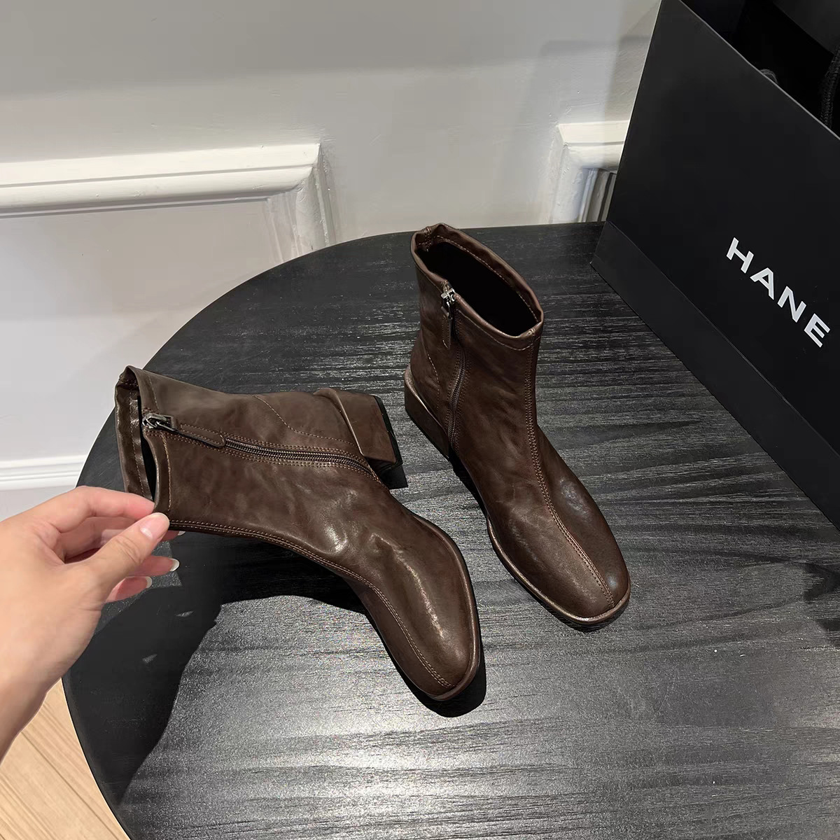 씻은 Cowhide ~ 정품 가죽 스퀘어 헤드 레트로 얇은 부츠 여성용 두꺼운 힐 발목 부츠 영국 스타일 마틴 부츠 싱글 부츠스토어 가기