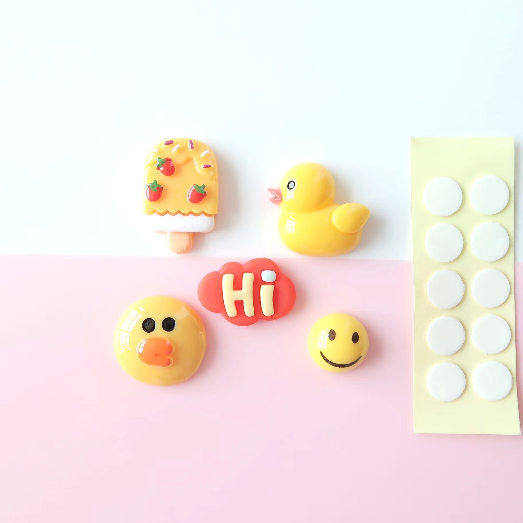 • 작은 노란색 오리 패치 5개 + 도트 접착제