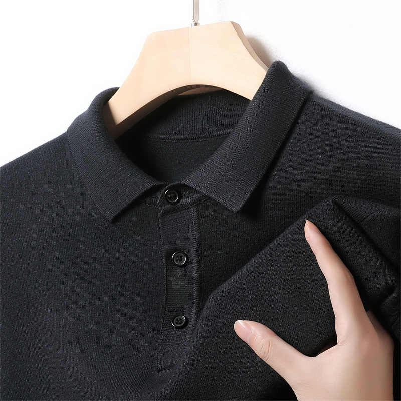가을과 겨울 옷깃 스웨터 남성용 긴팔 솔리드 컬러 슬림핏 내부 니트 스웨터 남성용 캐주얼 따뜻한 탑 셔츠 칼라스토어 가기