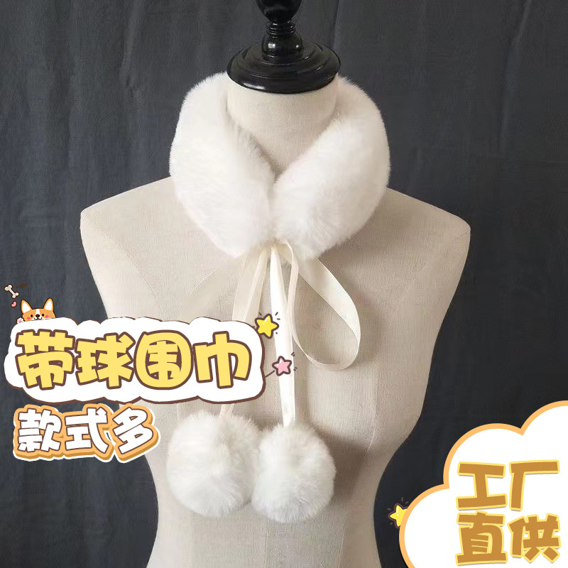 도매 모조 rex 토끼 모피 봉제 스카프 골동품 액세서리 모피 넥타이 모피 공 봉제 두꺼운 따뜻한 모피 공 스카프스토어 가기