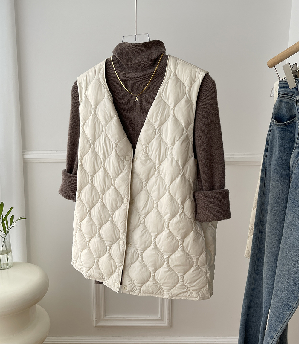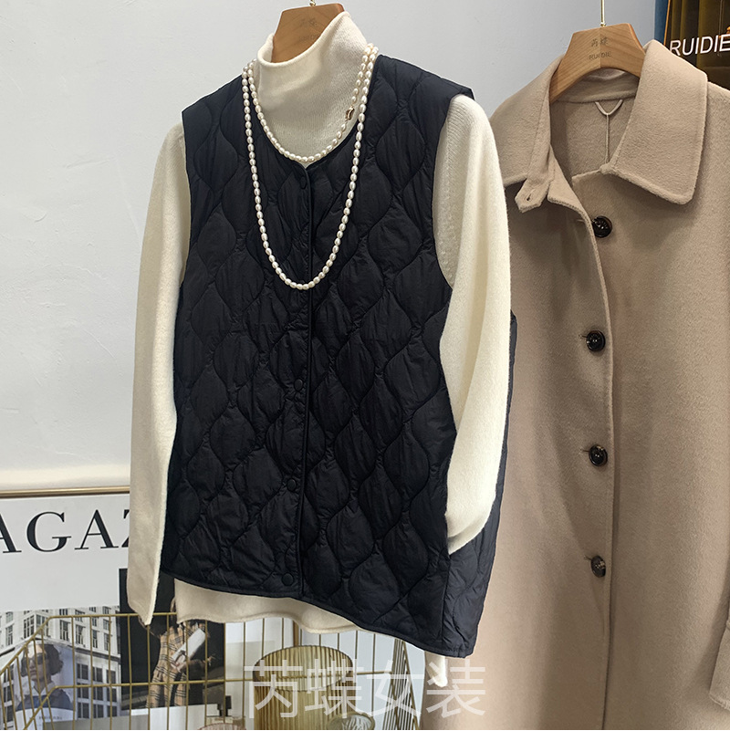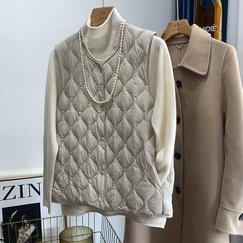 캐시미어 코트는 내부 백킹 라이너 외부에 착용 할 수 있습니다 짧은 둥근 목 밝은 흰색 오리 아래 조끼 여성 조끼스토어 가기