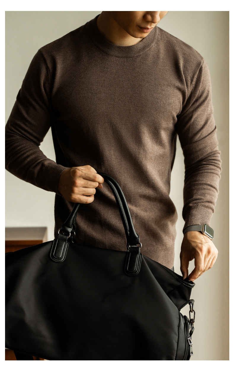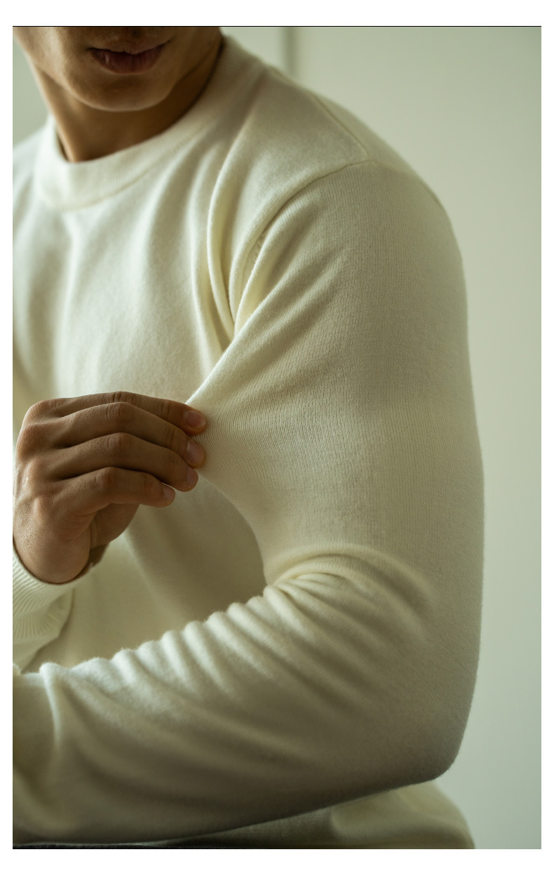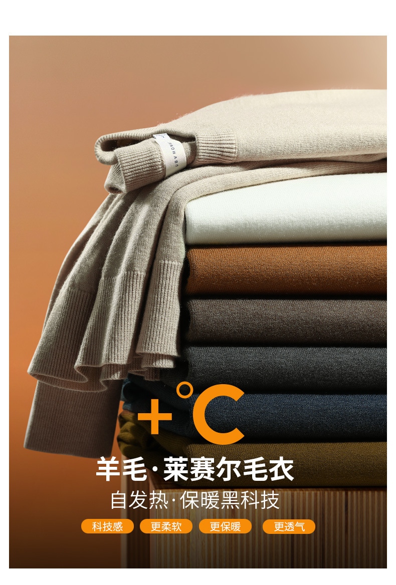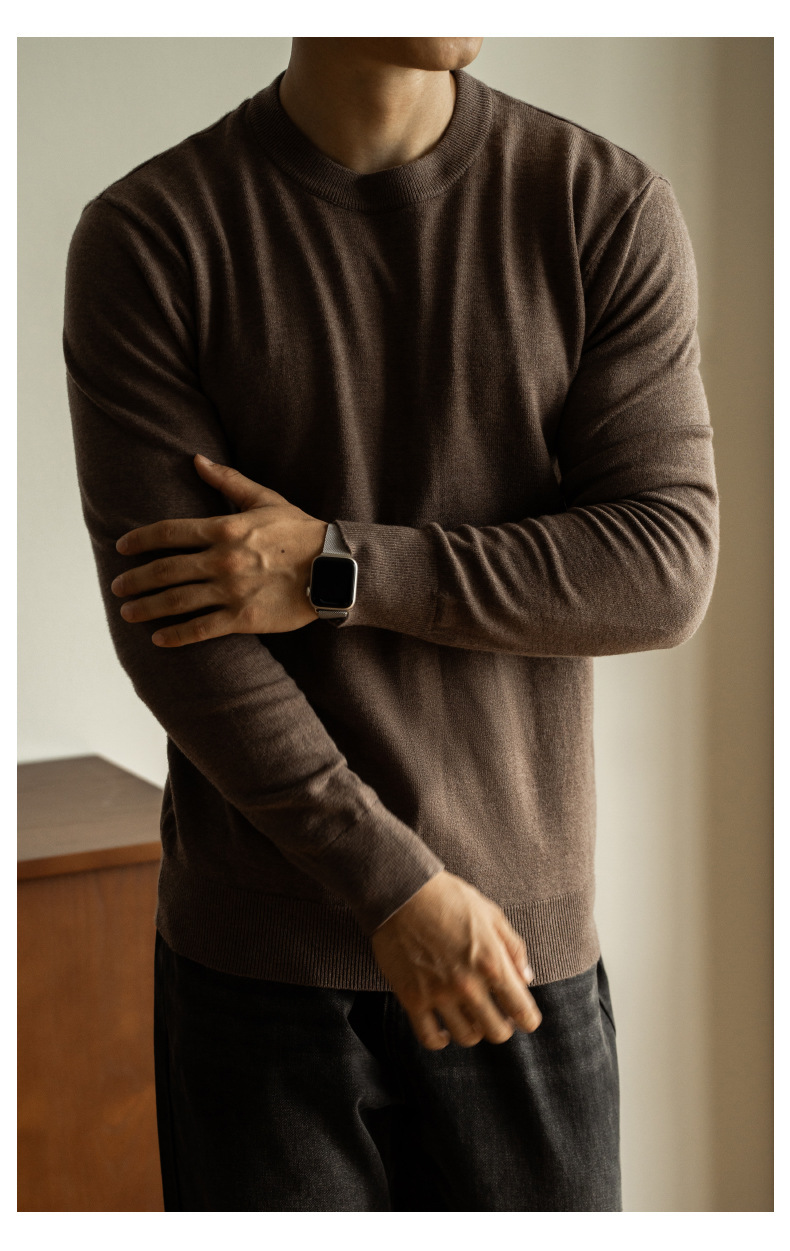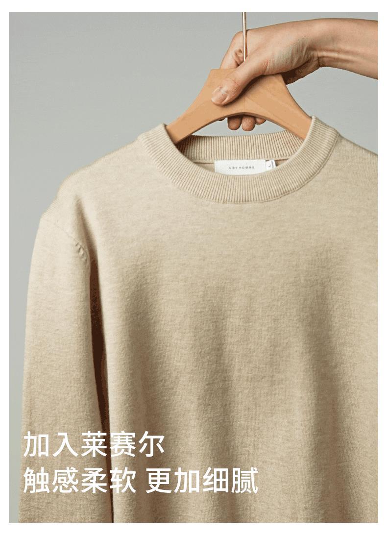 혼방 텐셀 라운드넥 스웨터 남성용 2025 신상 가을 출퇴근용 단색 이너 니트웨어 남성용스토어 가기