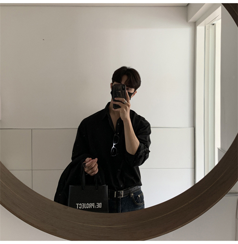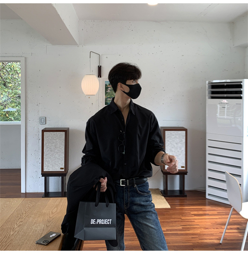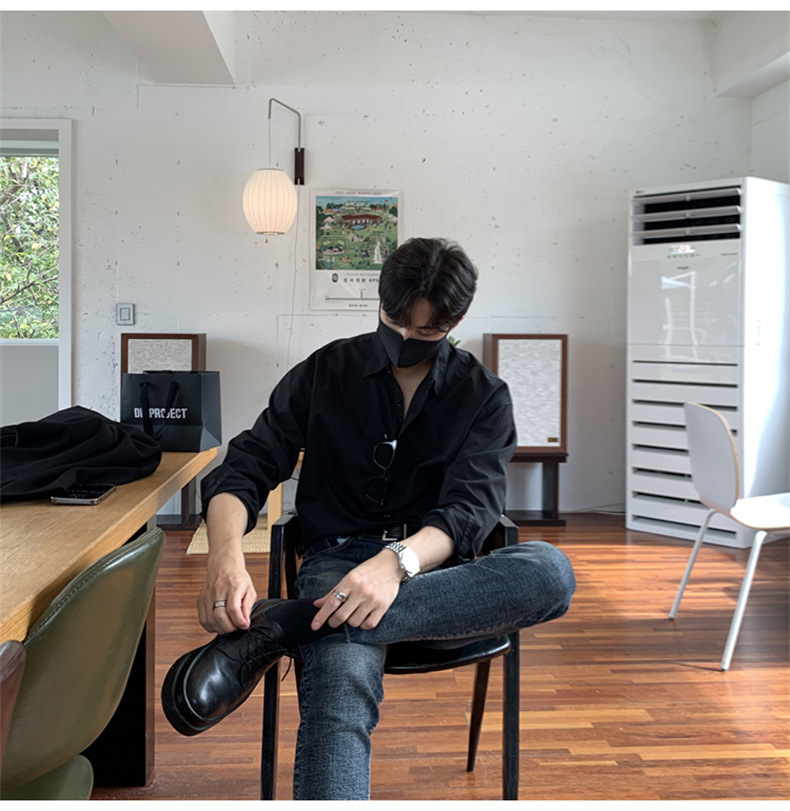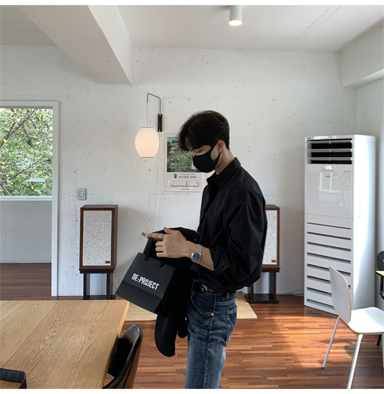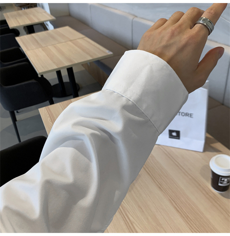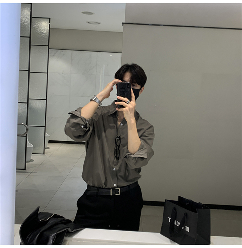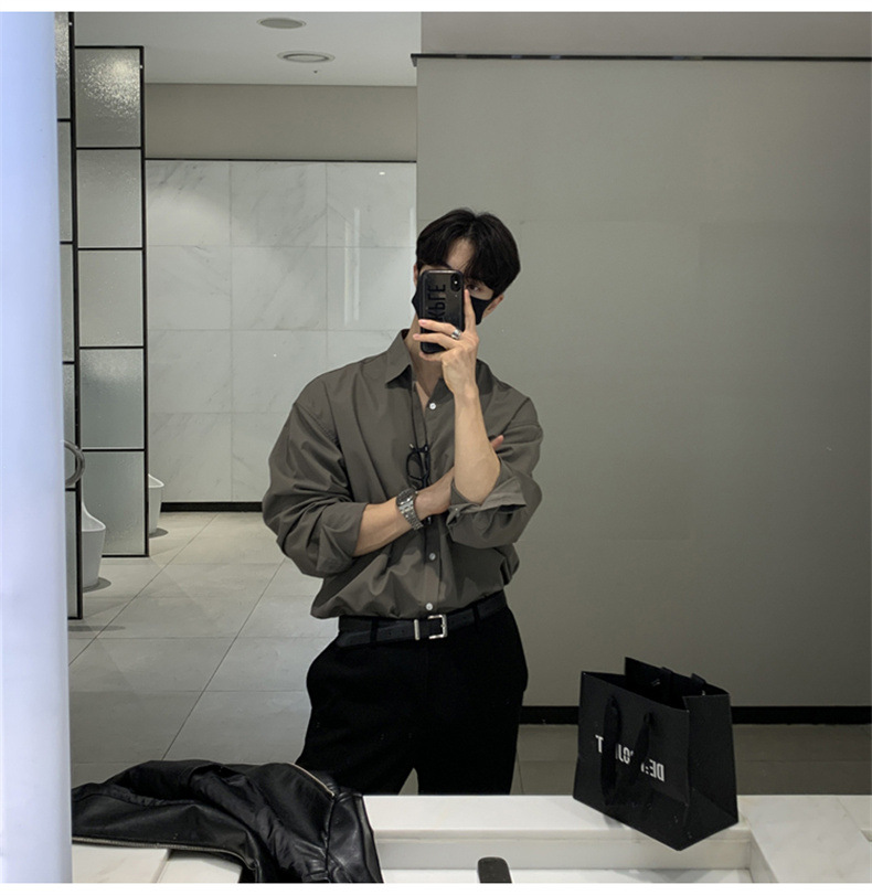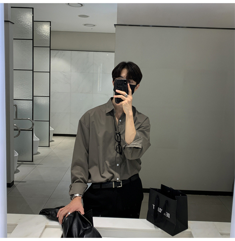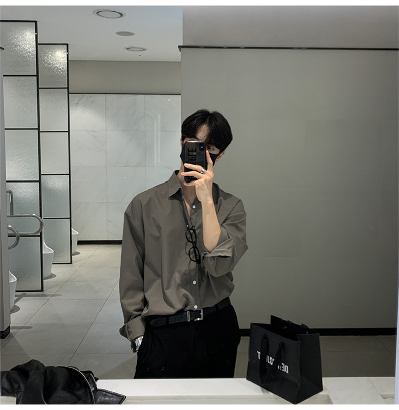 고급 비 다림질 긴팔 셔츠 남성용 한국식 루즈 셔츠, 유행 봄과 가을 단색 캐주얼 탑스토어 가기