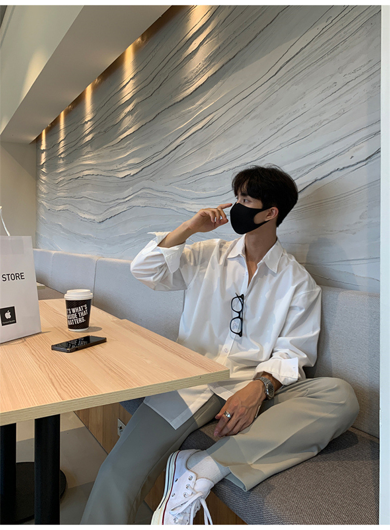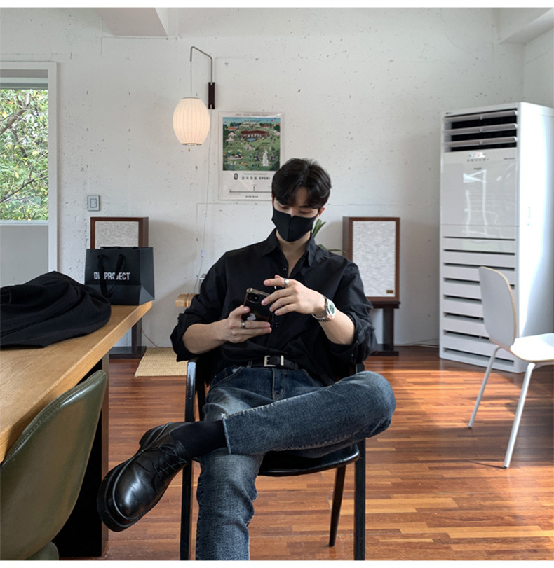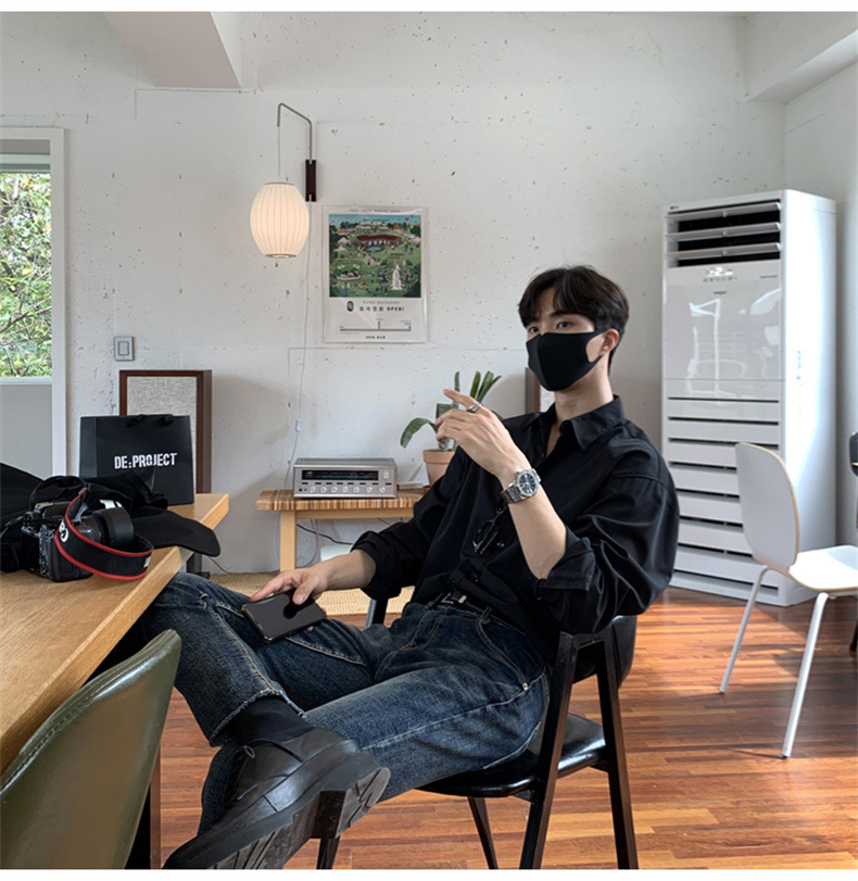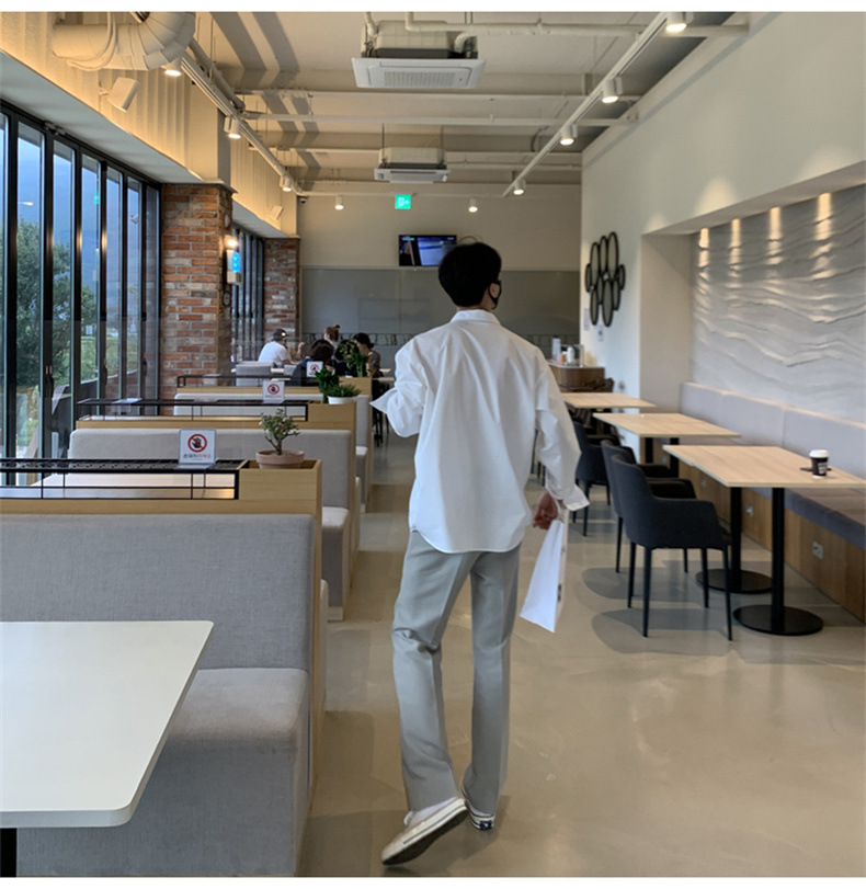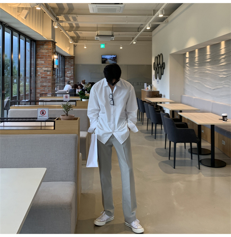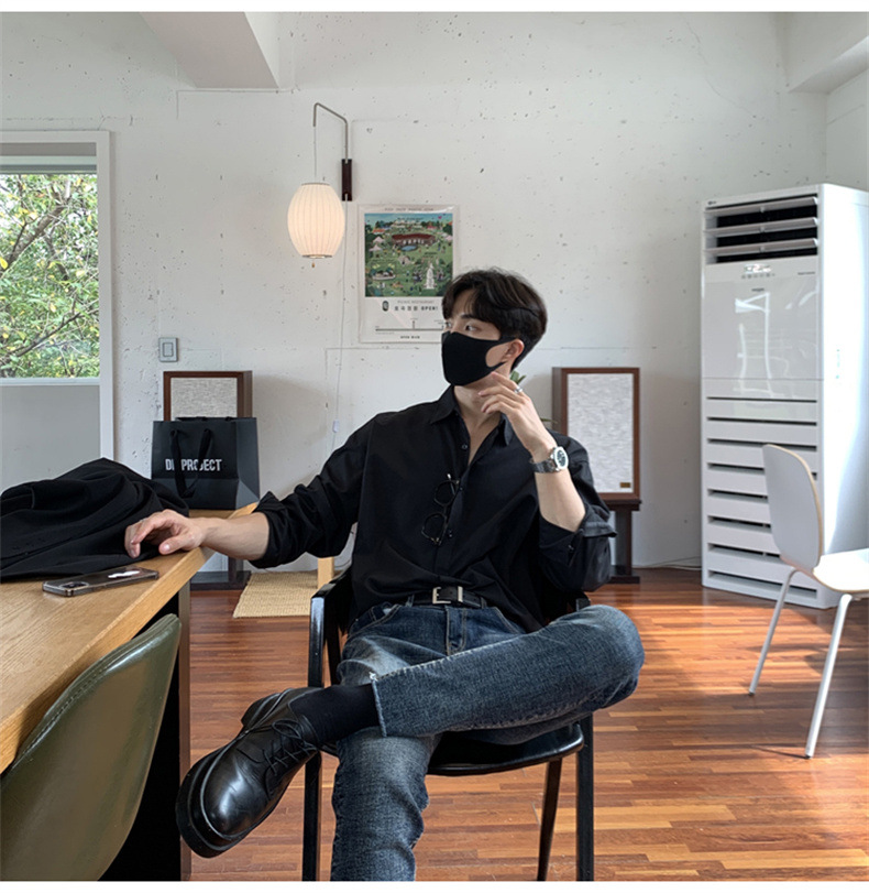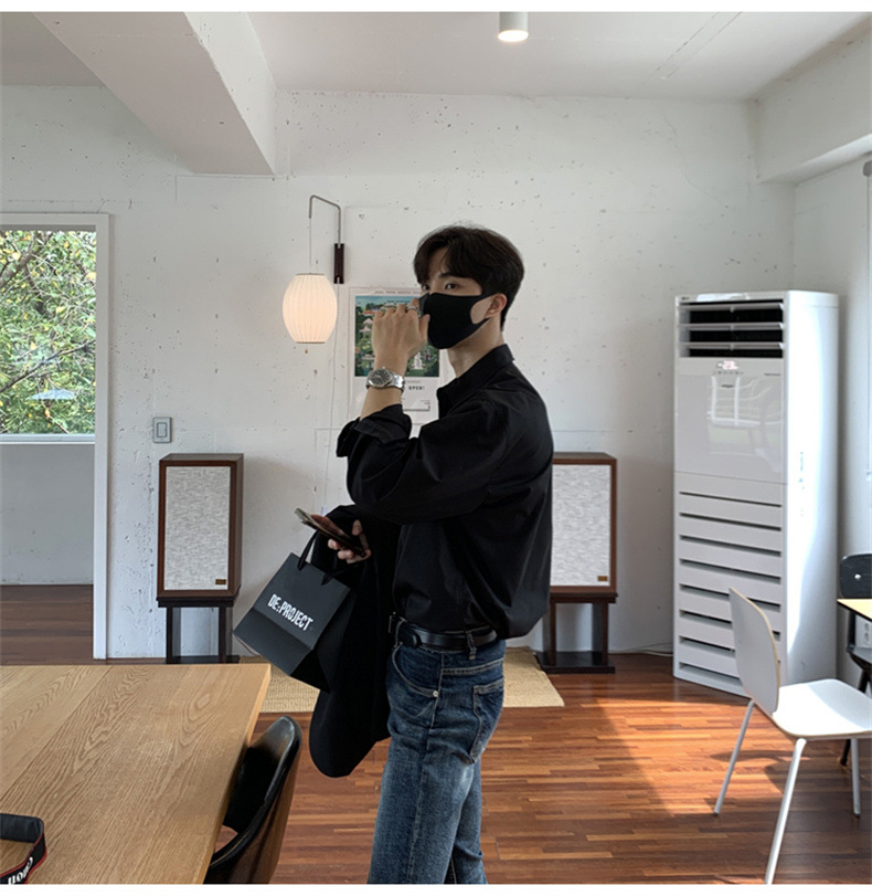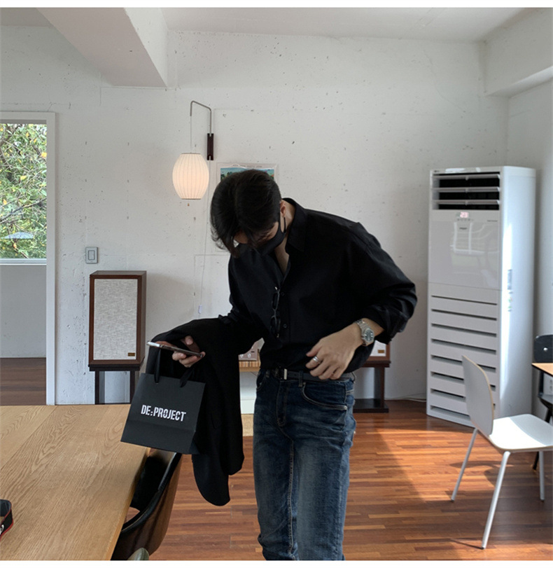 고급 비 다림질 긴팔 셔츠 남성용 한국식 루즈 셔츠, 유행 봄과 가을 단색 캐주얼 탑스토어 가기