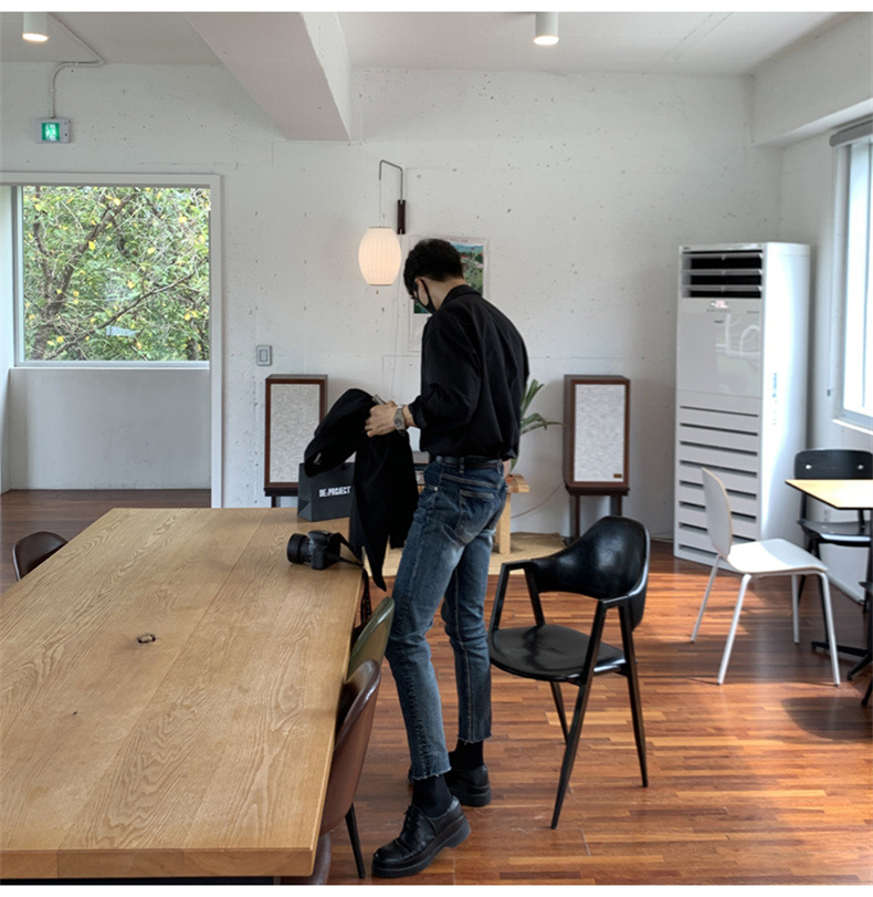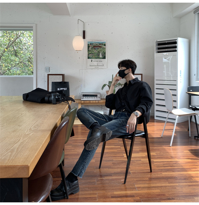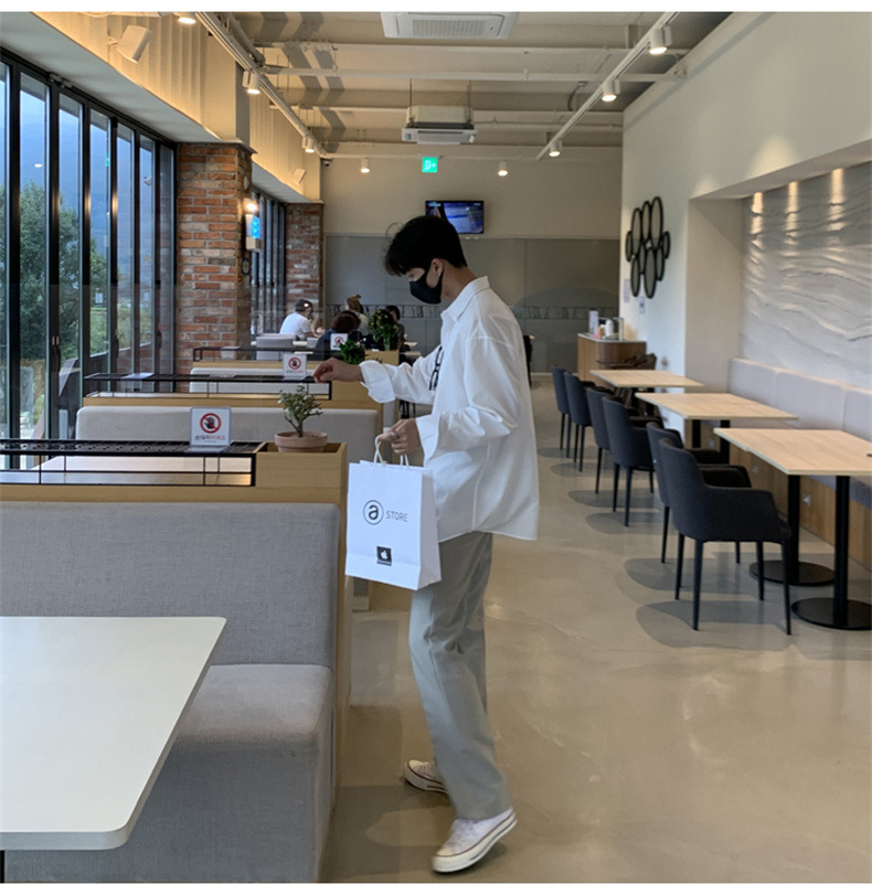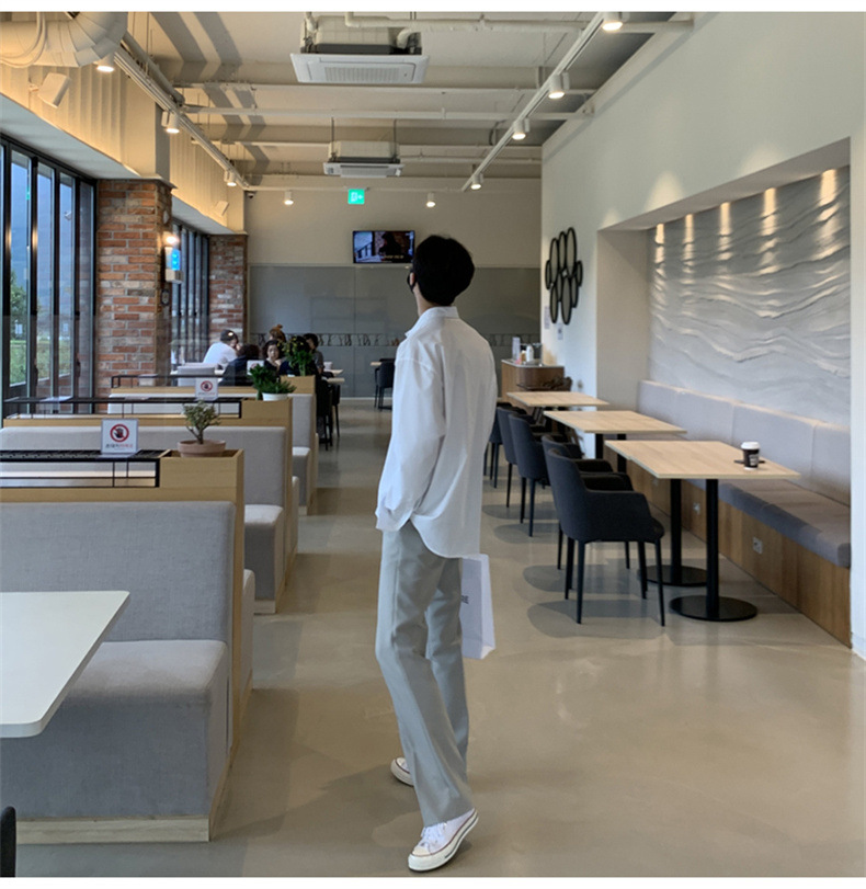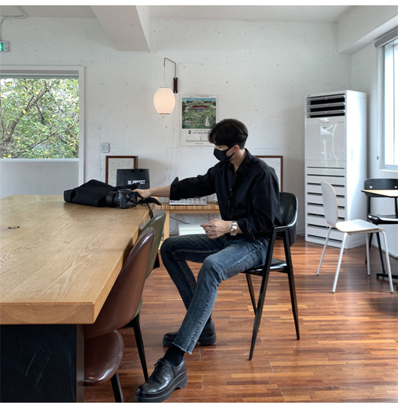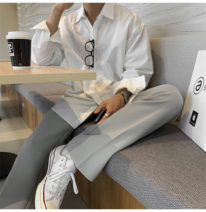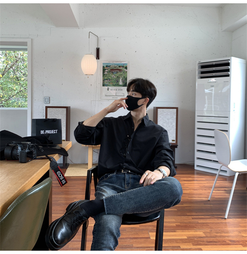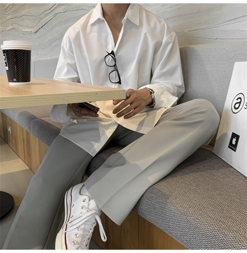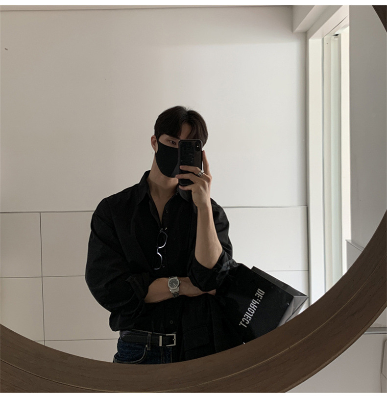 고급 비 다림질 긴팔 셔츠 남성용 한국식 루즈 셔츠, 유행 봄과 가을 단색 캐주얼 탑스토어 가기
