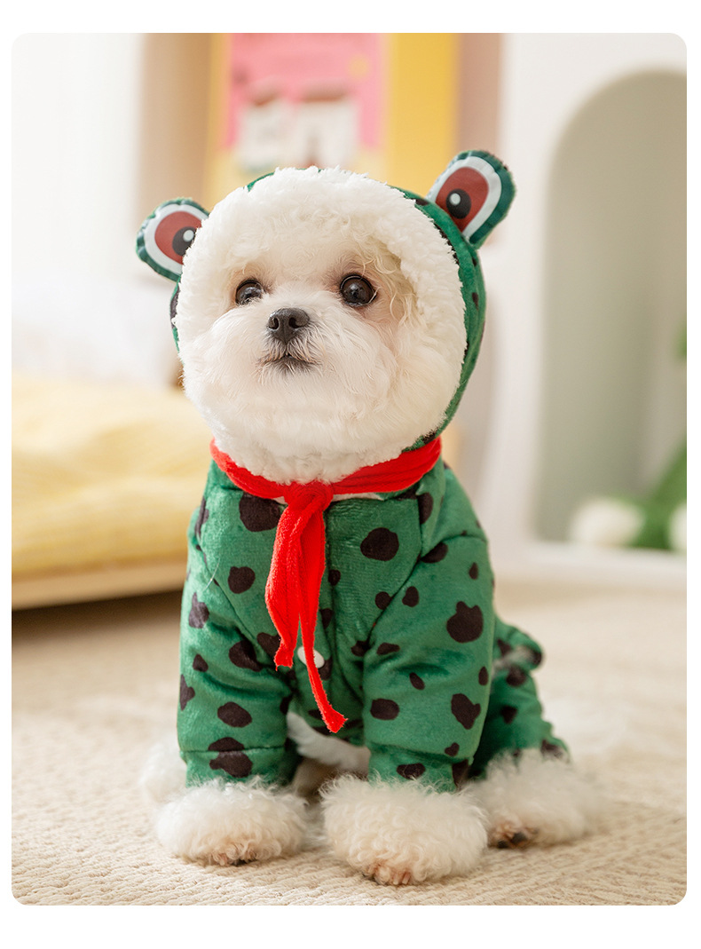 개 옷 가을과 겨울 재미 개구리 네 다리 변형 옷 할로윈 중소 개 테디 고양이 애완 동물 옷