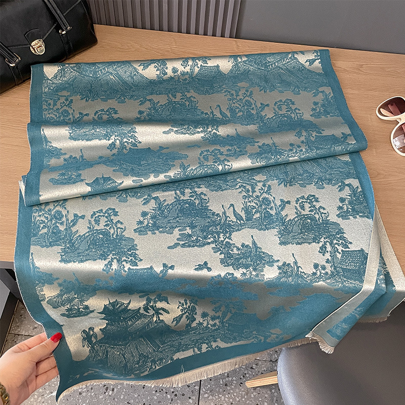 유럽과 한국의 새로운 패션 가을과 겨울 양면 캐시미어 식물 산 숲 우아한 고급 이중 사용 스카프 따뜻한 학생 여성스토어 가기