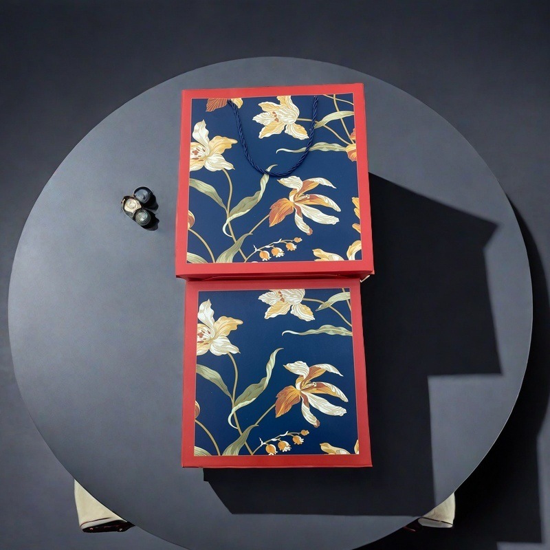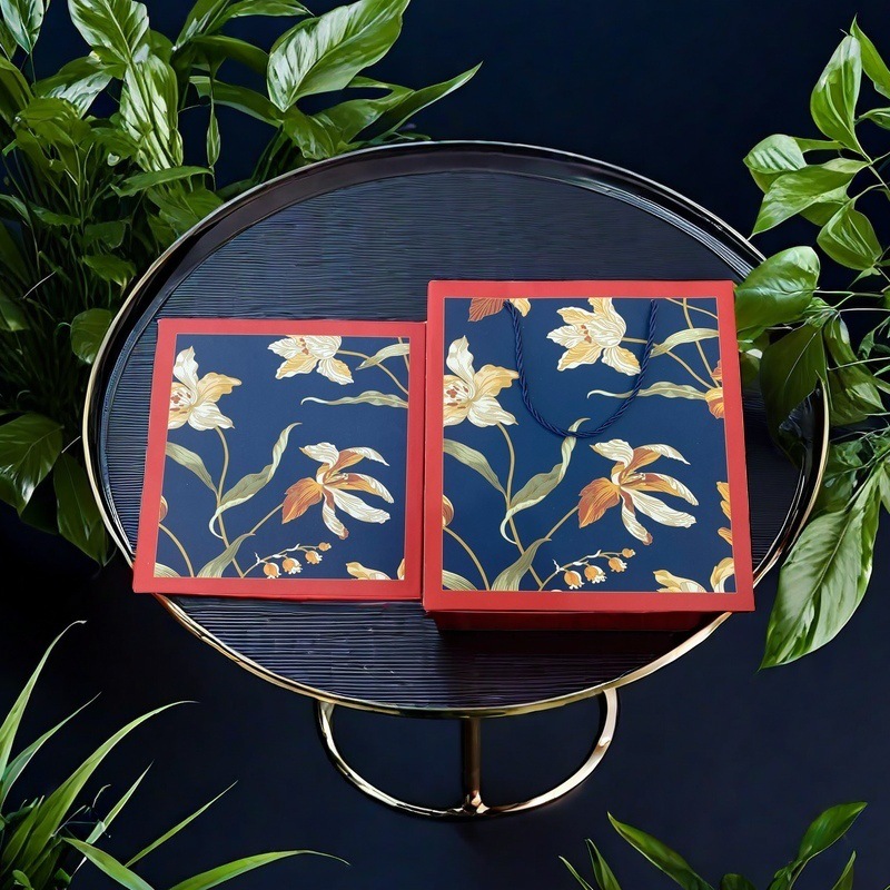 • 네이비 블루 사각 선물 상자, 완전한 세트