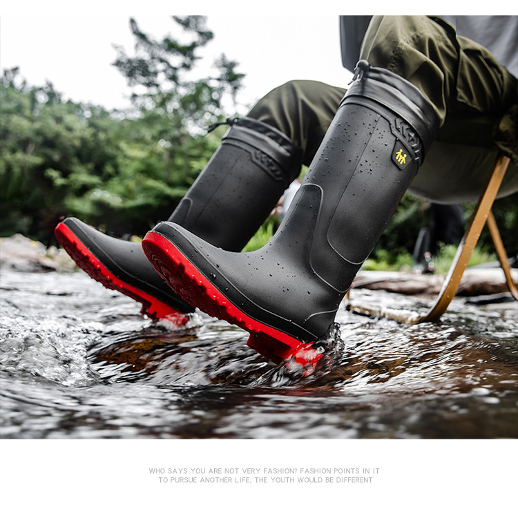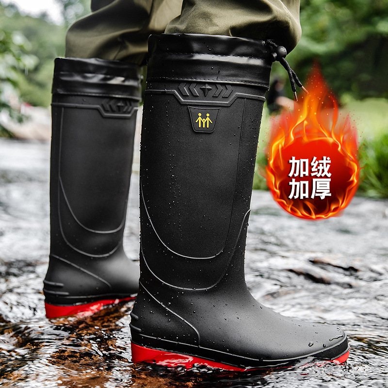 국경 간 장우 장화 남성 방비 및 방수 신발 높은 배럴 기모 미끄럼 방지 노동 보호 낚시 긴 배럴 작동 고무 장화