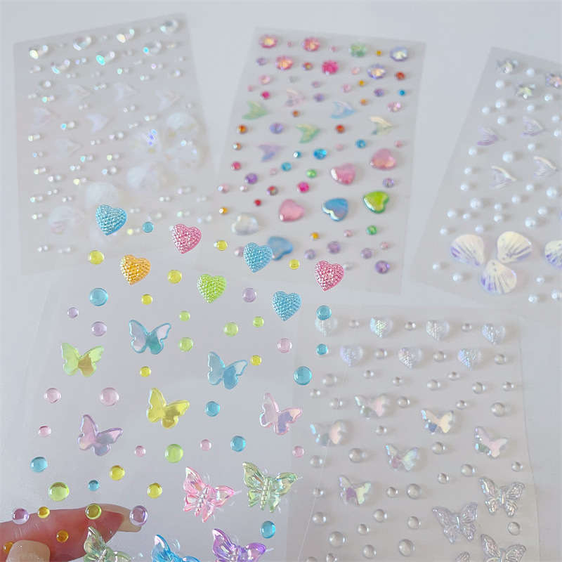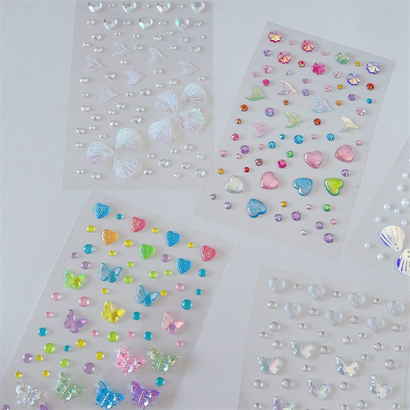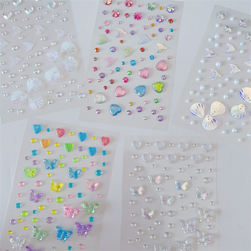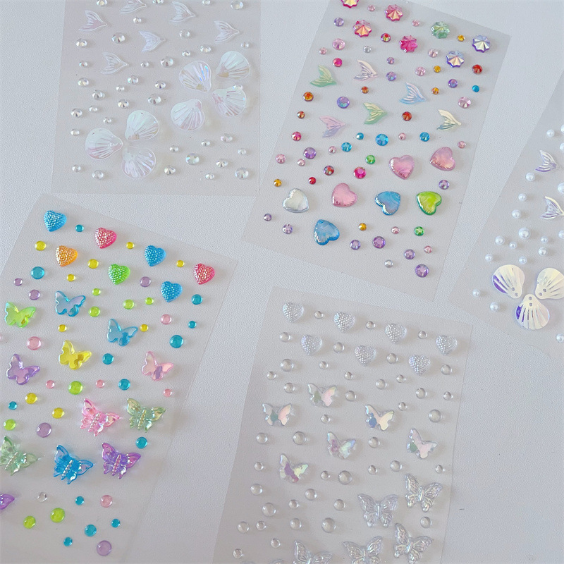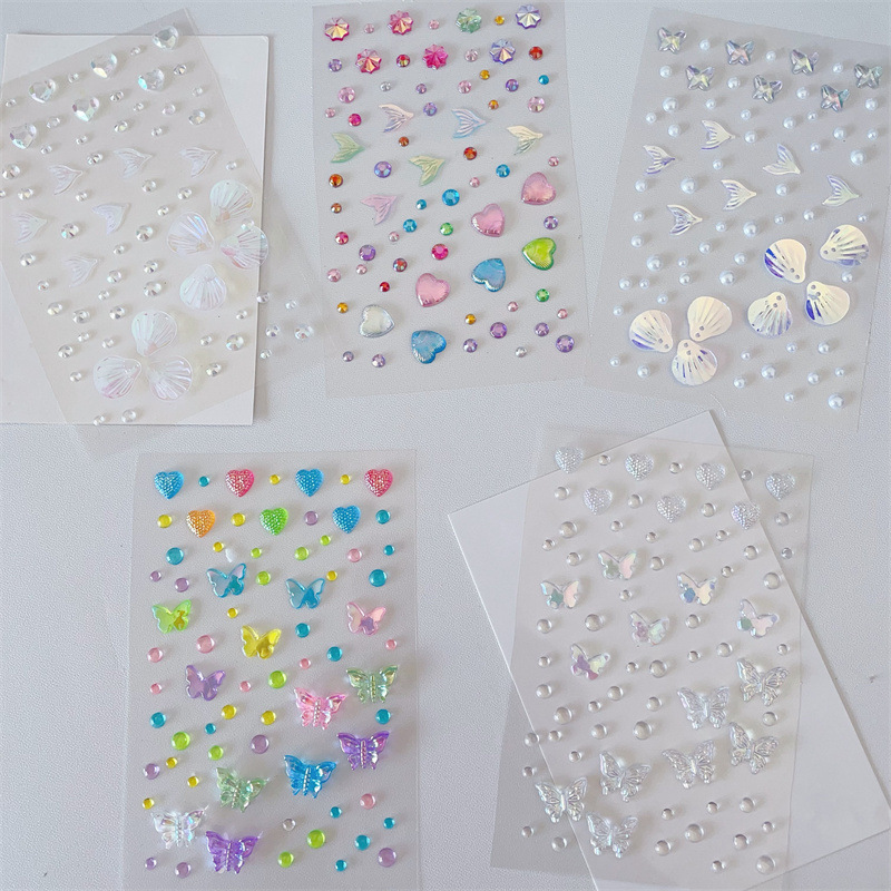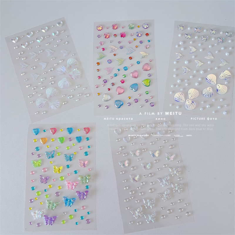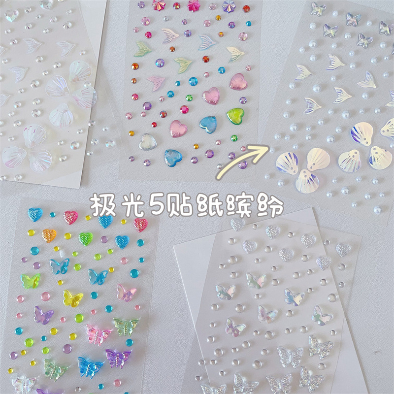 오로라 5 스티커 다채로운 나비 쉘 진주 빛나는 어린이 무대 공연 소녀 심장 선물 메이크업 원피스