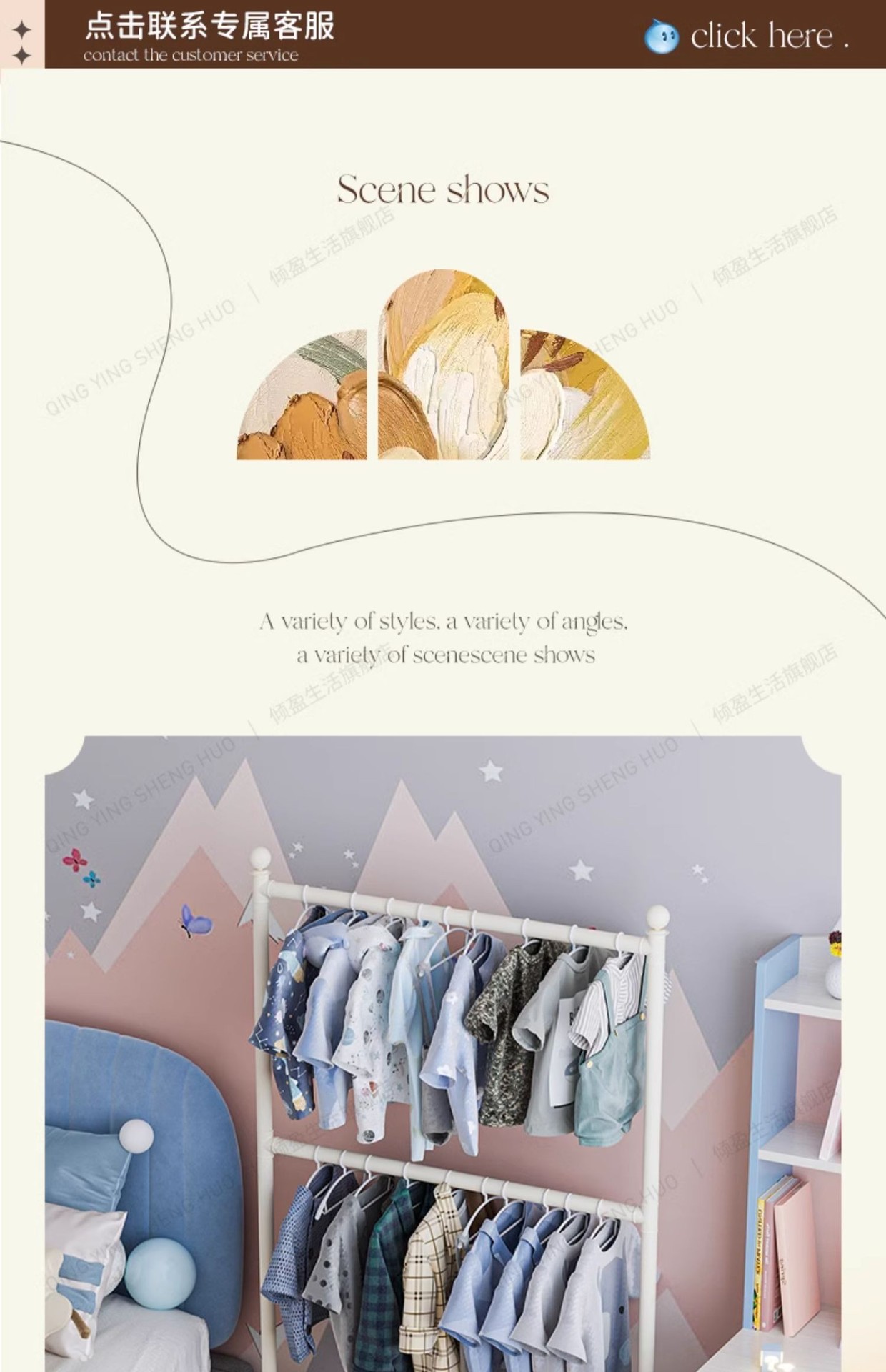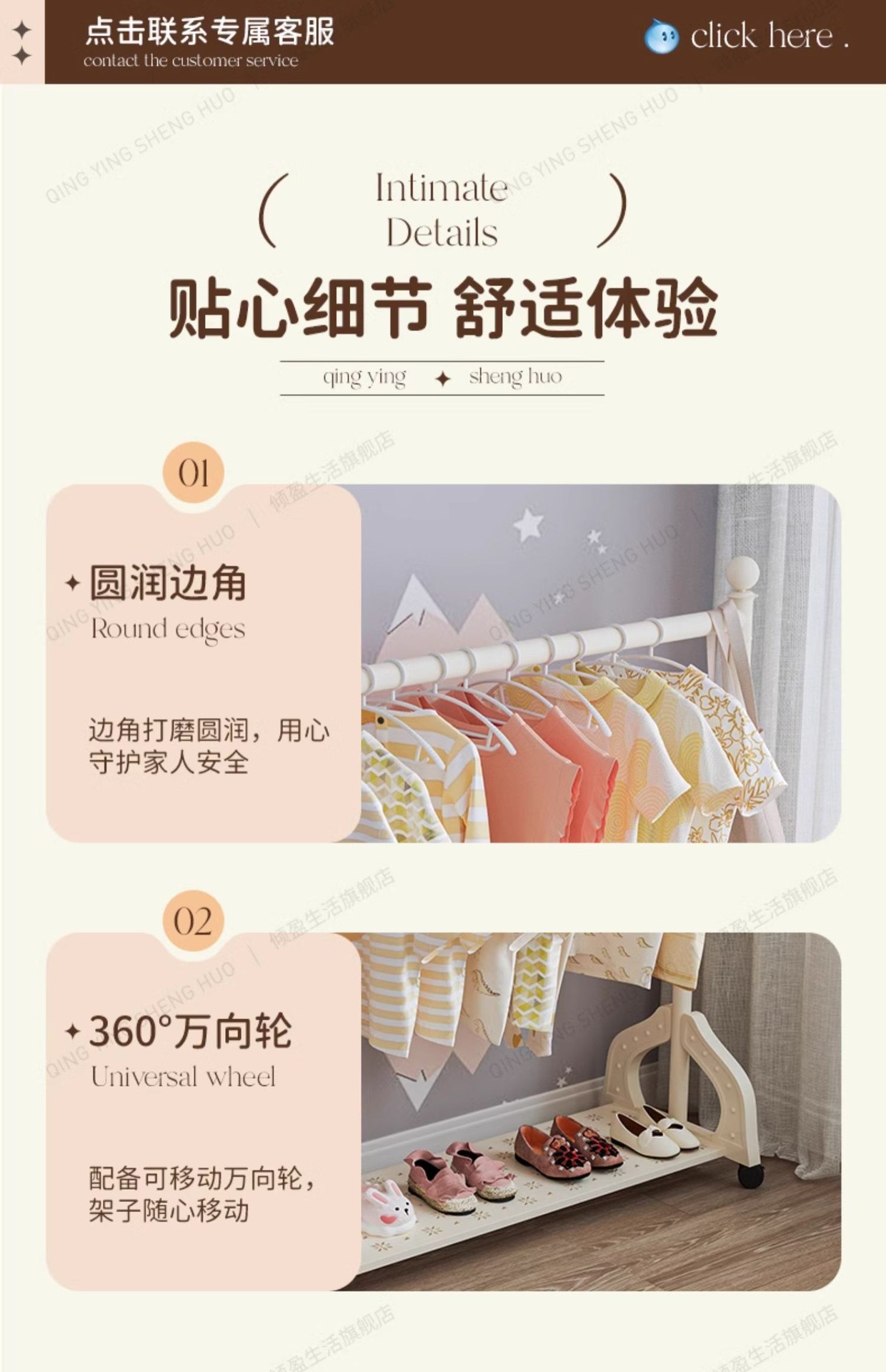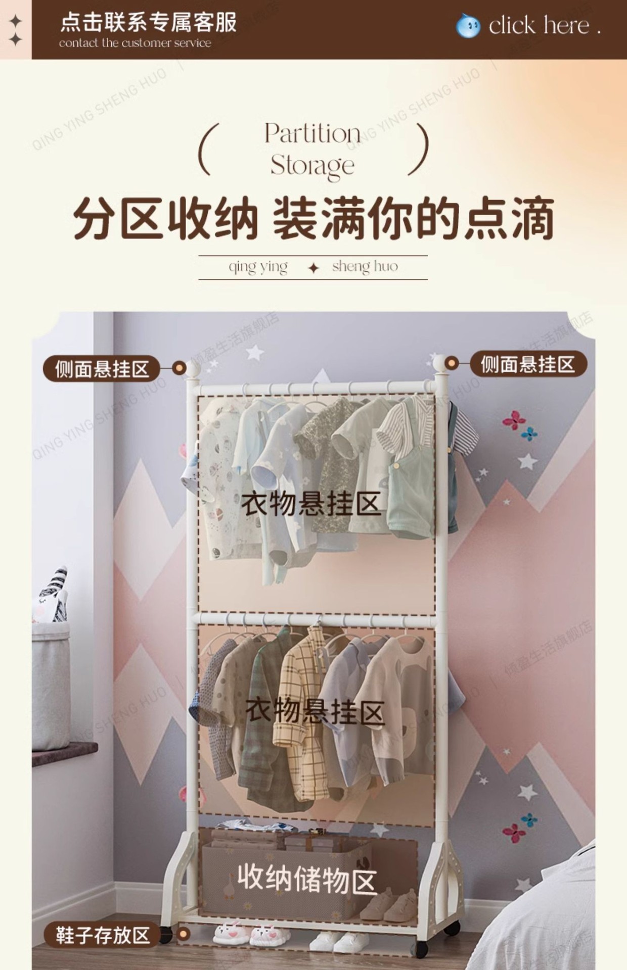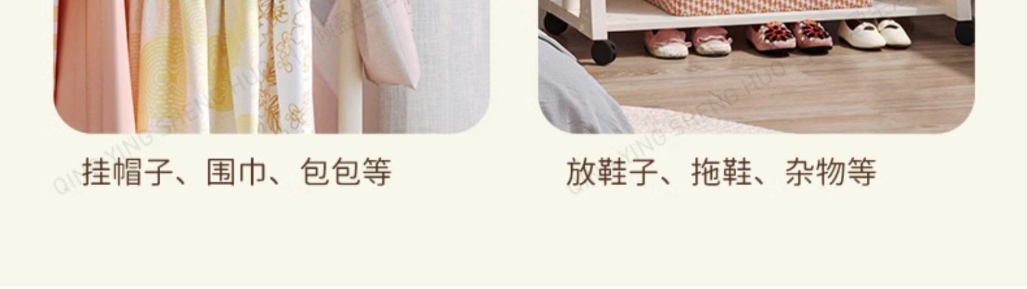어린이 방 행거 침실 바닥 서 이동식 코트 랙 크림 스타일 옷걸이 상단 및 하단 더블 레이어 스토리지 랙 침대 옆