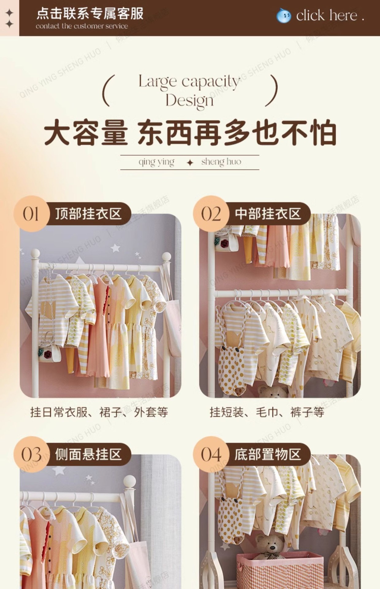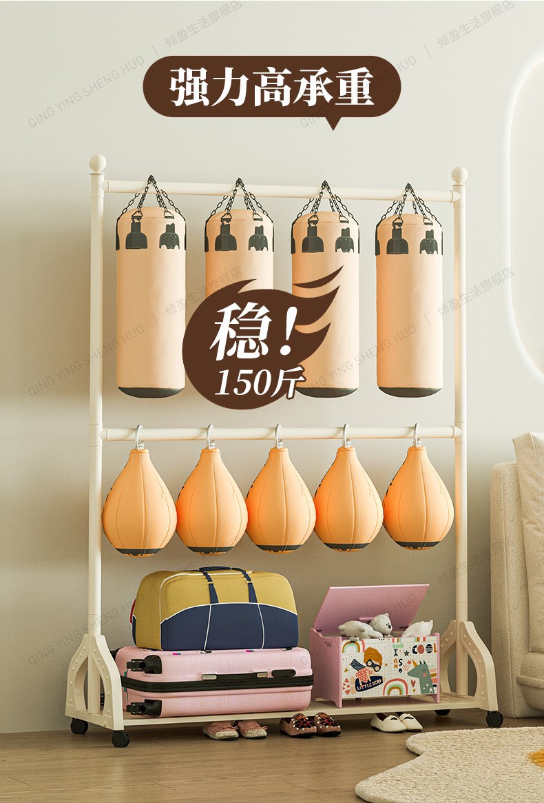 어린이 방 행거 침실 바닥 서 이동식 코트 랙 크림 스타일 옷걸이 상단 및 하단 더블 레이어 스토리지 랙 침대 옆스토어 가기