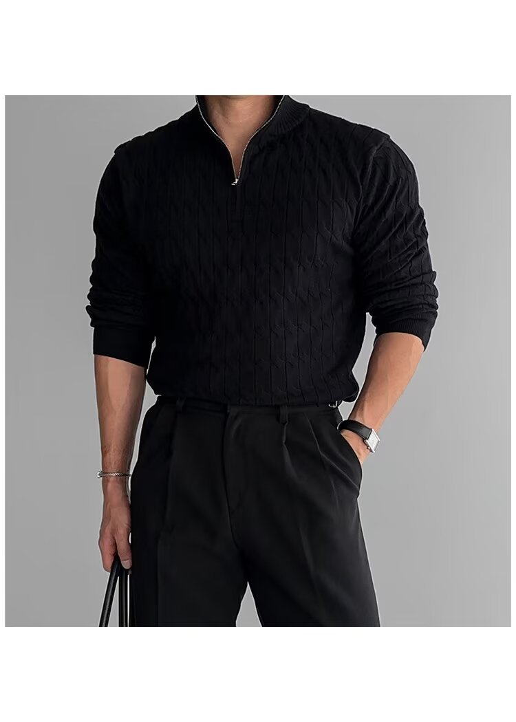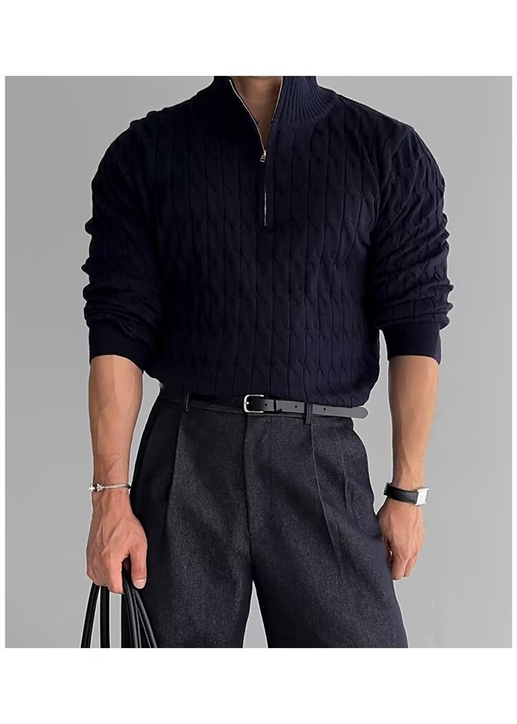 화이트 고급 하프 터틀넥 지퍼 스웨터 남성 가을 겨울 패션 세련된 긴팔 스웨터 게으른 캐주얼 자켓스토어 가기