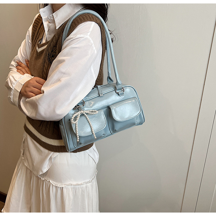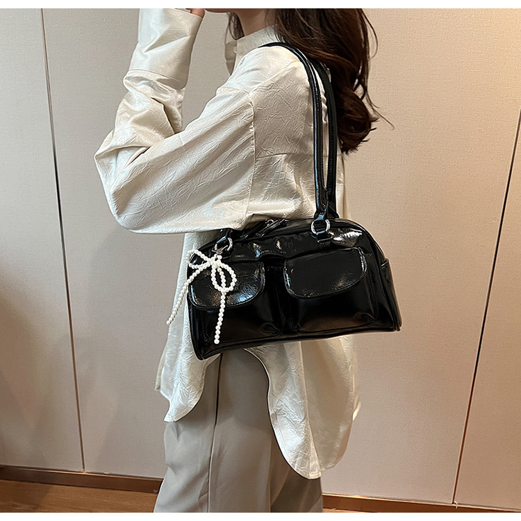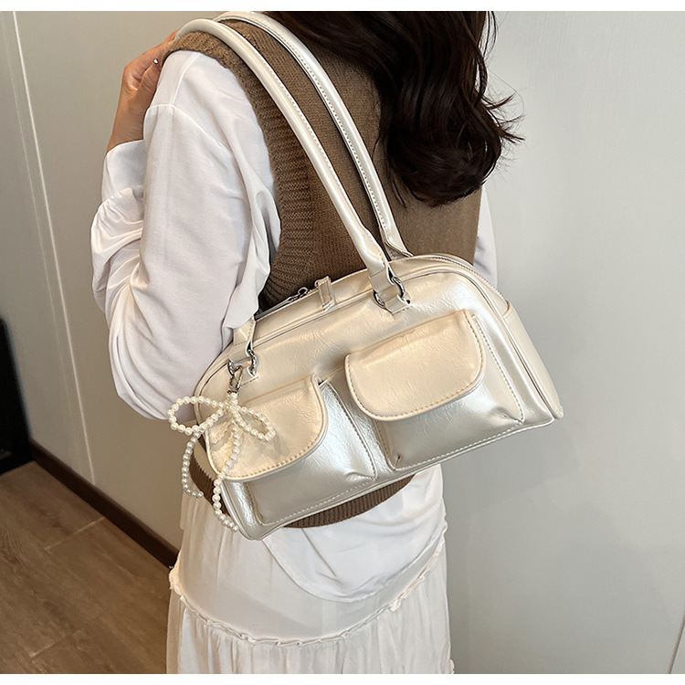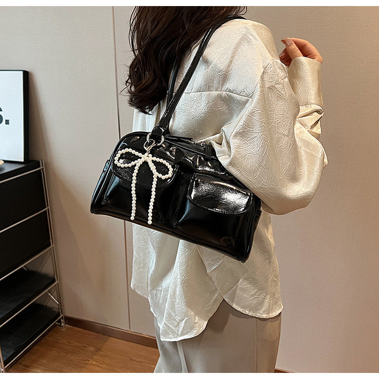 유행 보스턴 가방 여성의 2024 새로운 대용량 캐주얼 어깨 가방 유행 간단한 휴대용 언더암 가방스토어 가기