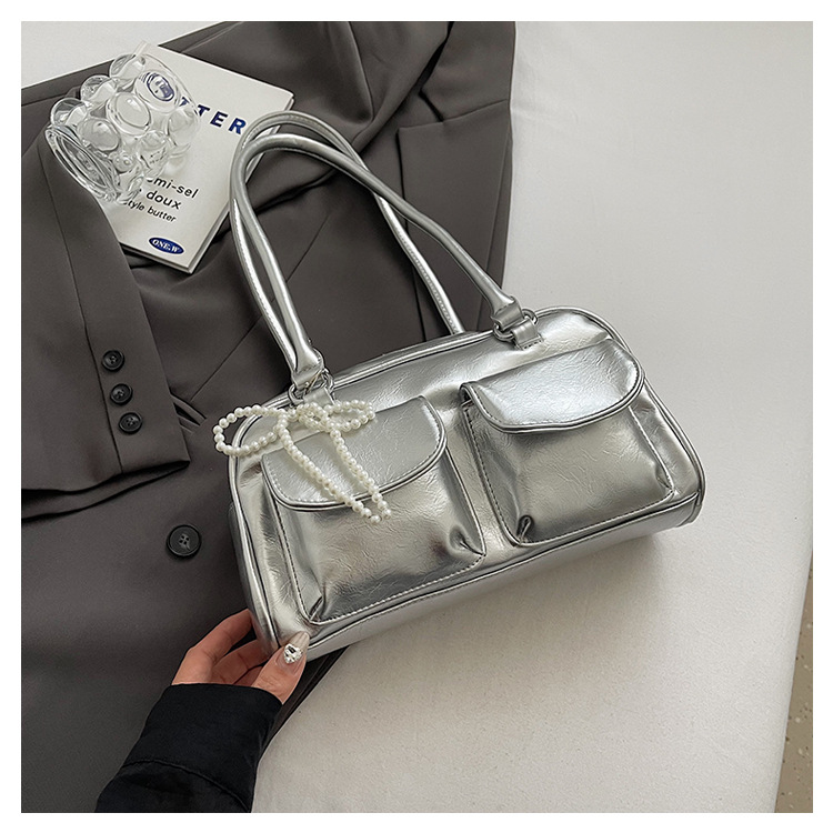 유행 보스턴 가방 여성의 2024 새로운 대용량 캐주얼 어깨 가방 유행 간단한 휴대용 언더암 가방